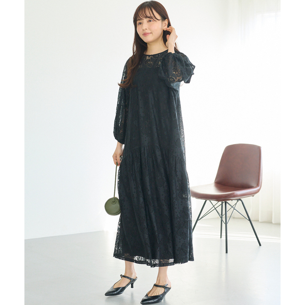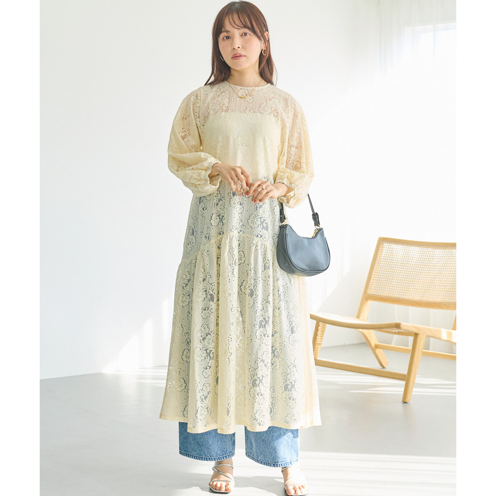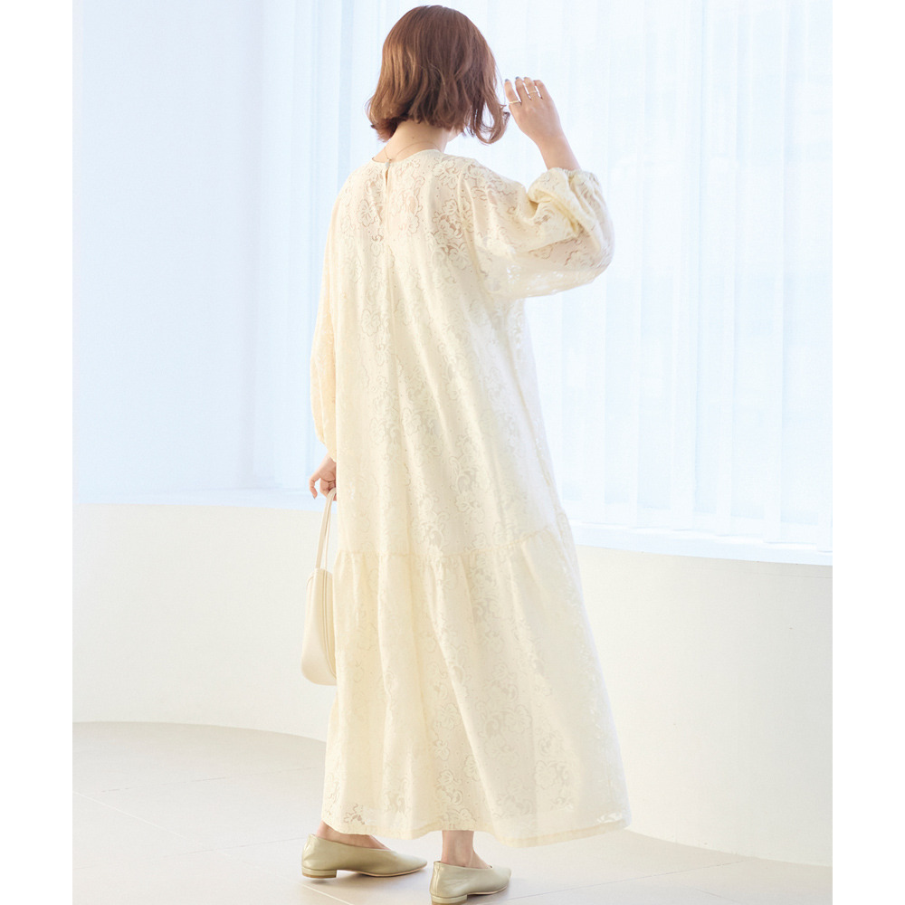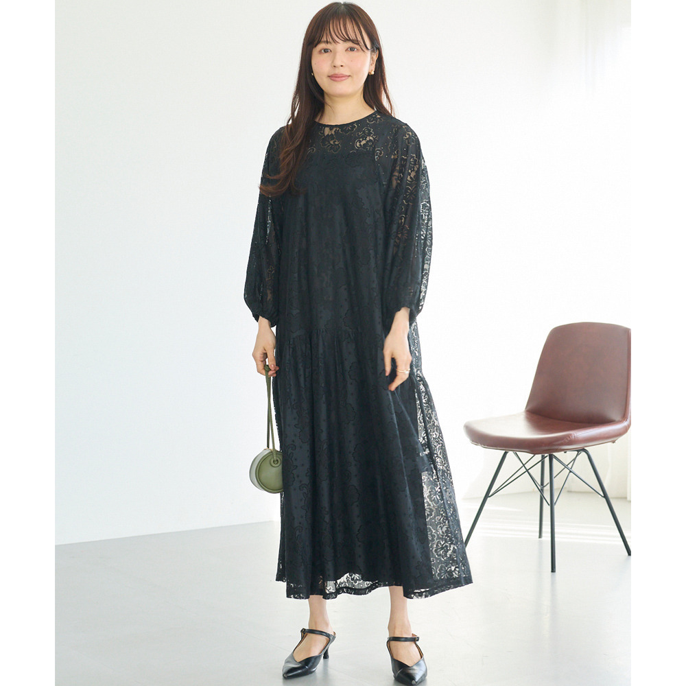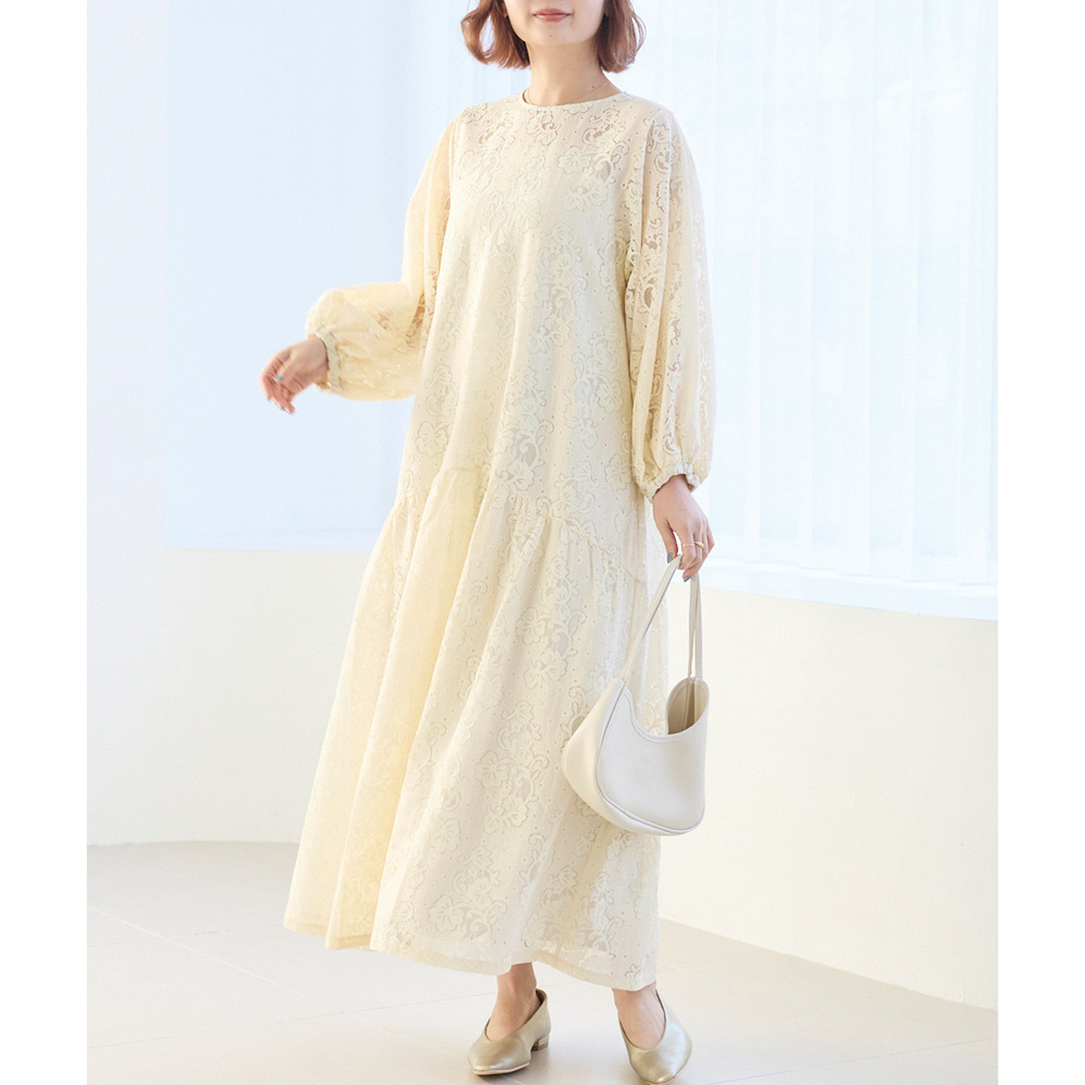 華やかな総レース仕立てのワンピースは、華やかなシーンにも対応できる上品さが魅力。