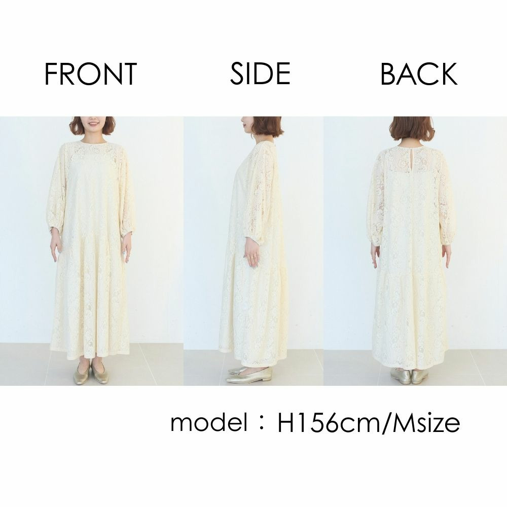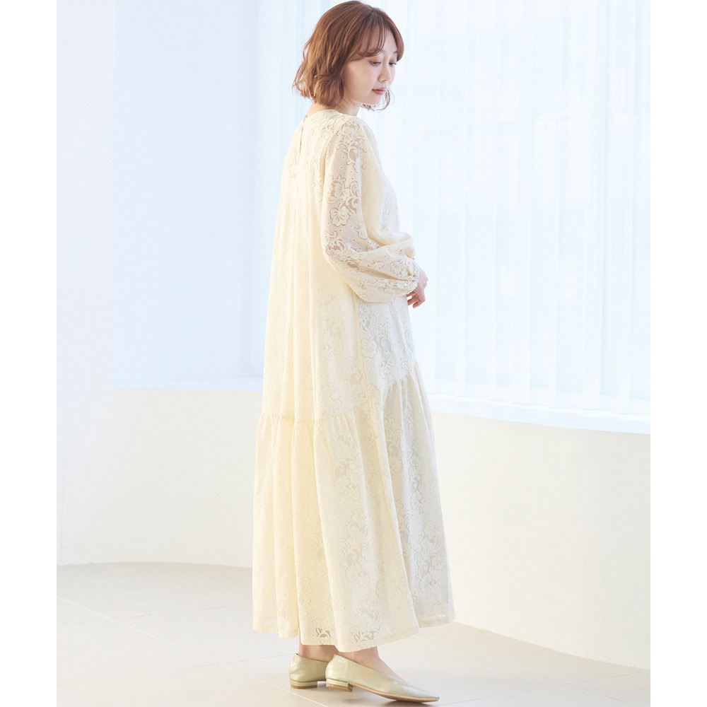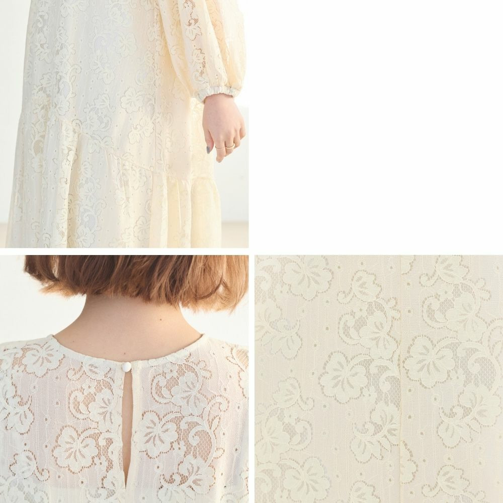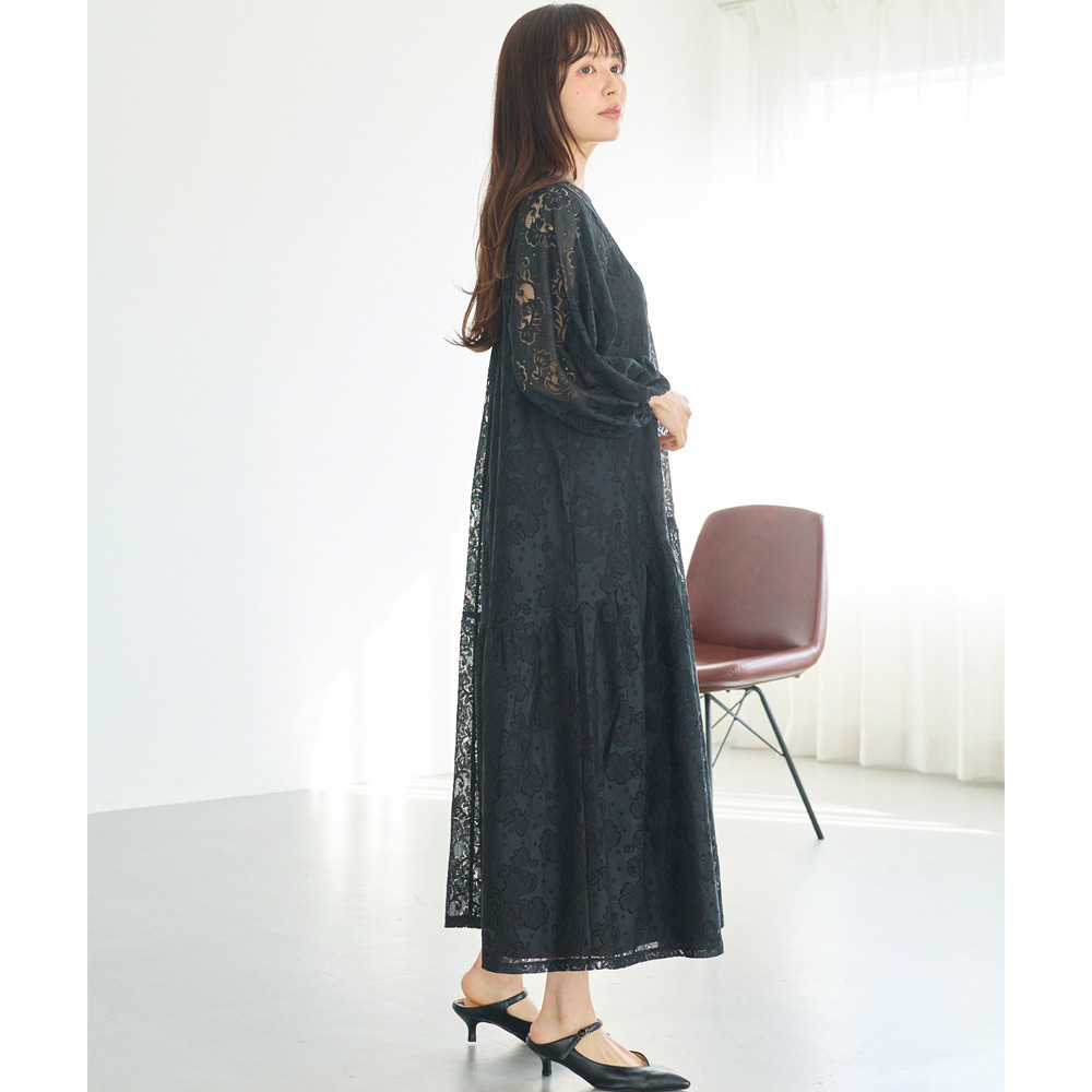 華やかな総レース仕立てのワンピースは、華やかなシーンにも対応できる上品さが魅力。