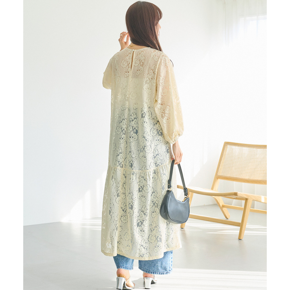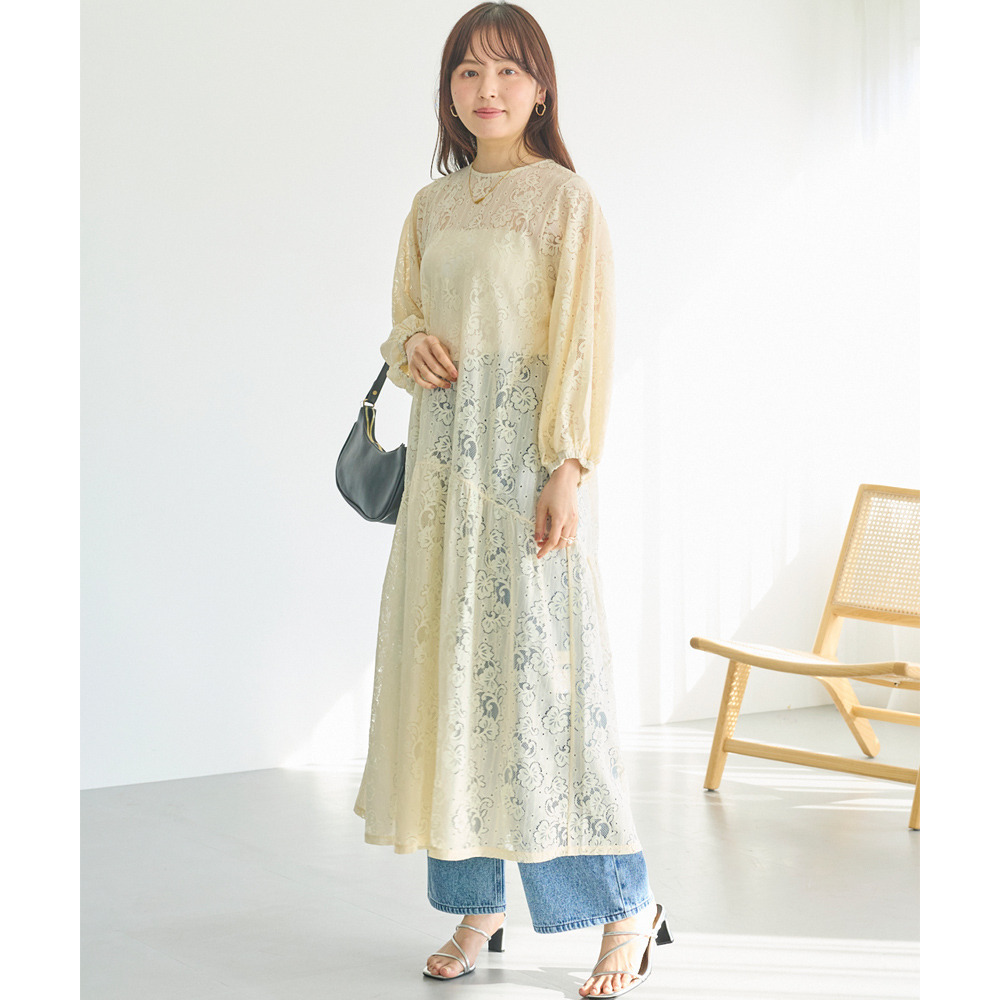 透け感が大人の女性らしい抜け感を演出します。インナーキャミワンピースがセットになっているのも嬉しいポイントです。