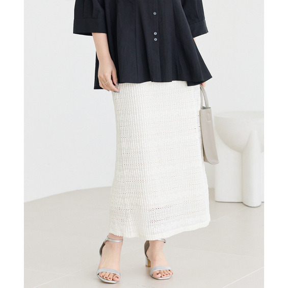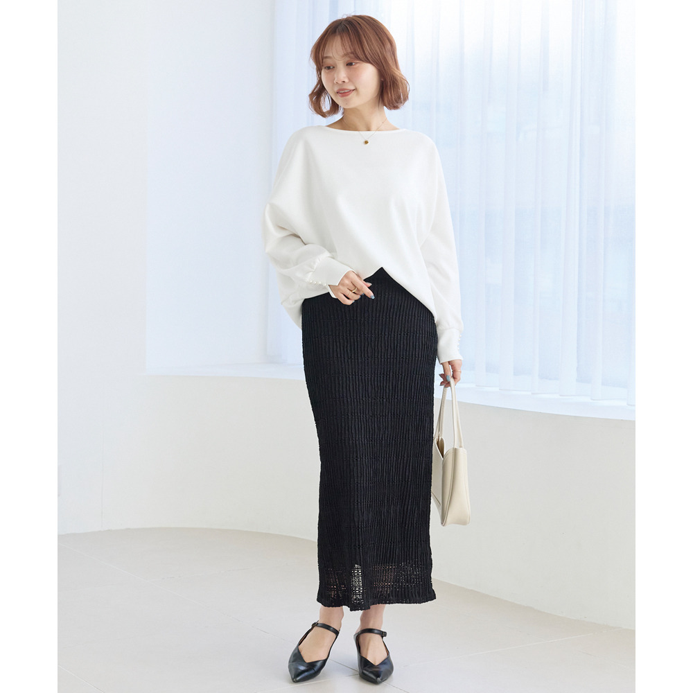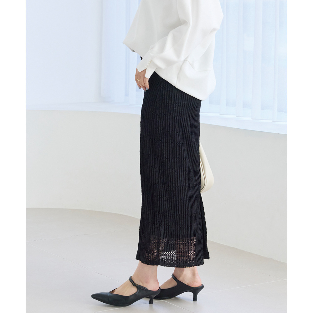 細かなプリーツデザインで華やかなレースプリーツスカート。
