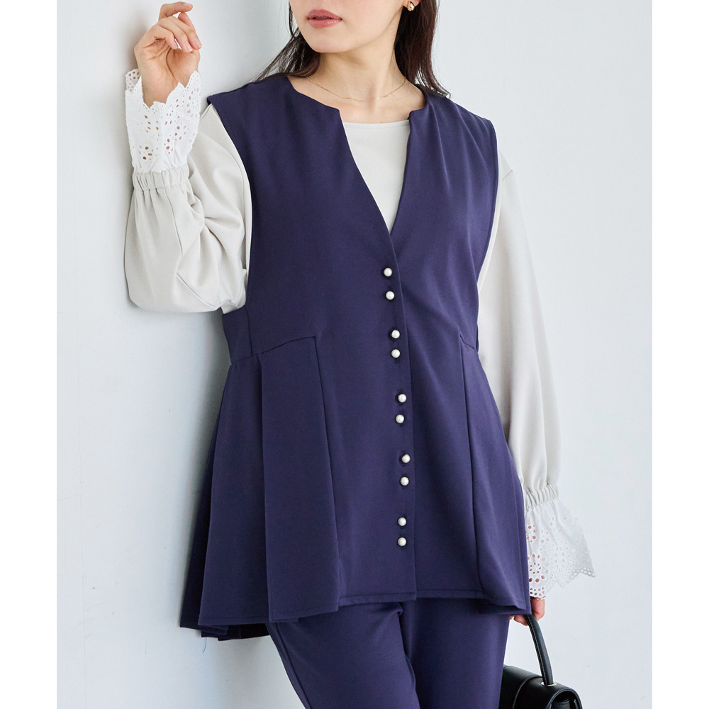 • 【好機能シリーズ】接触冷感・吸水速乾|ダブルパール釦タックベスト LL/3L/4L/5L セレモニー オフィスカジュアル ラビアンジェ21