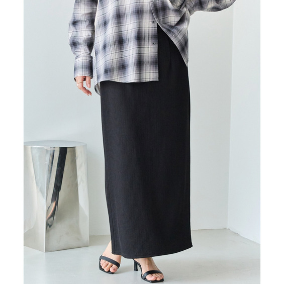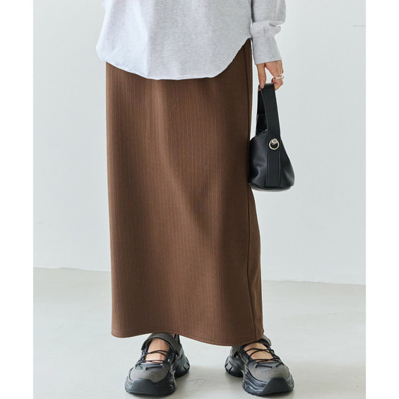 すっきりとしたナローシルエットで、着るだけでスタイルアップが叶うスカート。