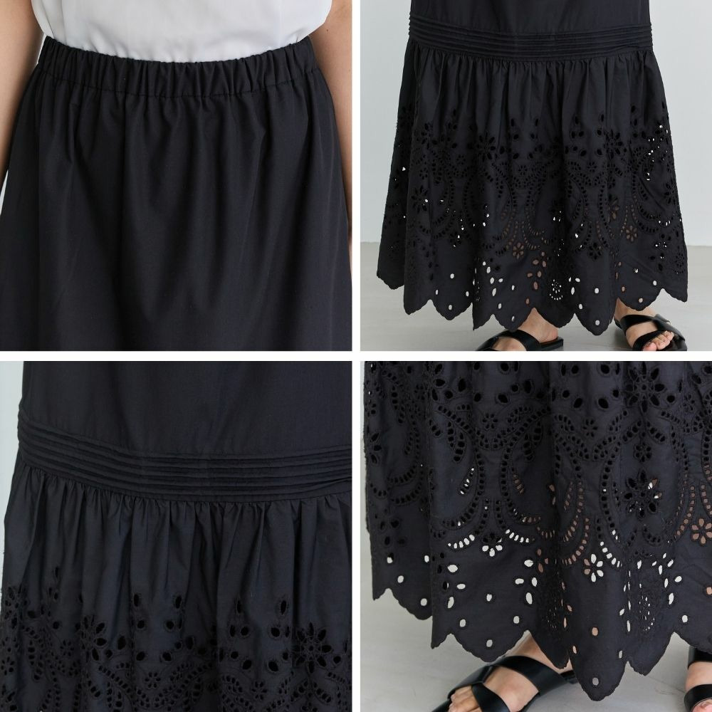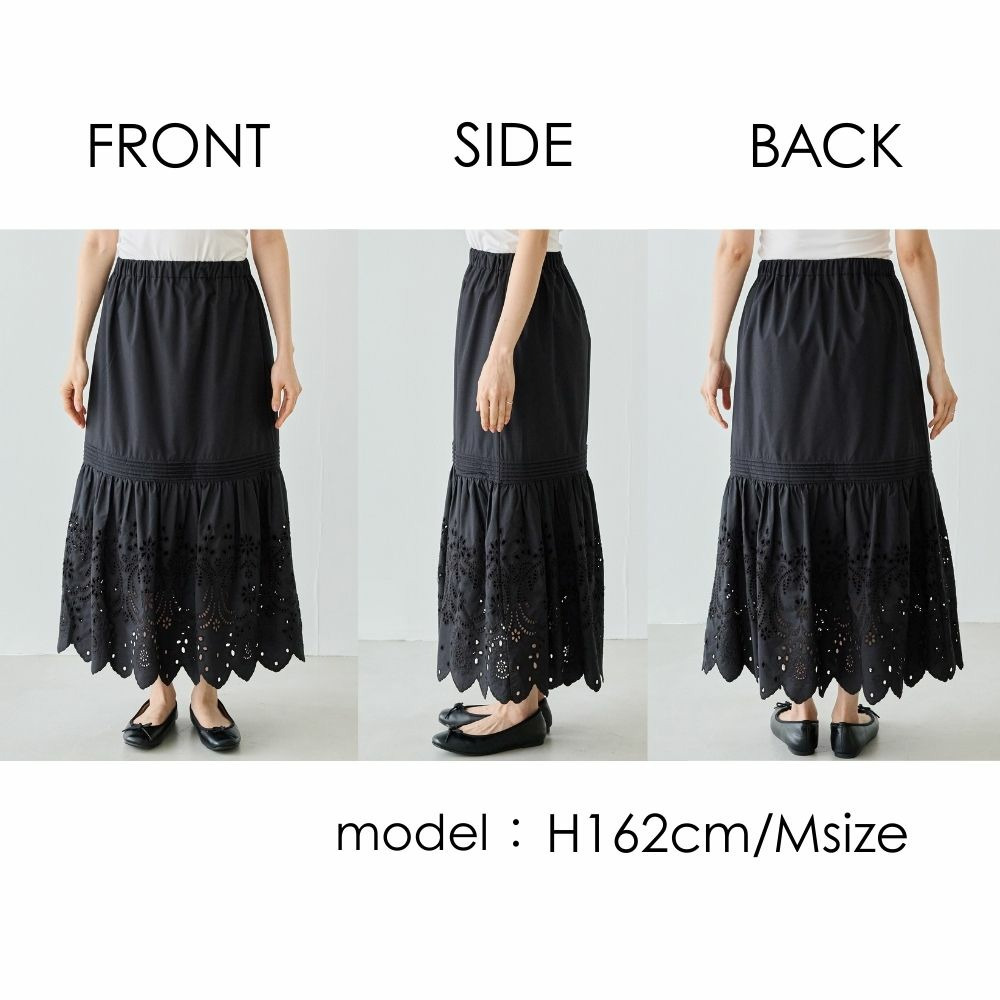 刺繍レースフレアスカート LL/3L/4L/5L 万能 らくちん ラビアンジェ