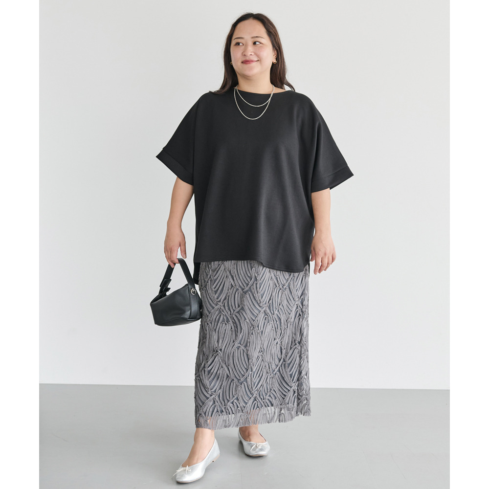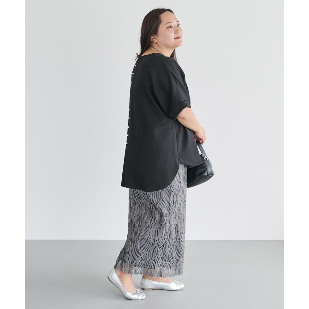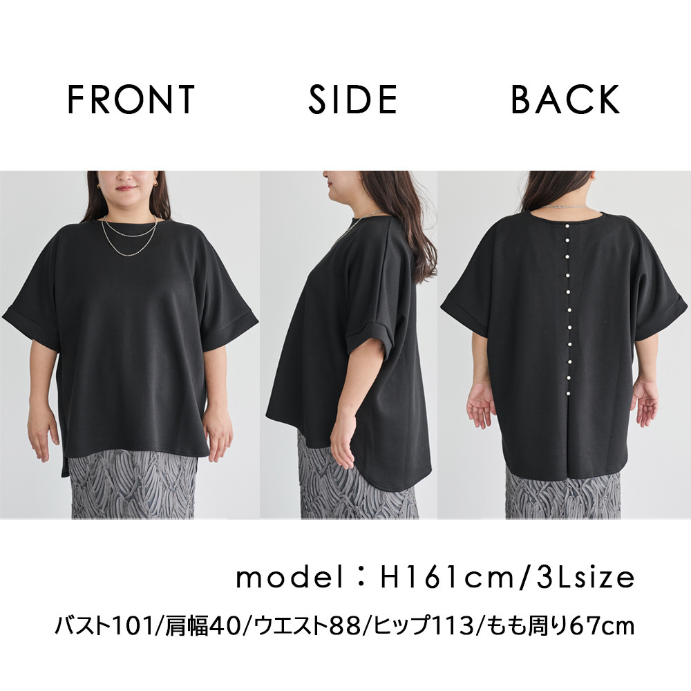 バックパールポンチプルオーバー LL/3L/4L/5L きれいめカジュアル オンオフ兼用 ラビアンジェ