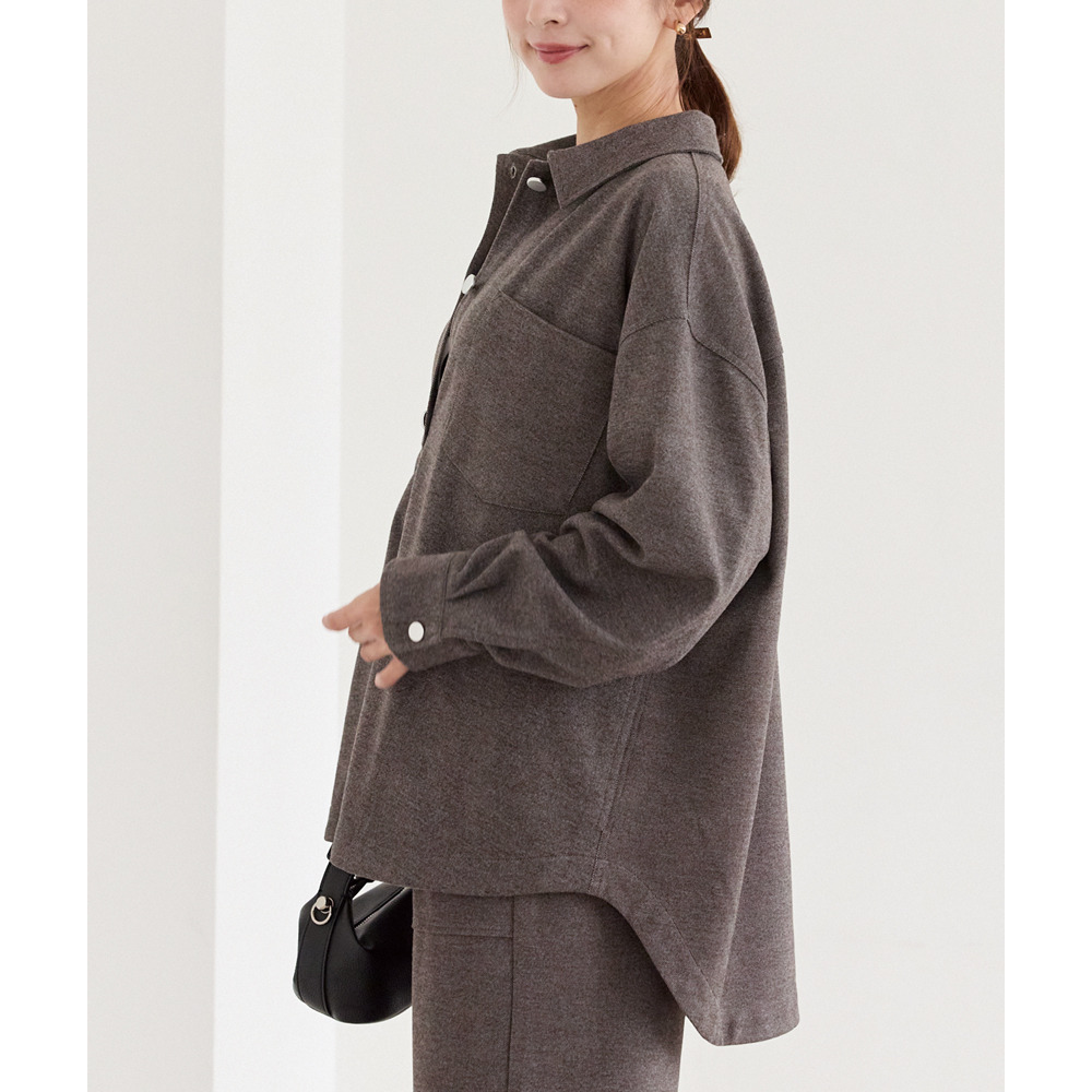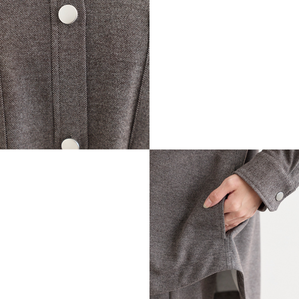 柔らかなカットソー素材を使用し、秋は軽めのアウターとして、冬はコートのインナーとして重ね着できる優秀アイテム。