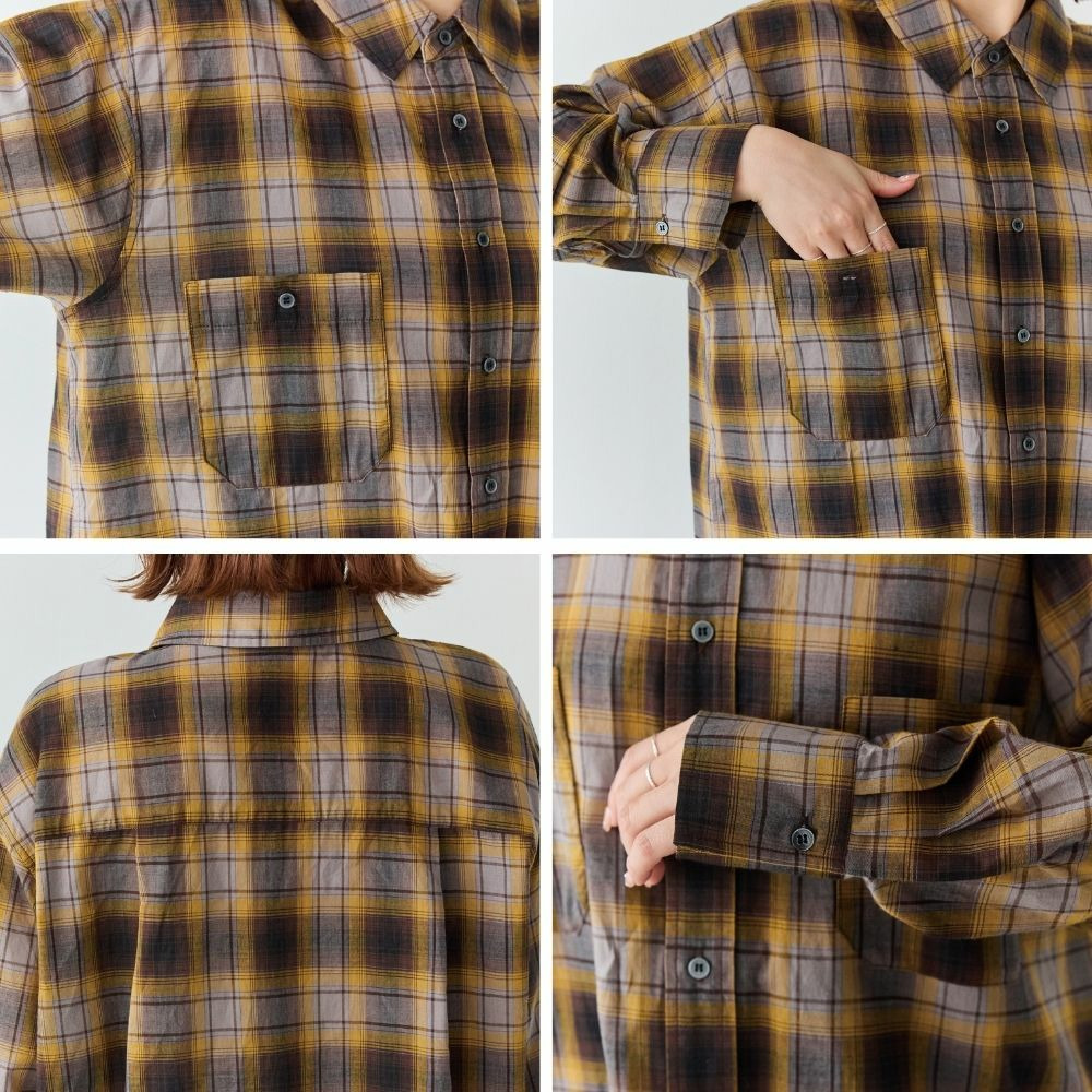 先染めならではの奥行きのあるチェック柄が、大人カジュアルな雰囲気を演出します。