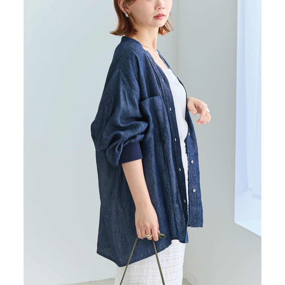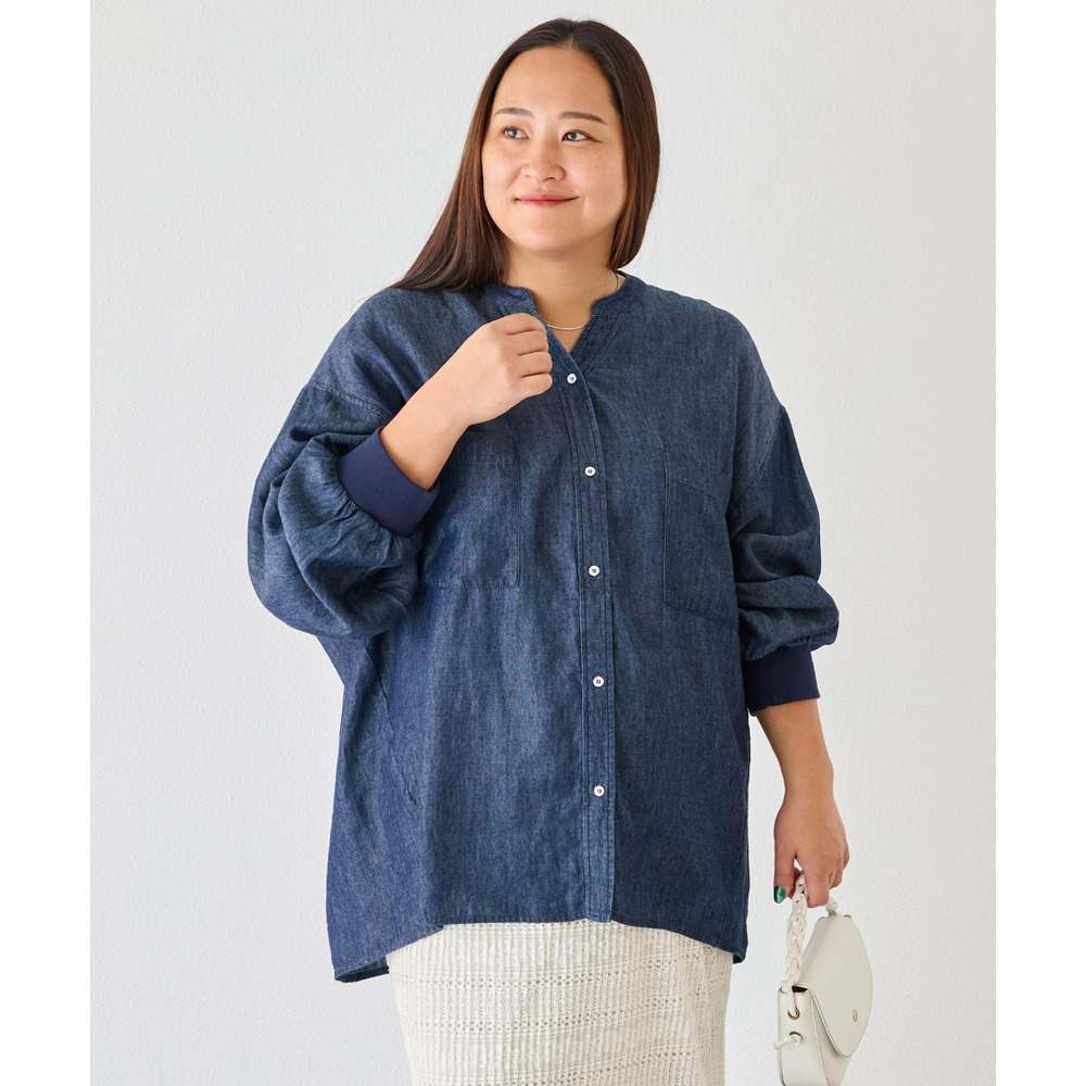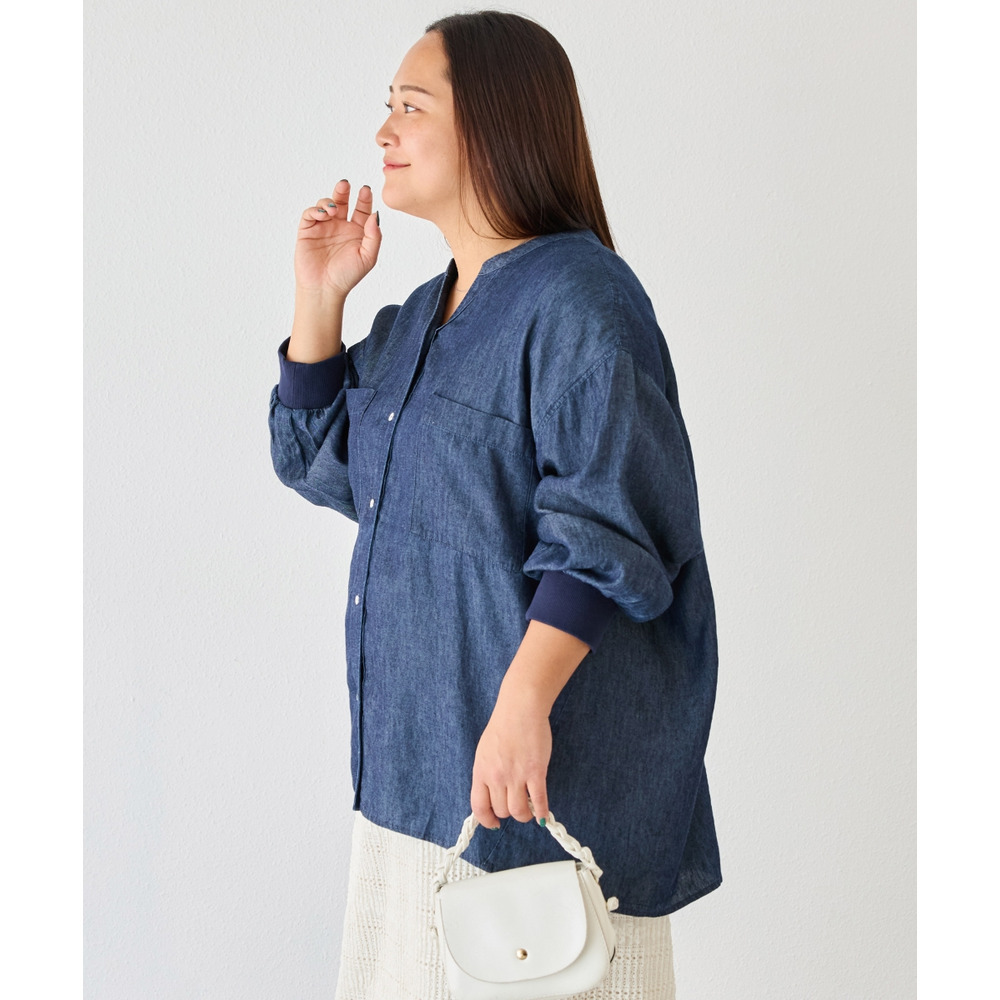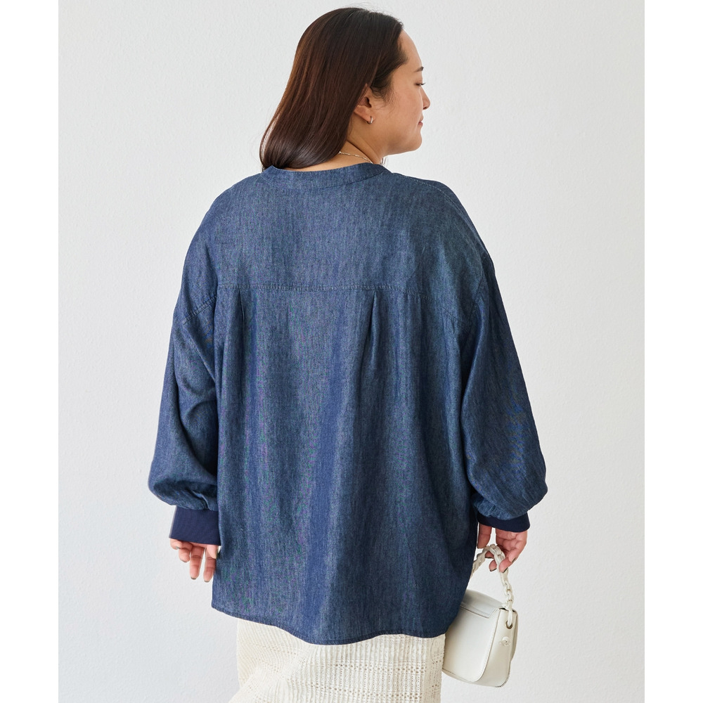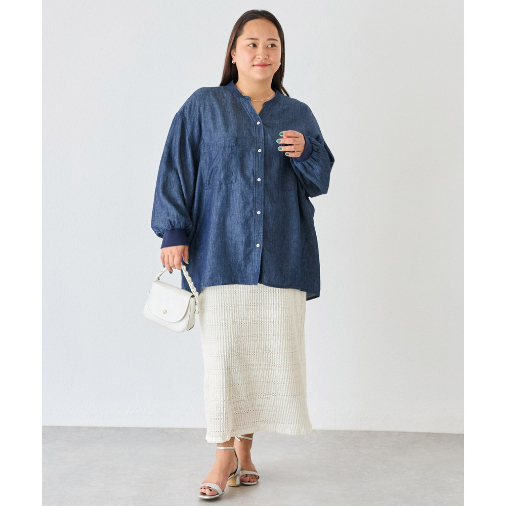 シアーデニムシャツ LL/3L/4L/5L きれいめカジュアル ハオリ ラビアンジェ
