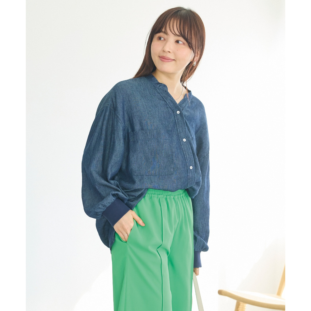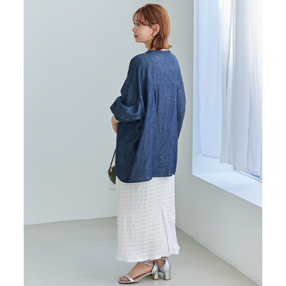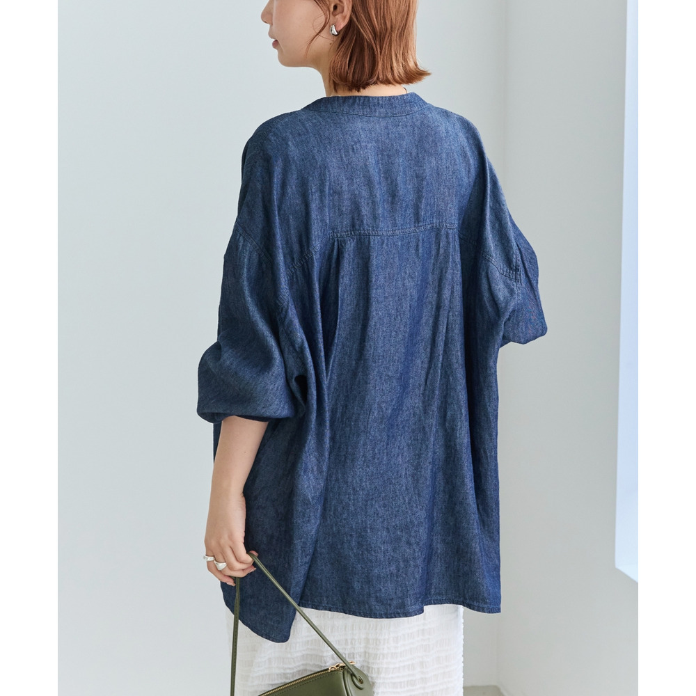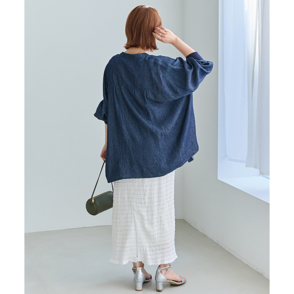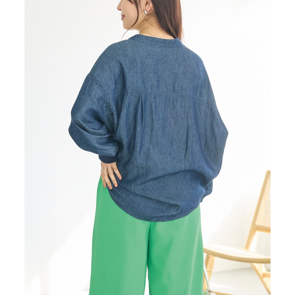 シアーデニムシャツ LL/3L/4L/5L きれいめカジュアル ハオリ ラビアンジェ