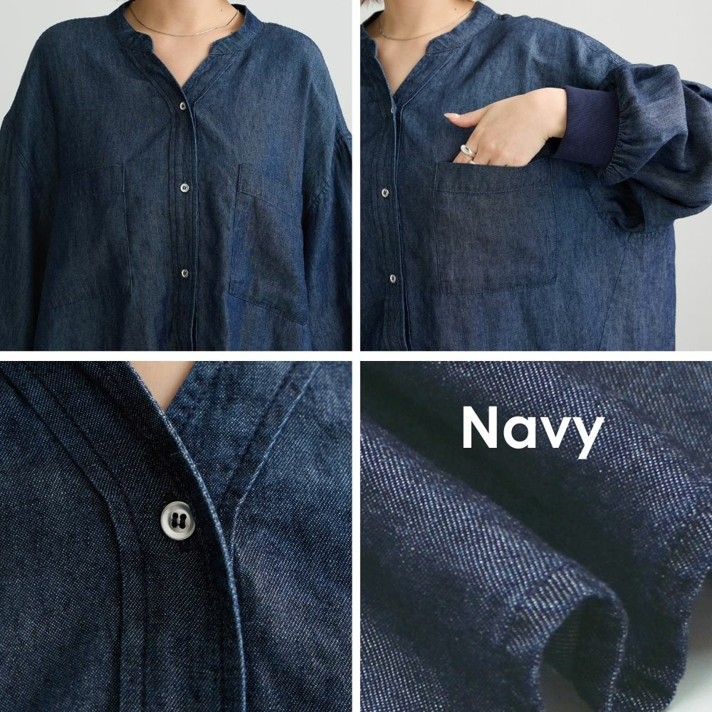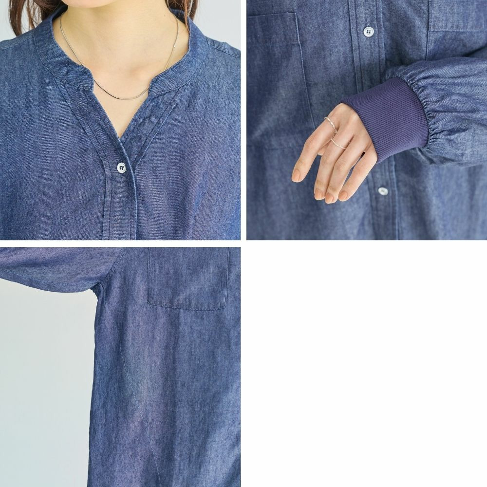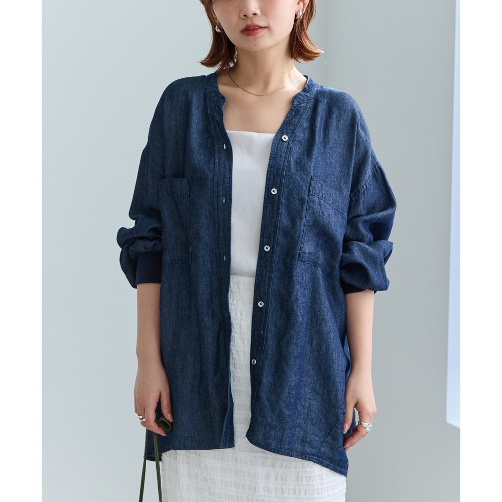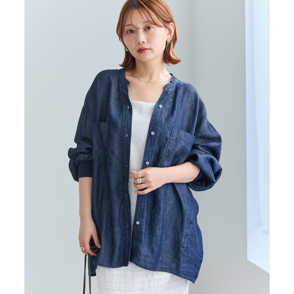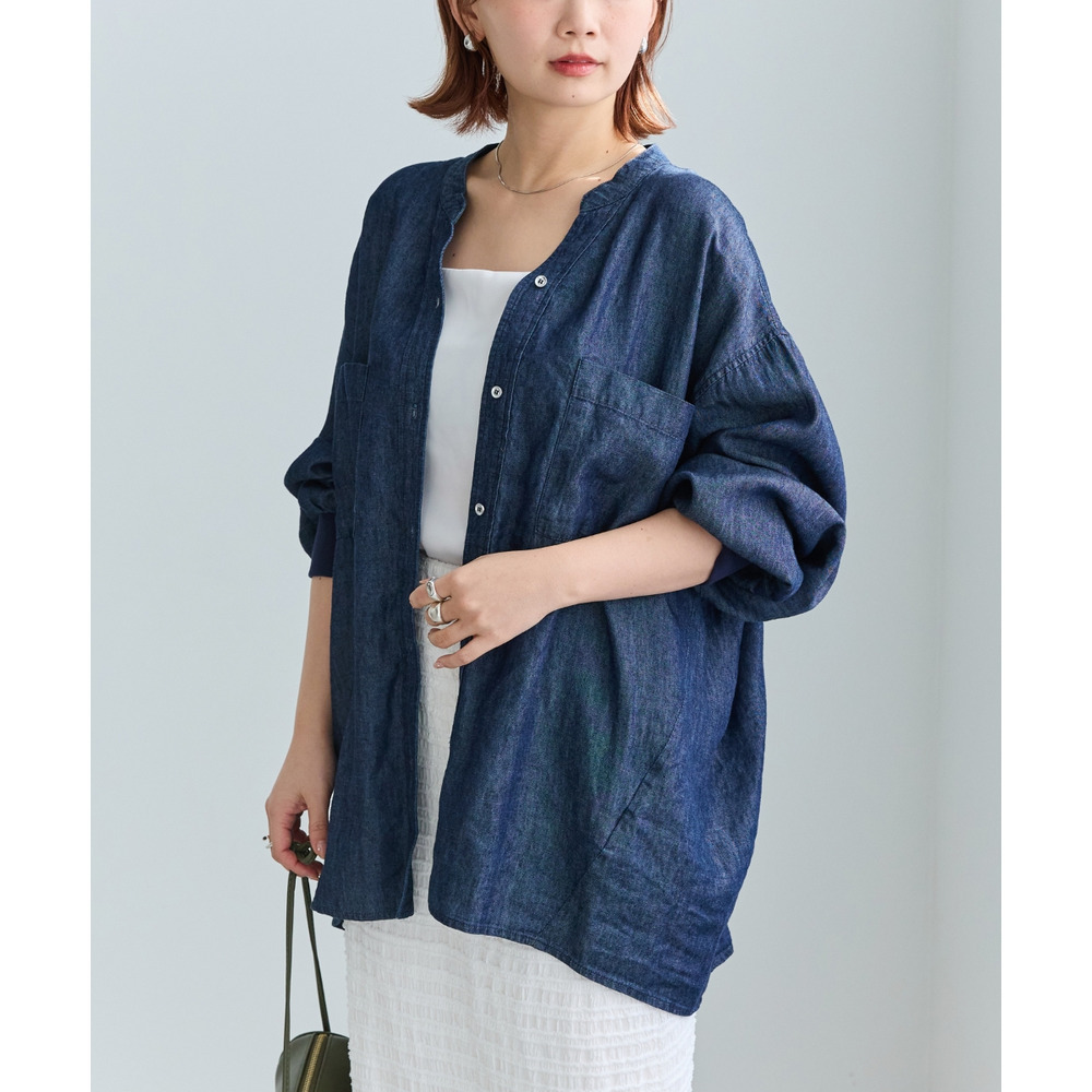 シアーデニムシャツ LL/3L/4L/5L きれいめカジュアル ハオリ ラビアンジェ