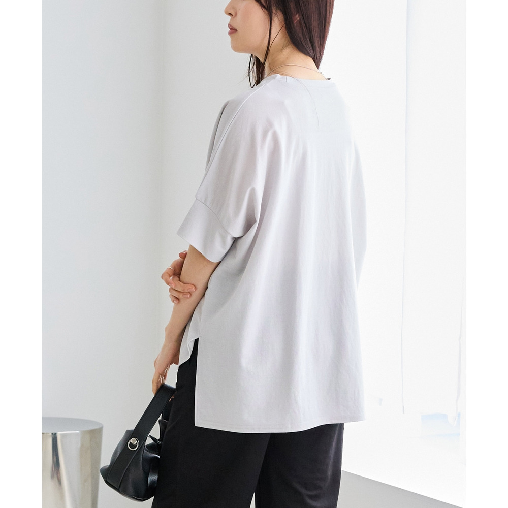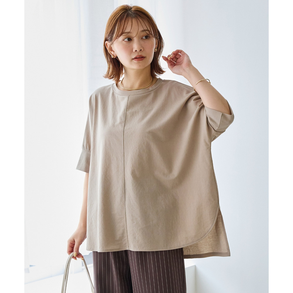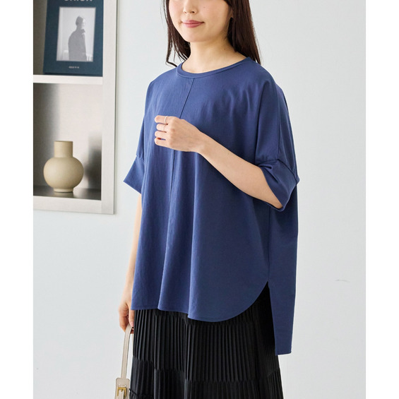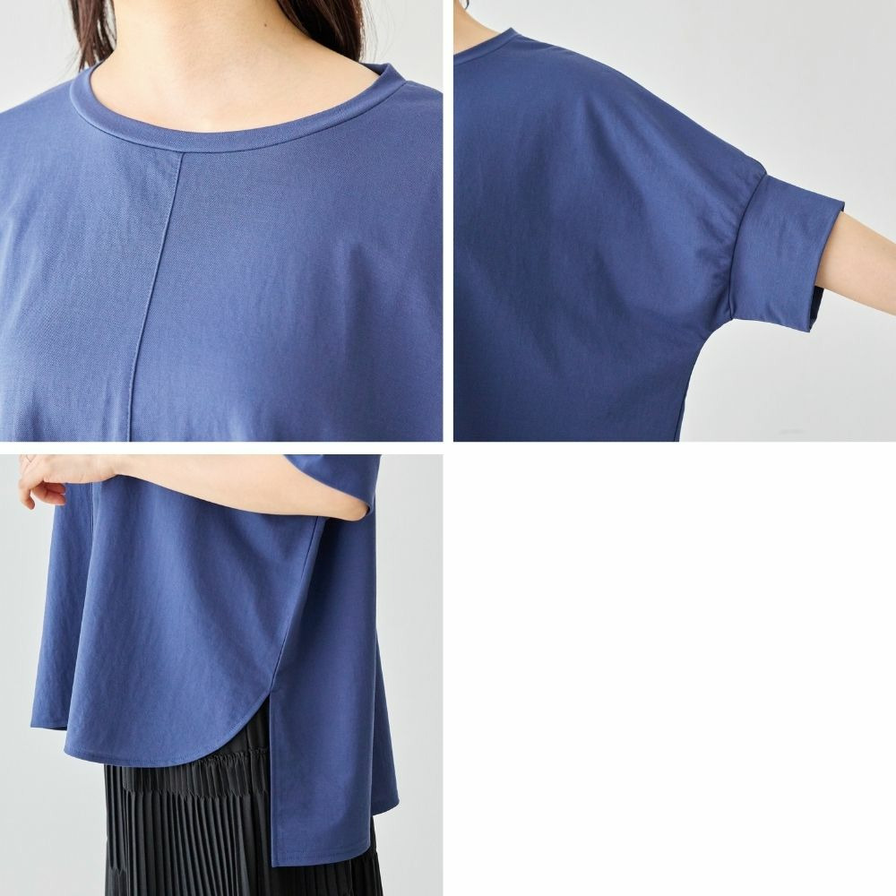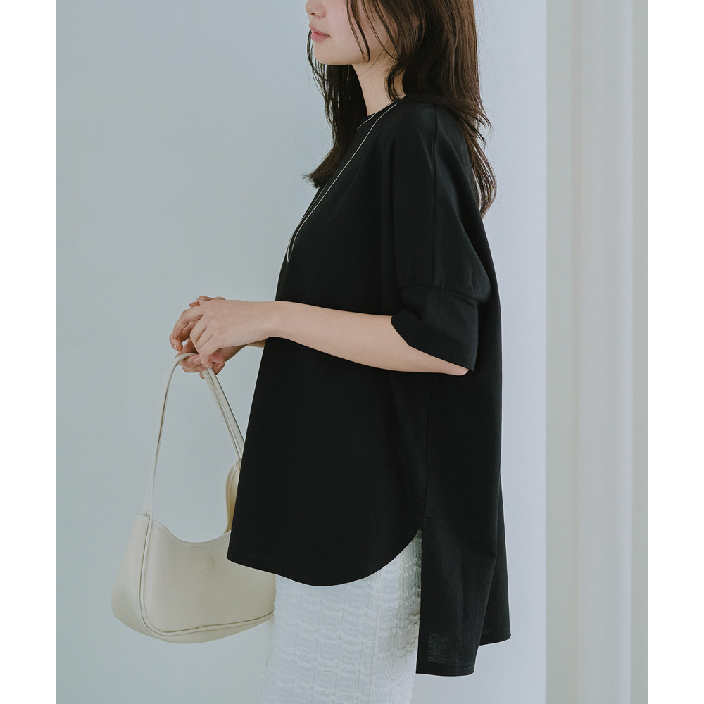ラウンド裾にサイドスリットを入れ抜け感をプラス、着るだけでさまになる前後差を付けたデザイン。