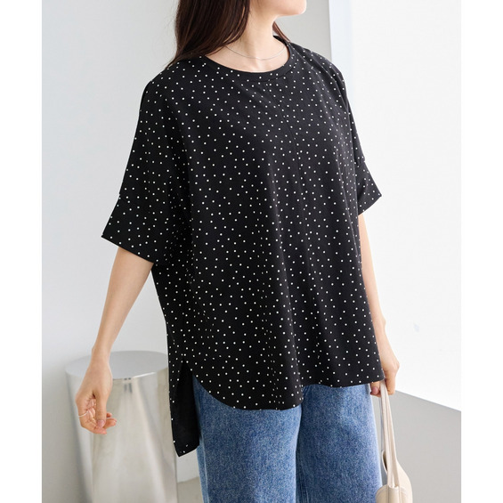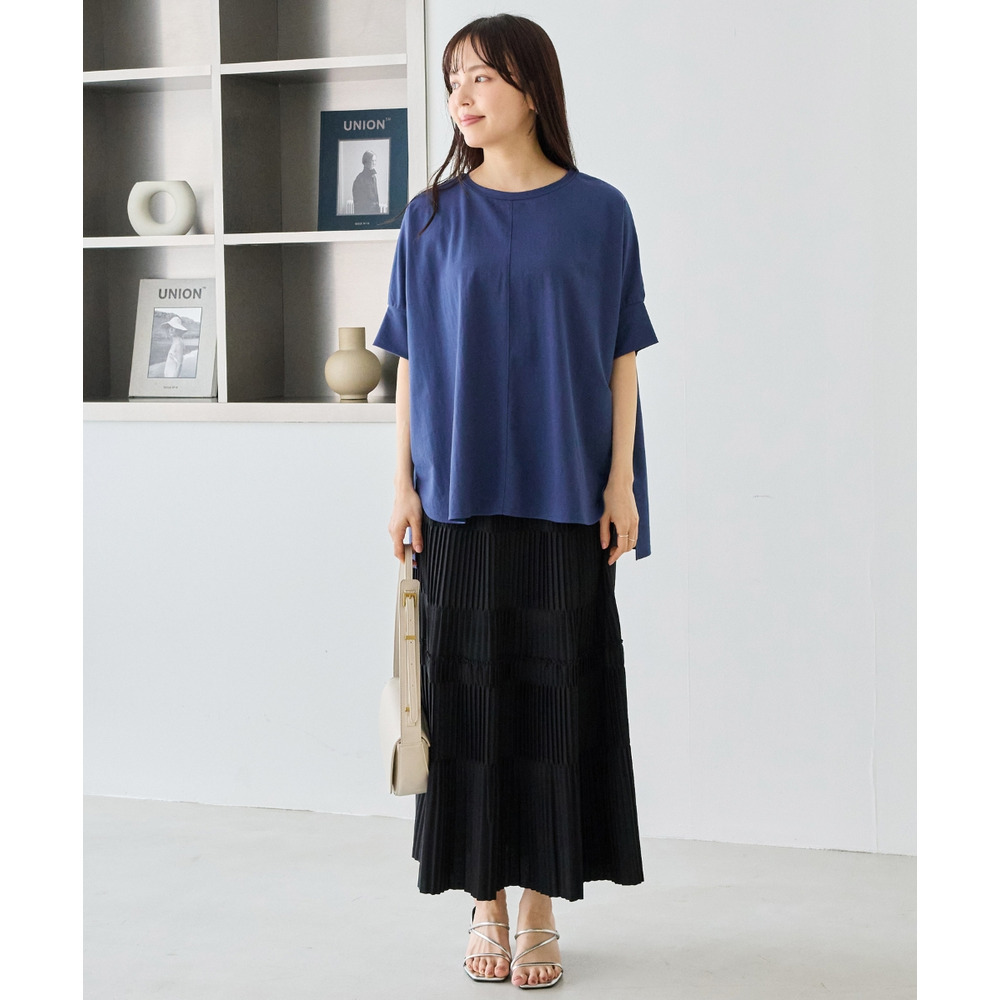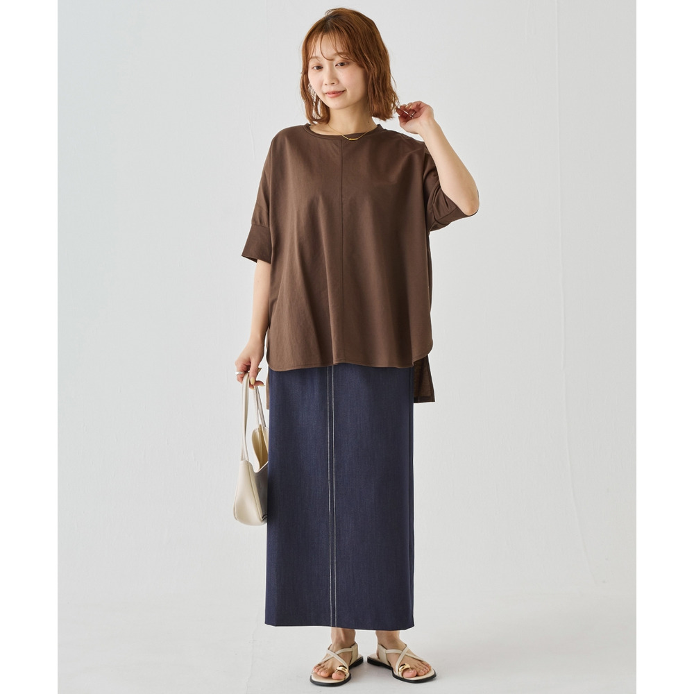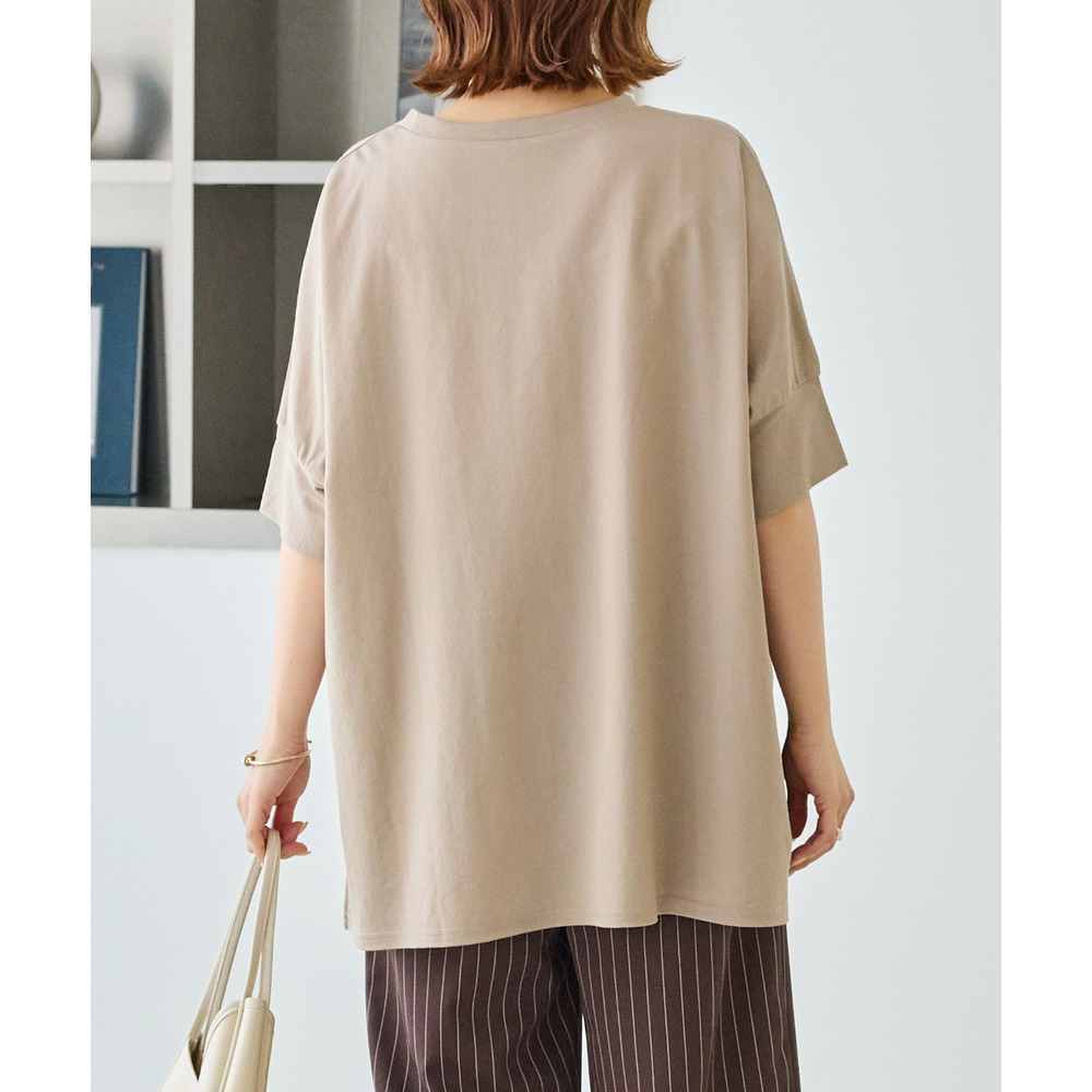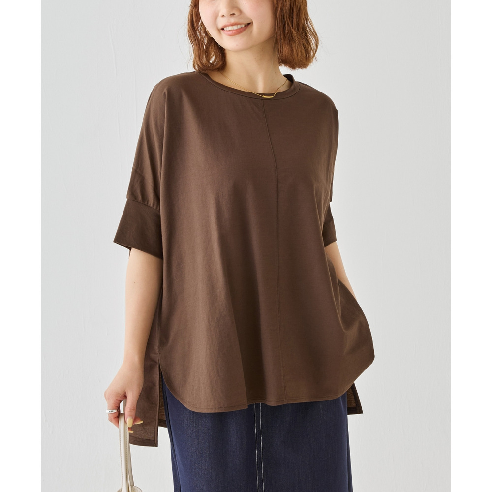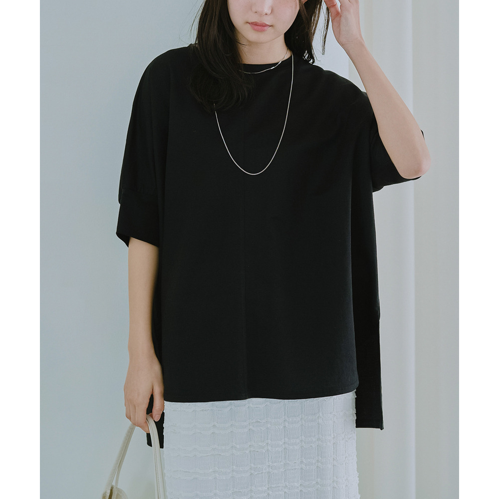 ラウンド裾にサイドスリットを入れ抜け感をプラス、着るだけでさまになる前後差を付けたデザイン。
