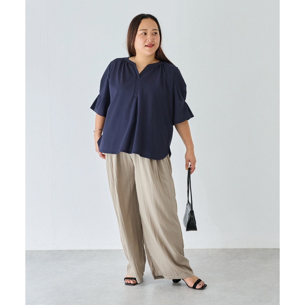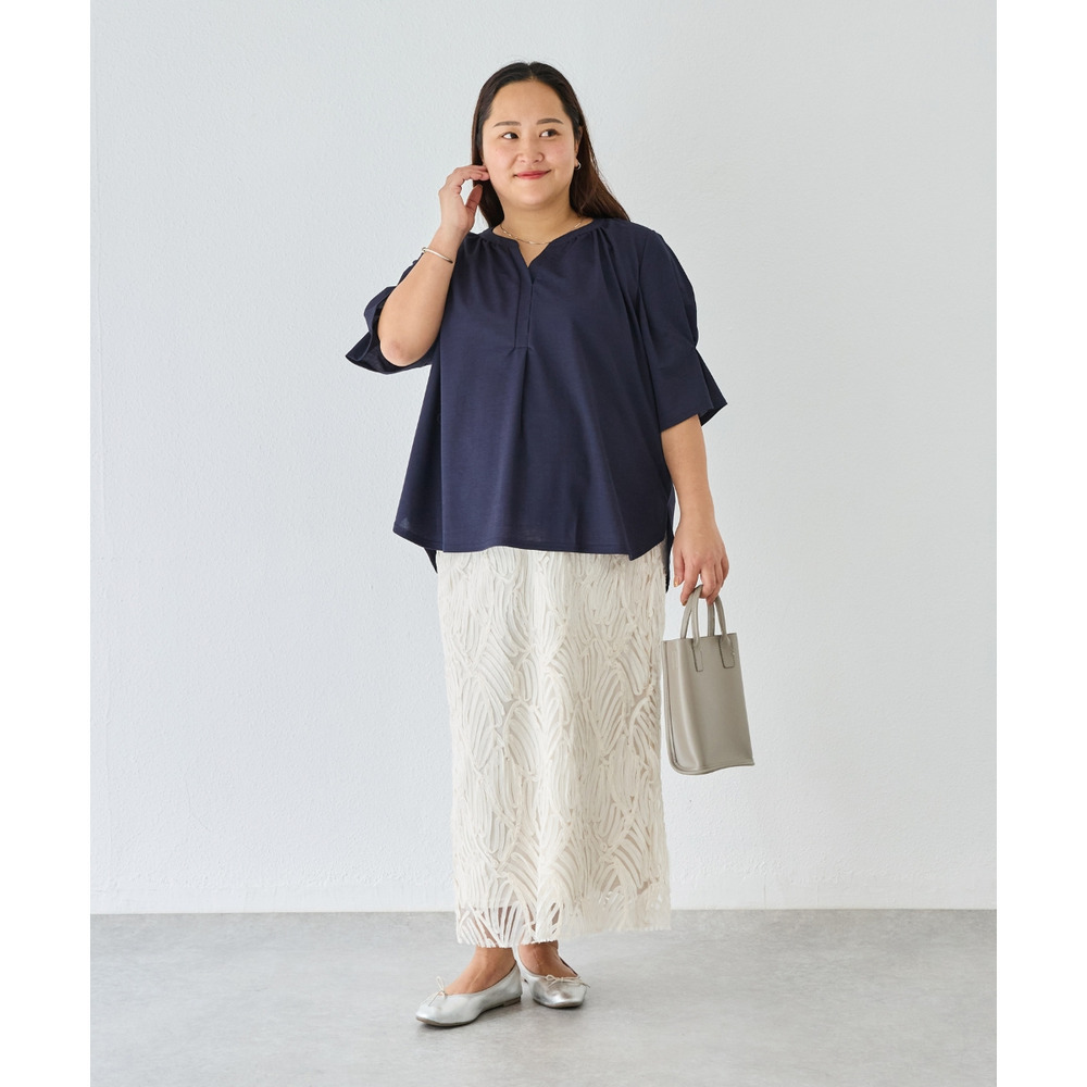 【好機能シリーズ】接触冷感|トリコットスキッパープルオーバー LL/3L/4L/5L オフィスカジュアル ラビアンジェ