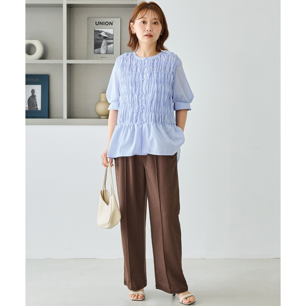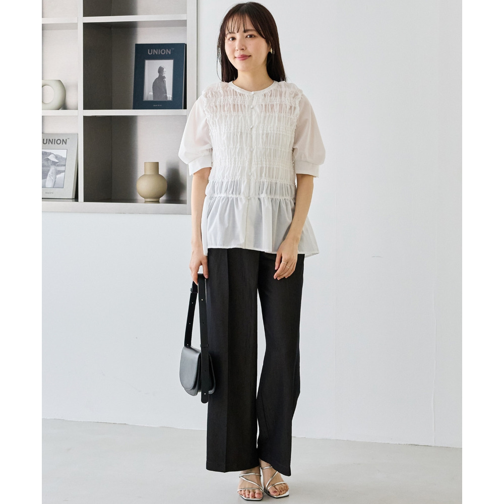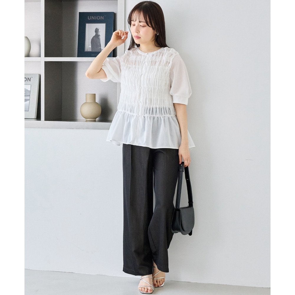 一枚で華やかさがあるため、シンプルなボトムと合わせるだけでバランスの取れたコーディネートが完成します。