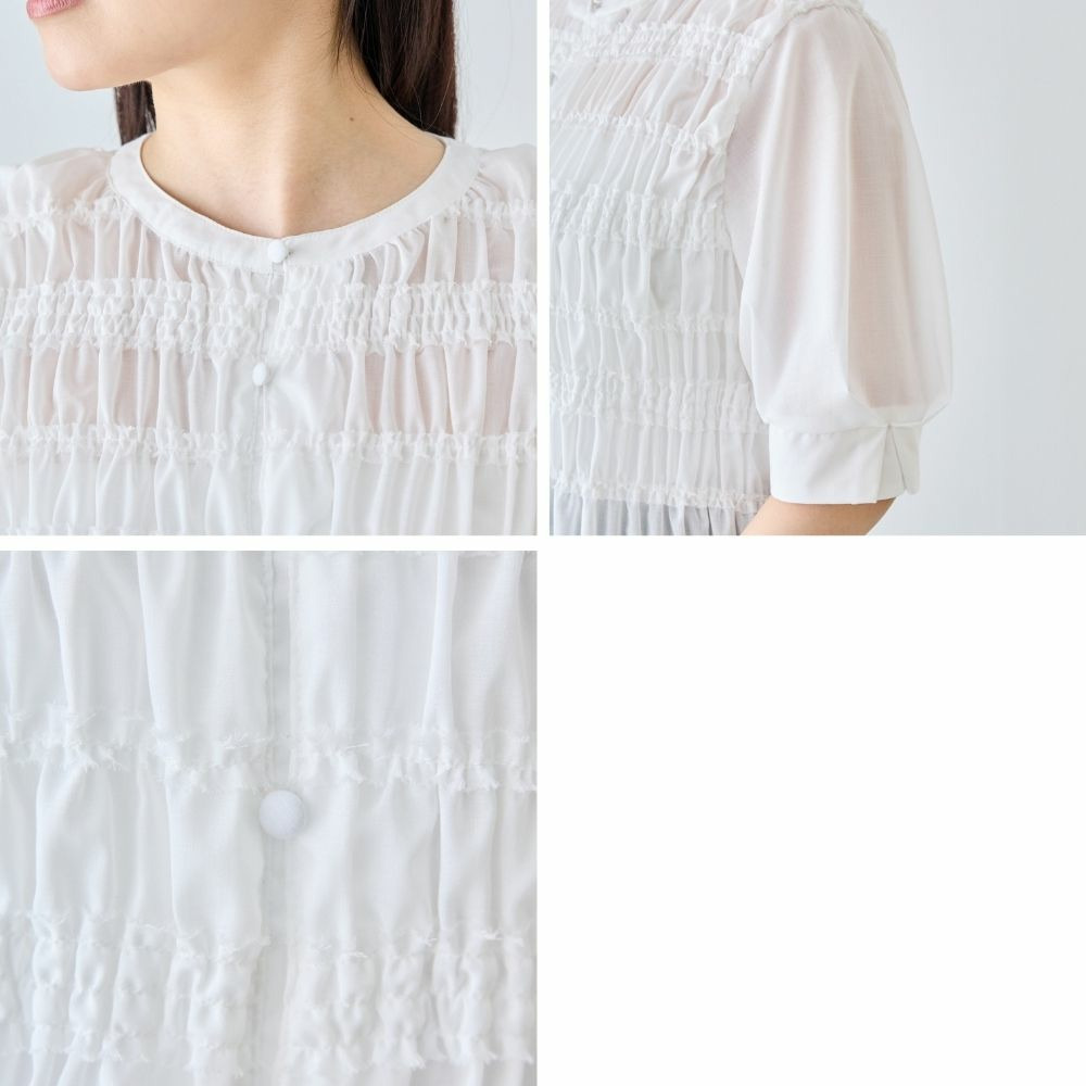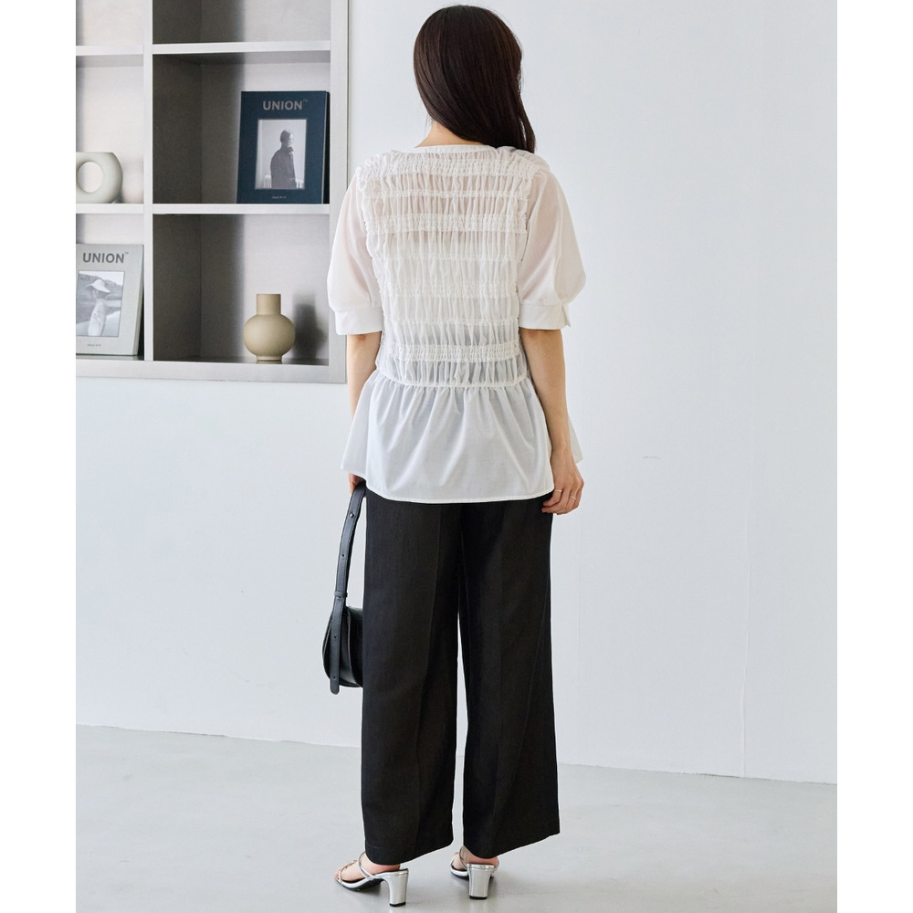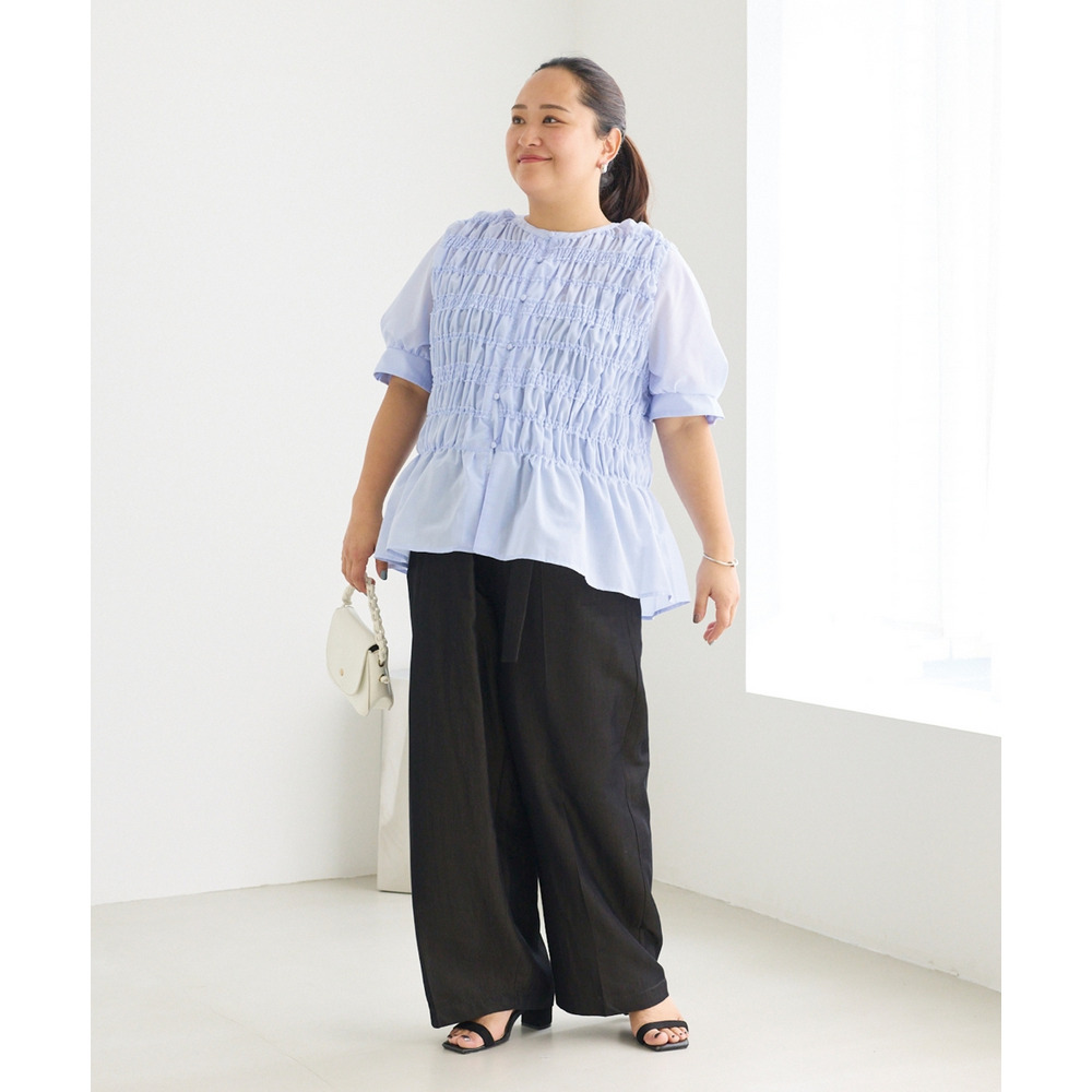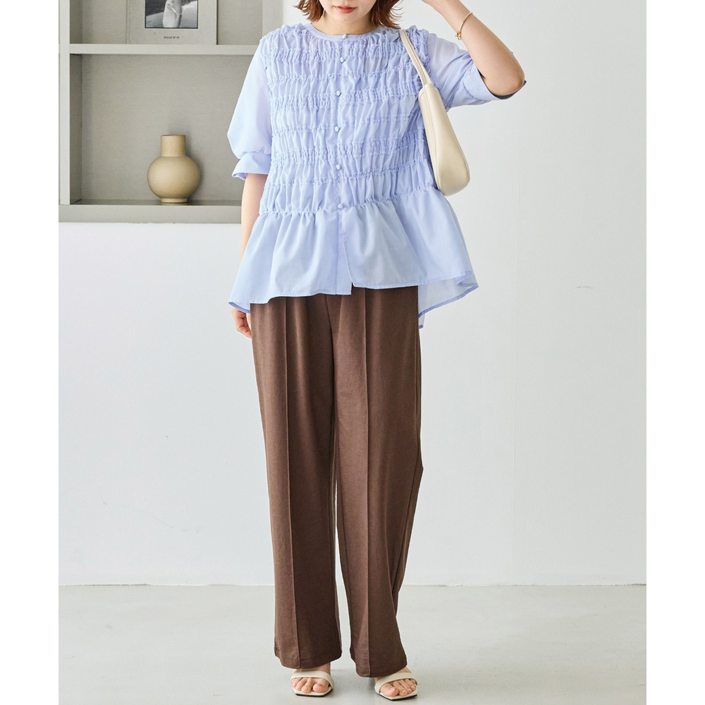 一枚で華やかさがあるため、シンプルなボトムと合わせるだけでバランスの取れたコーディネートが完成します。
