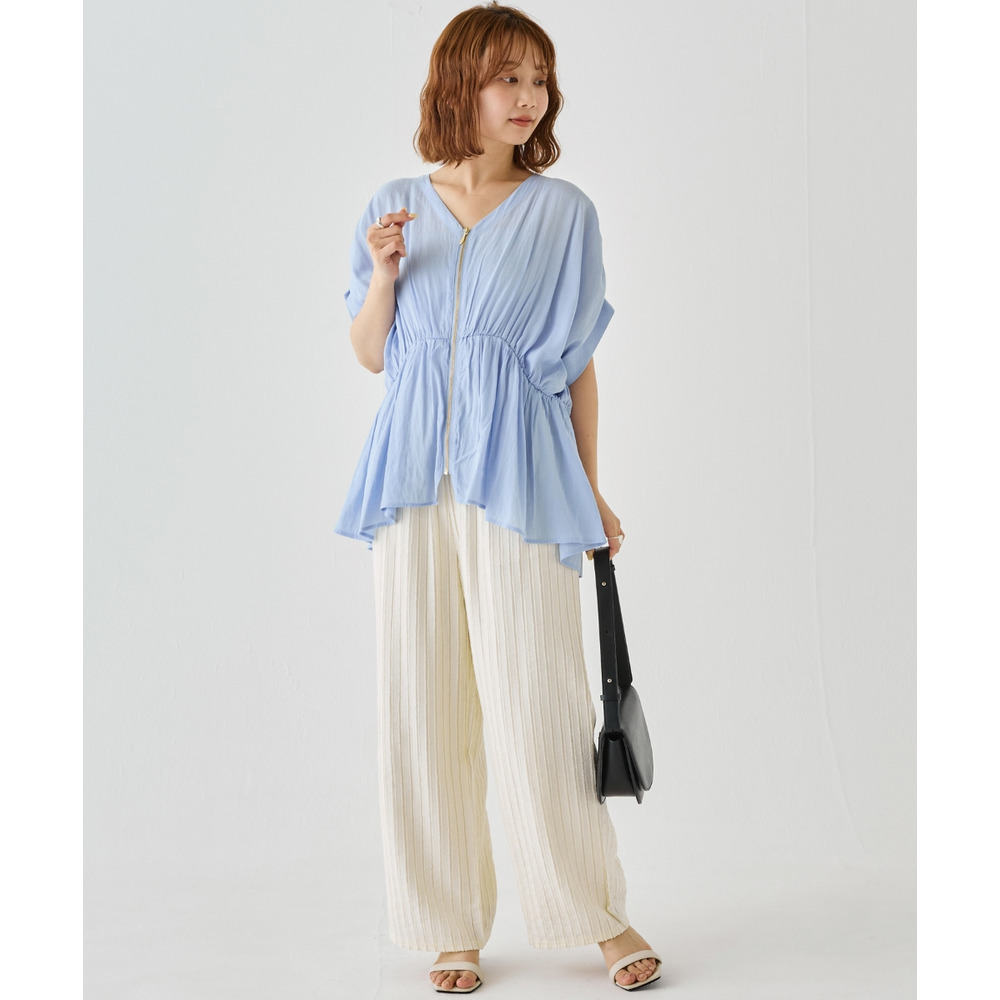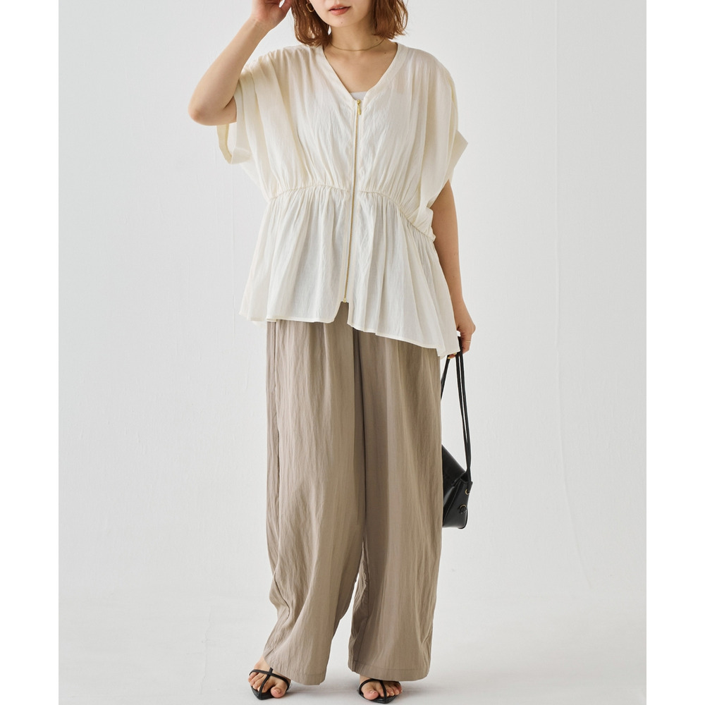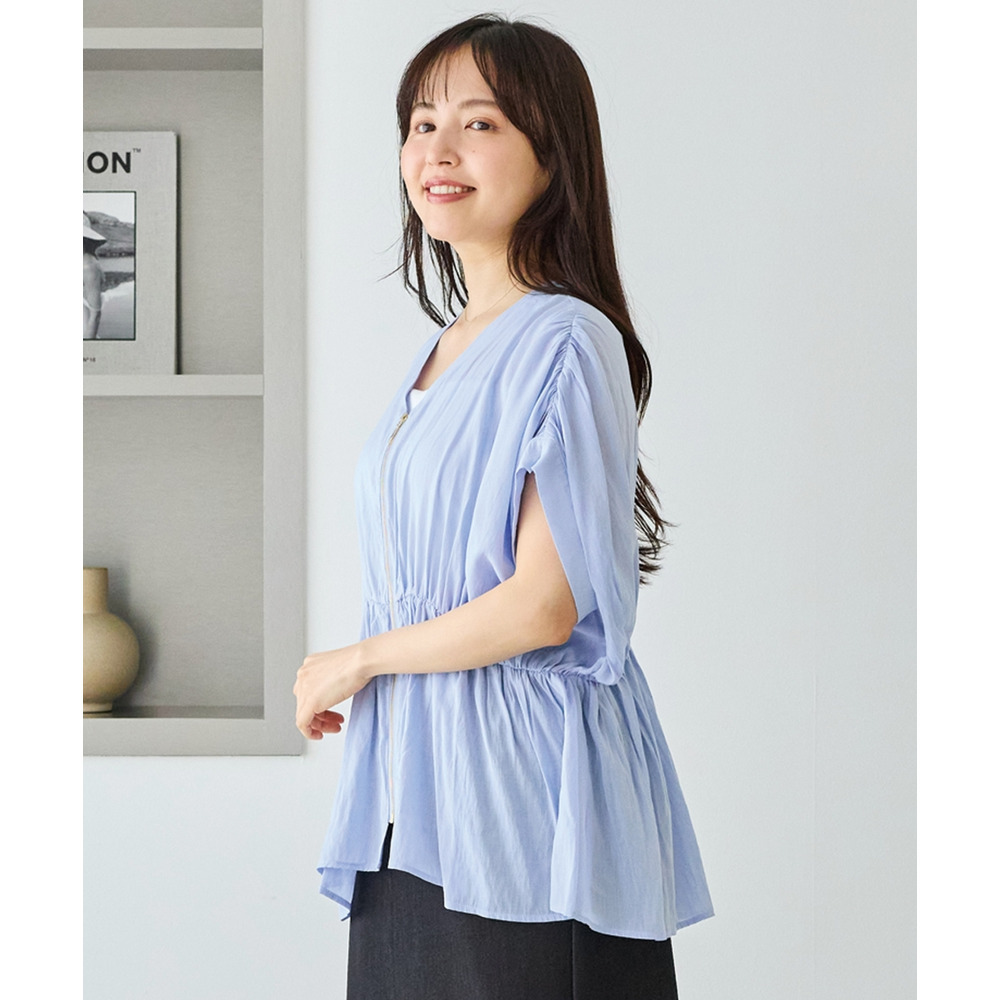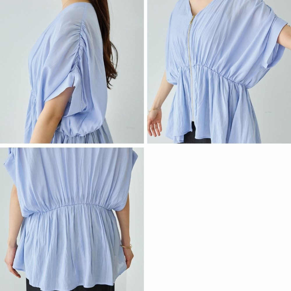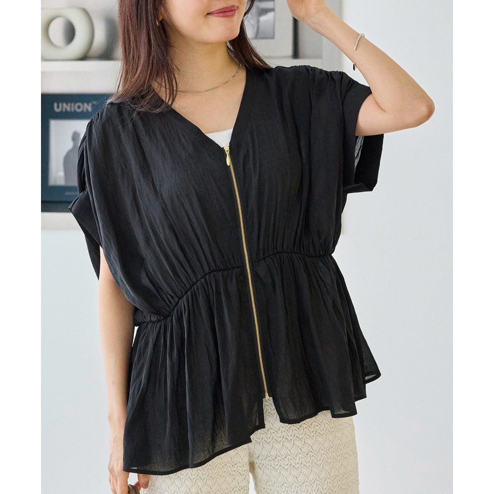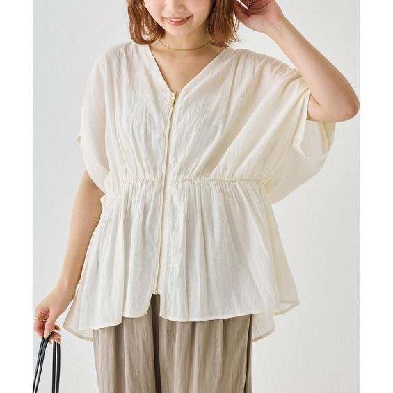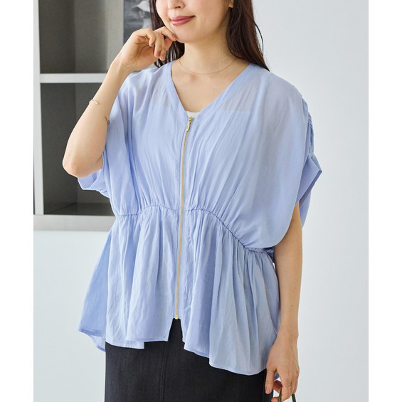 ゴールドファスナーがアクセントになった、上品なブラウス。