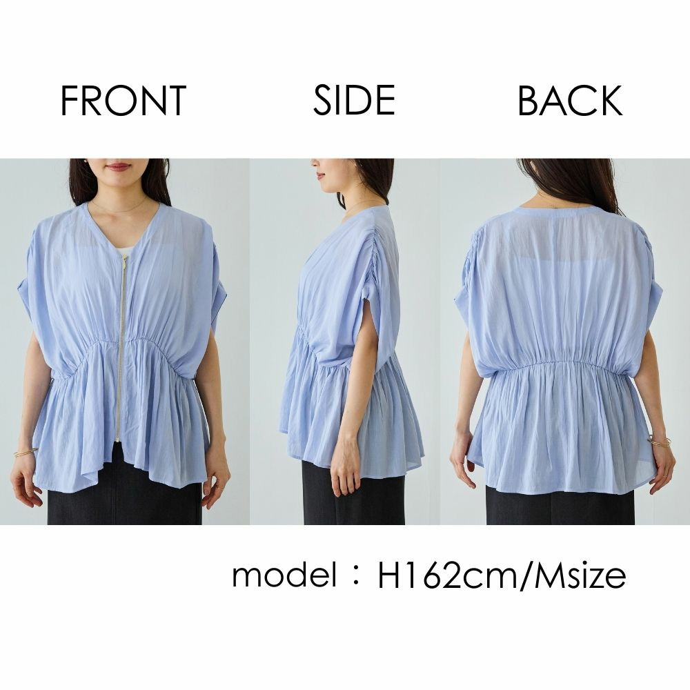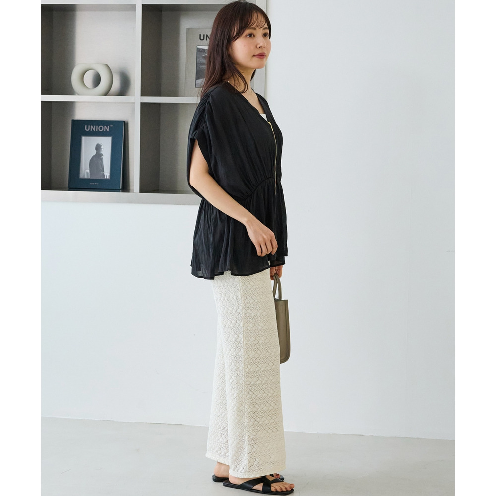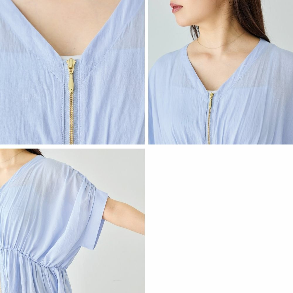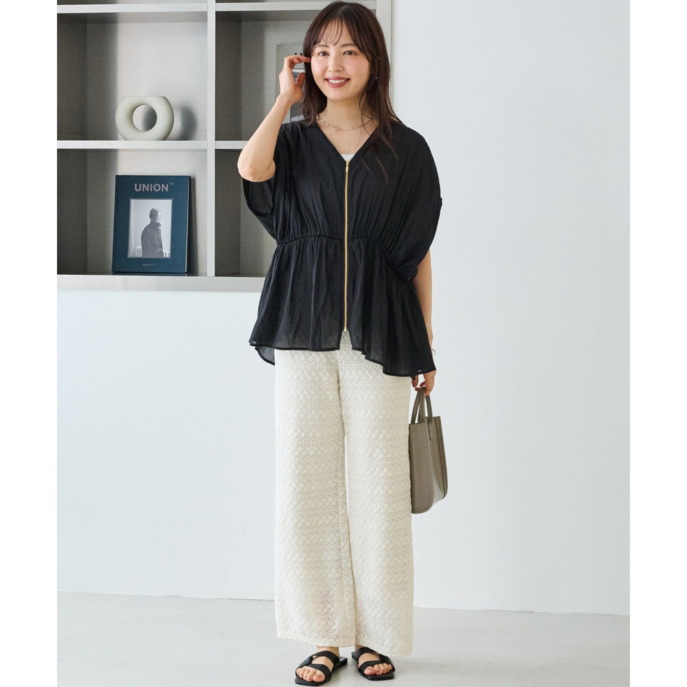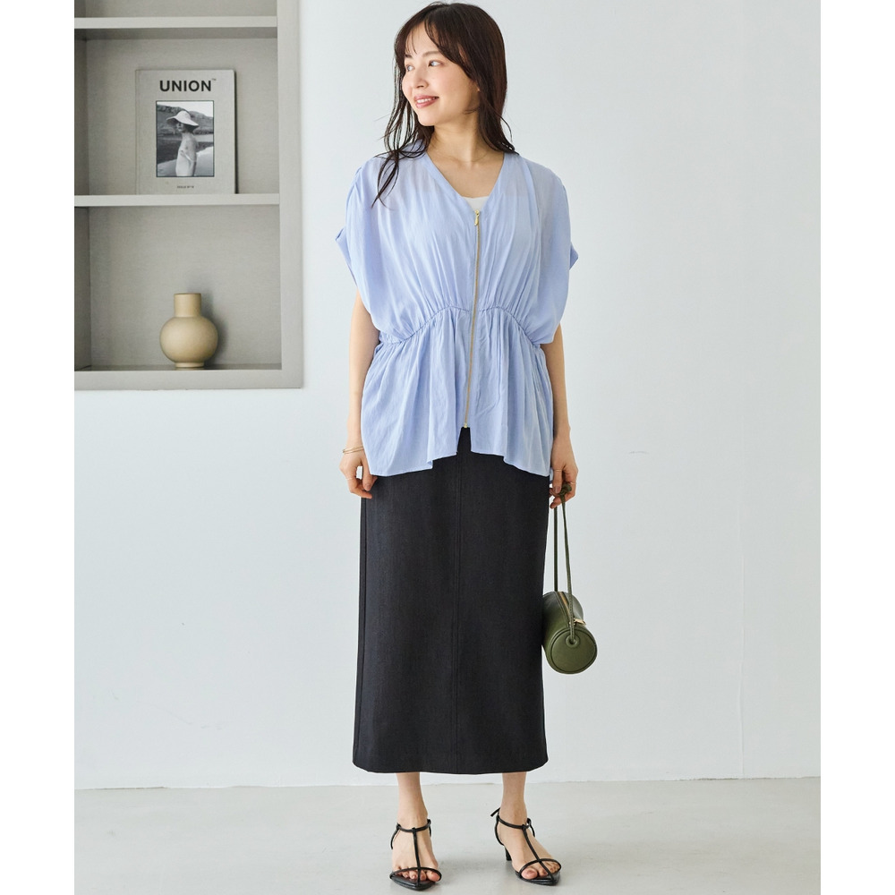ゴールドファスナーがアクセントになった、上品なブラウス。