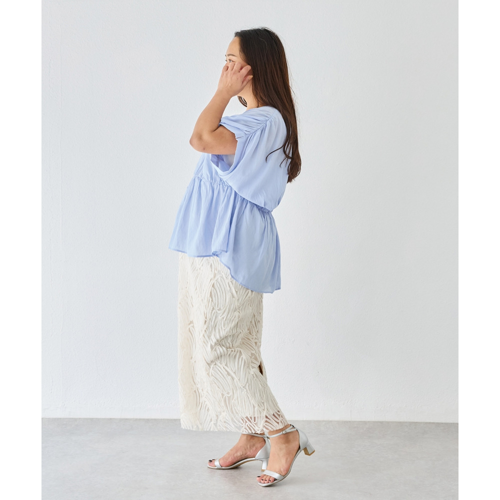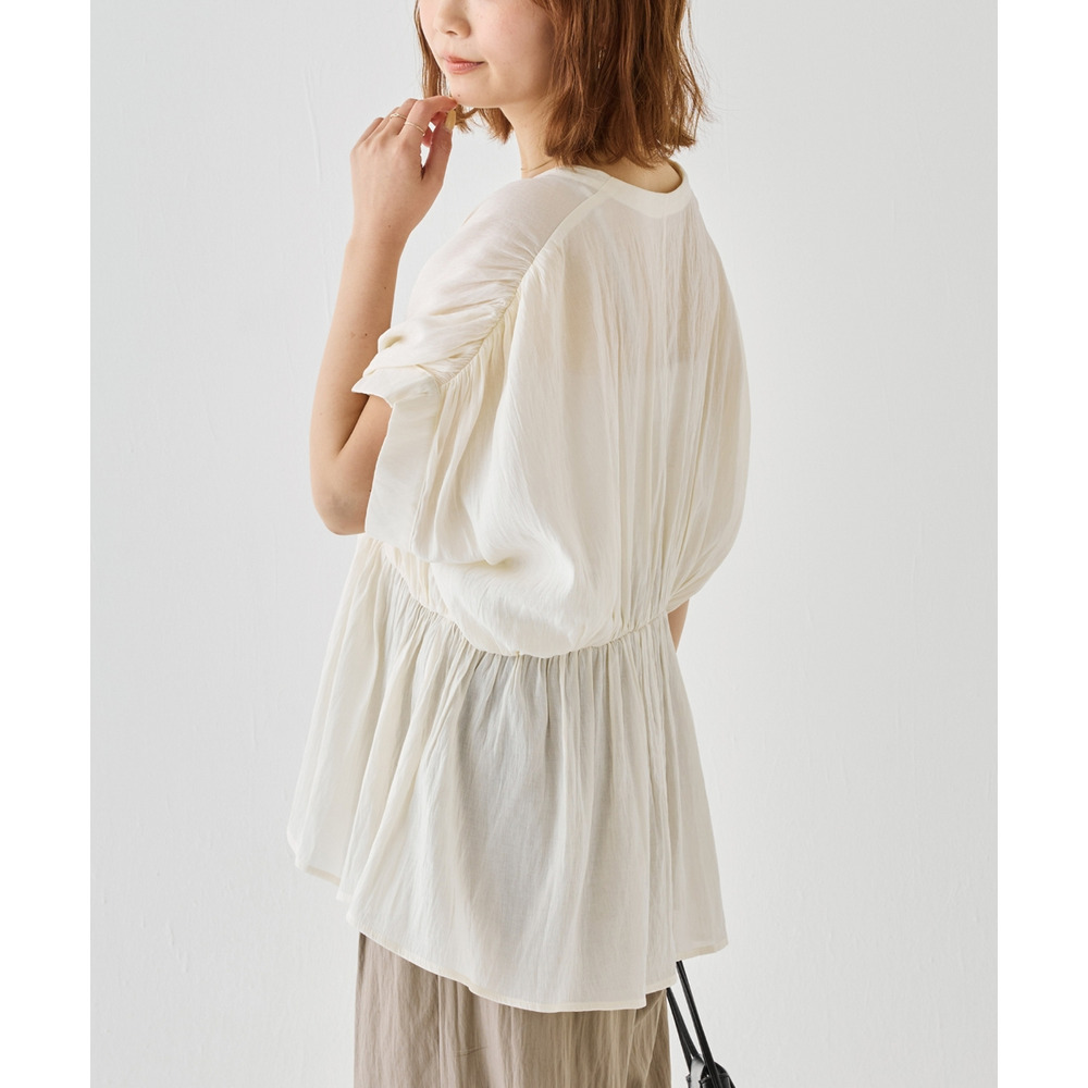 ゆとりのあるスリーブと軽やかな素材感で、抜け感のある大人フェミニンな一枚に仕上げました。