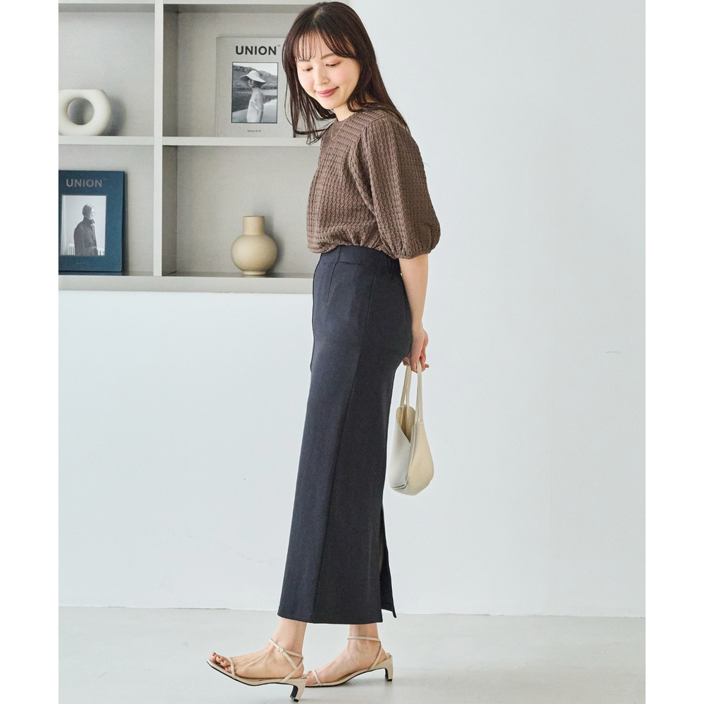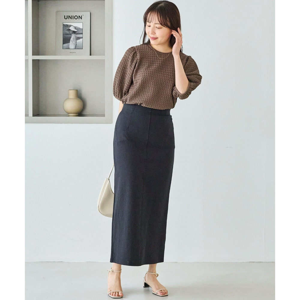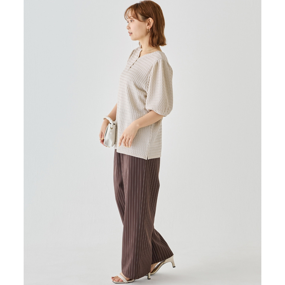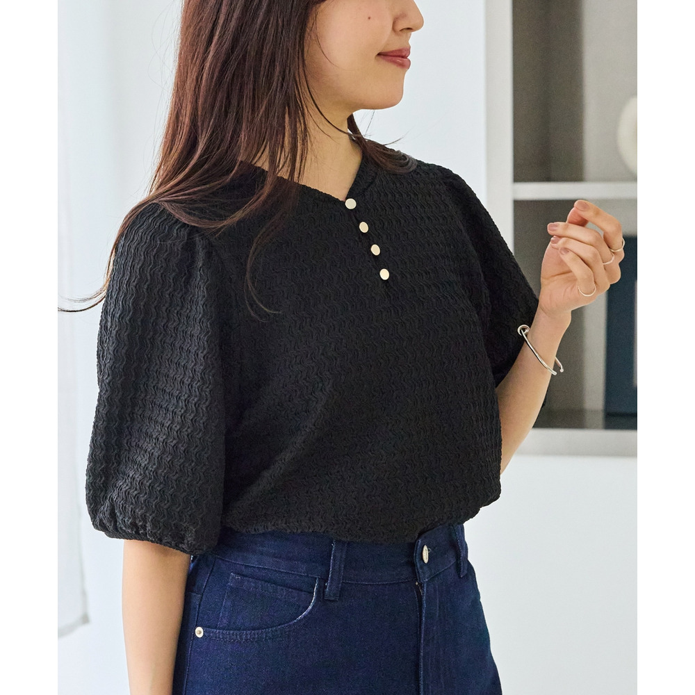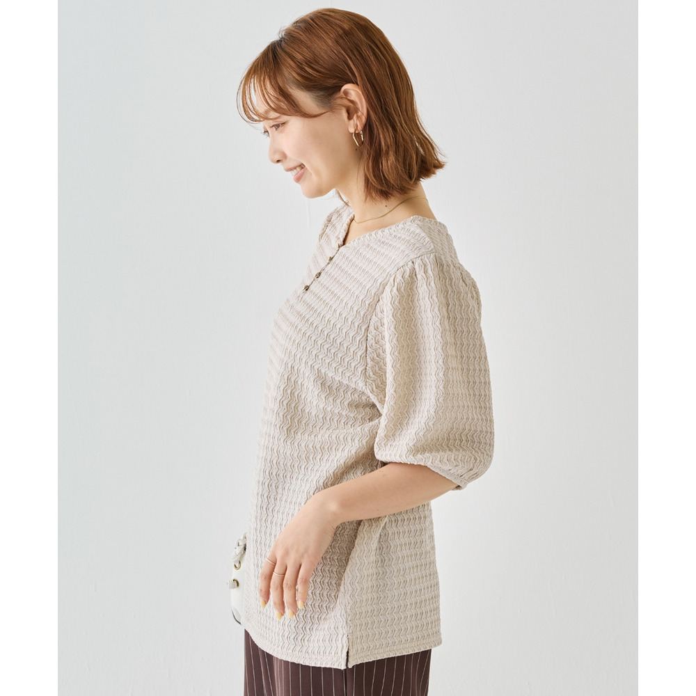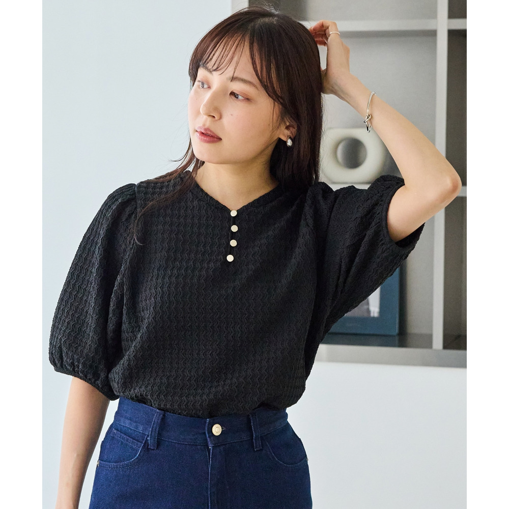 ややパフスリーブが、程よいボリュームで女性らしい柔らかな印象を演出し、立体感のあるシルエットに仕上げています。