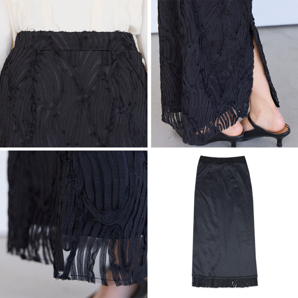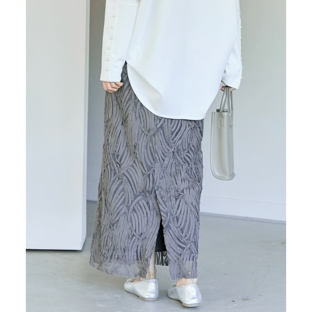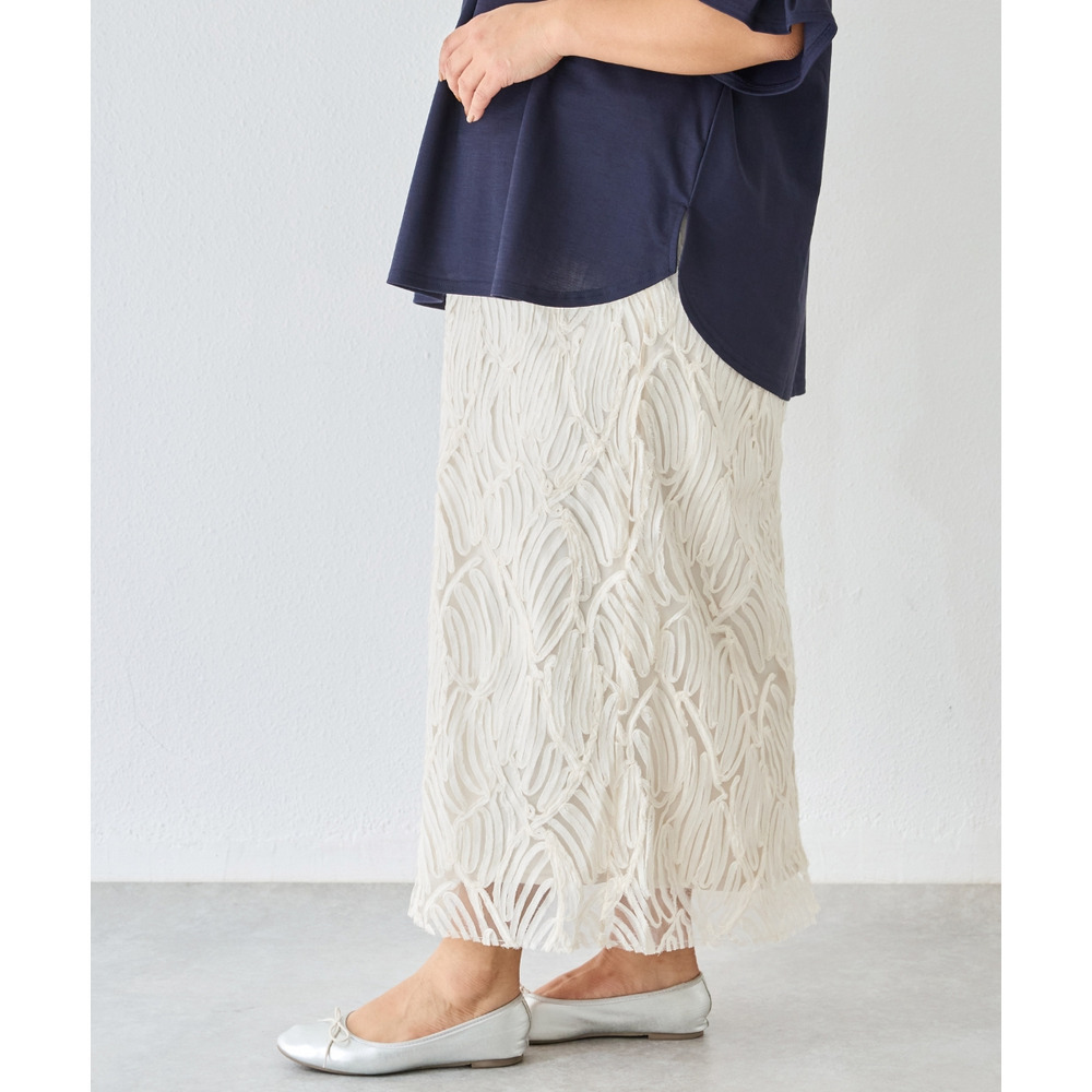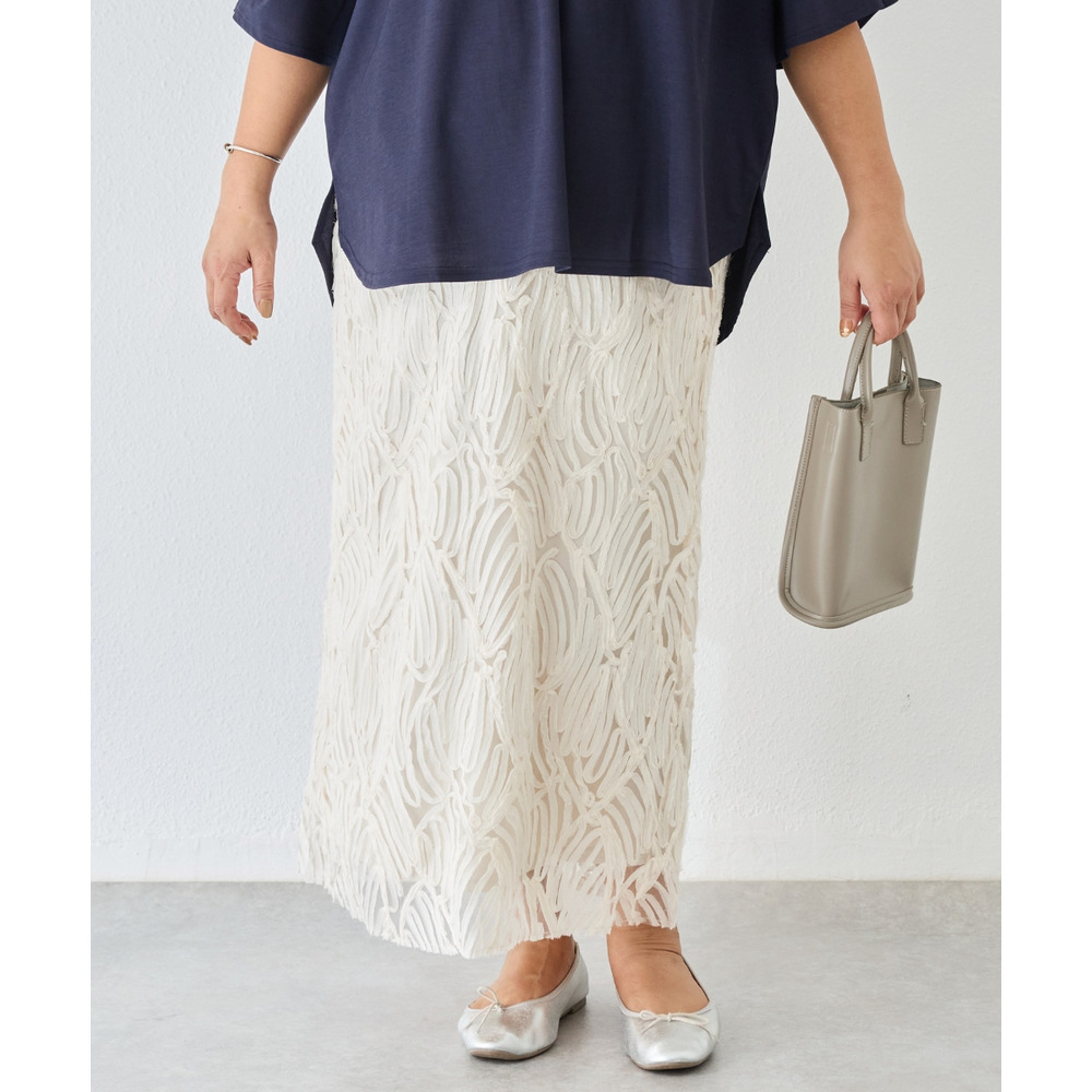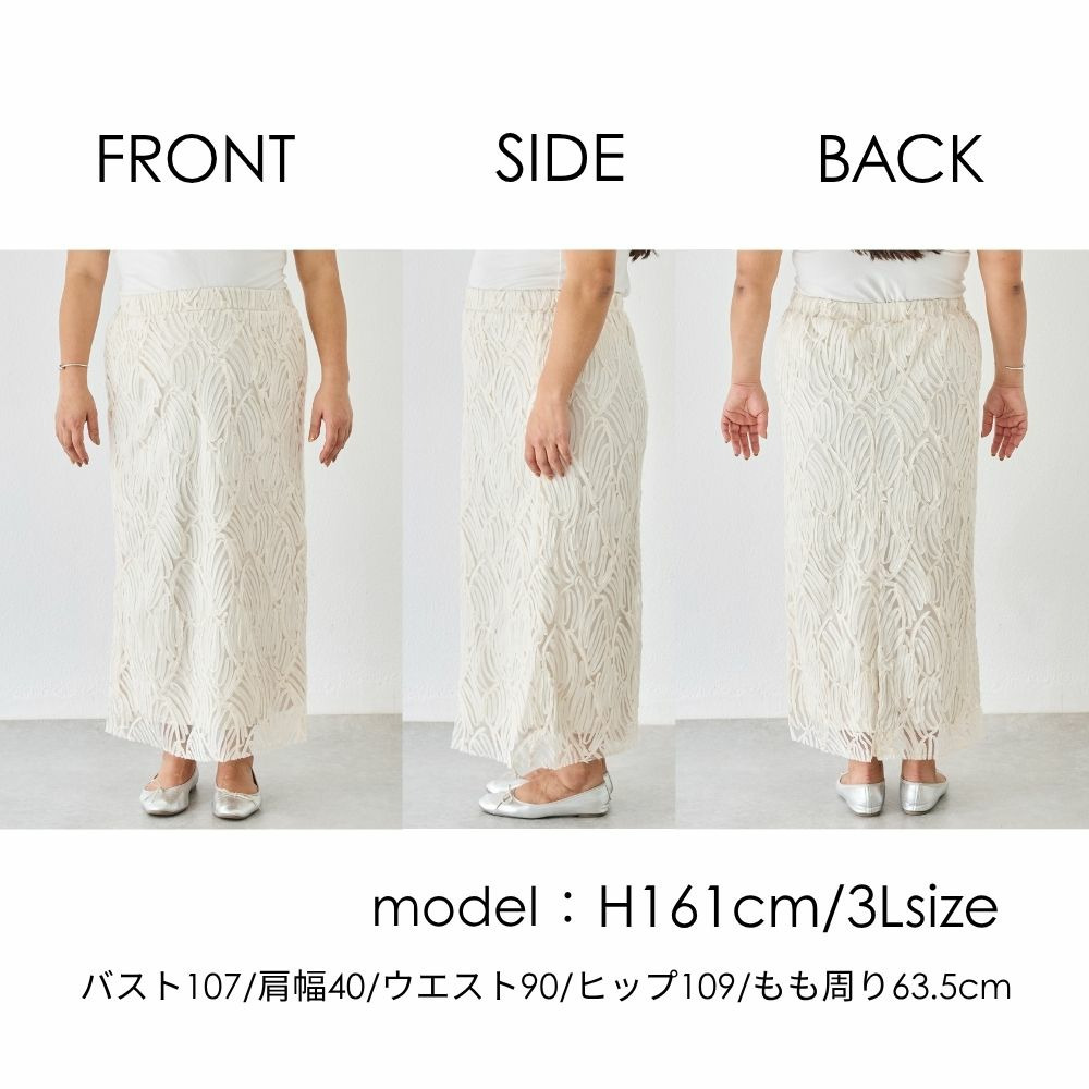 【洗える】チュールレースナロースカート LL/3L/4L ラビアンジェ