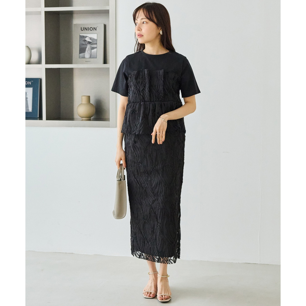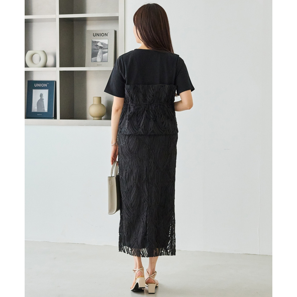 トップスのTシャツ部分のみをインすることで、ワンピース見えする着こなしも楽しめるのが魅力です。