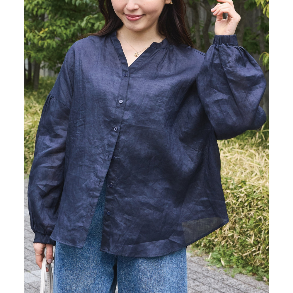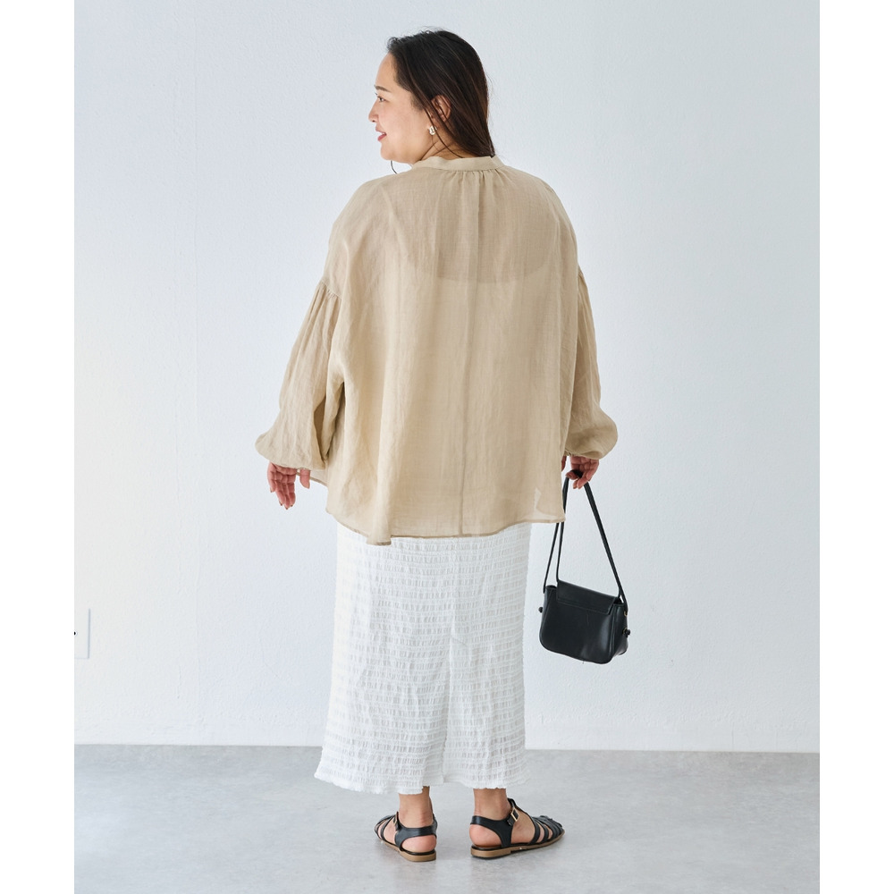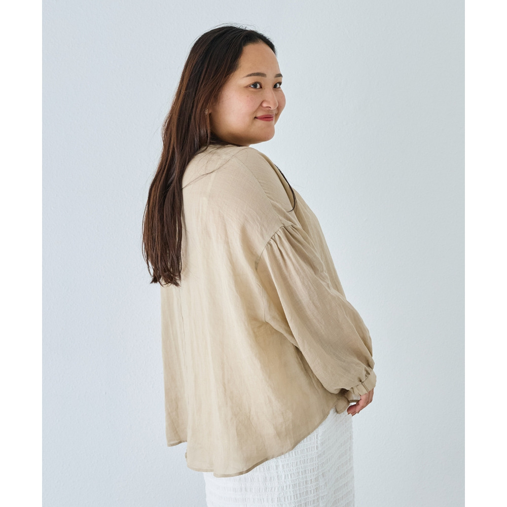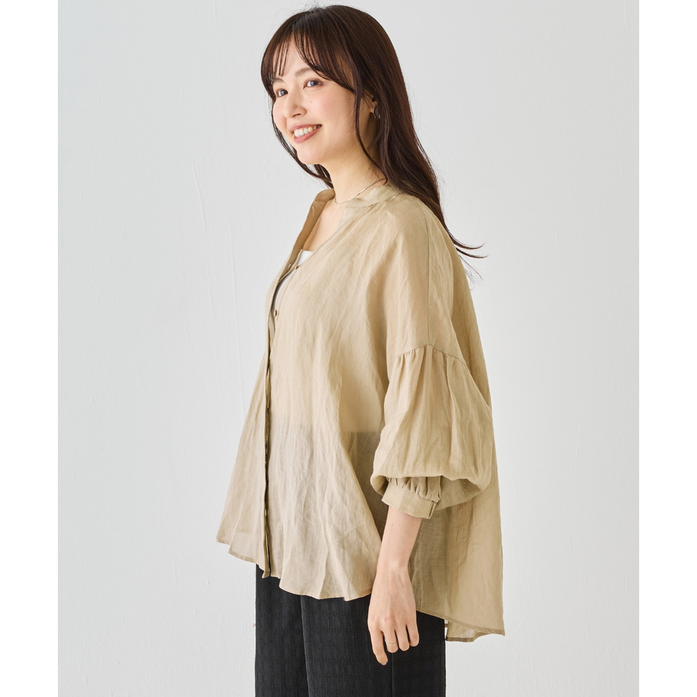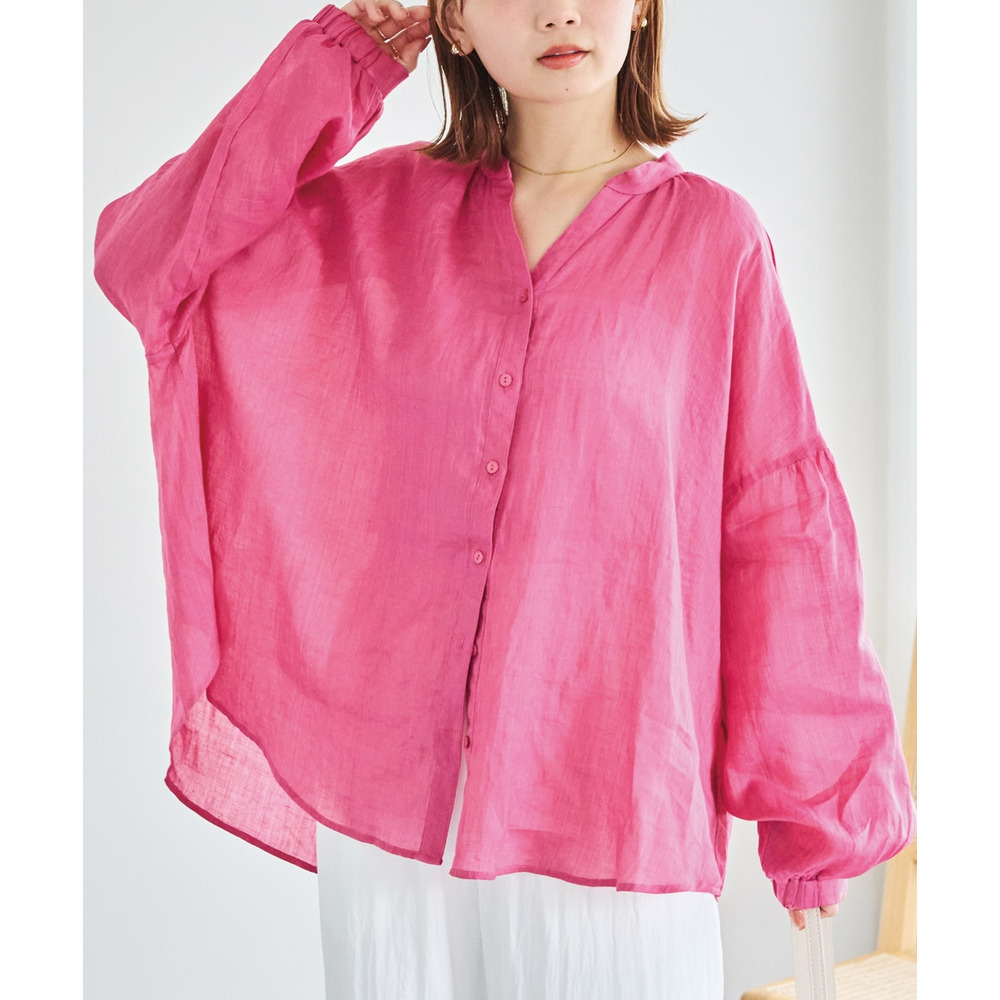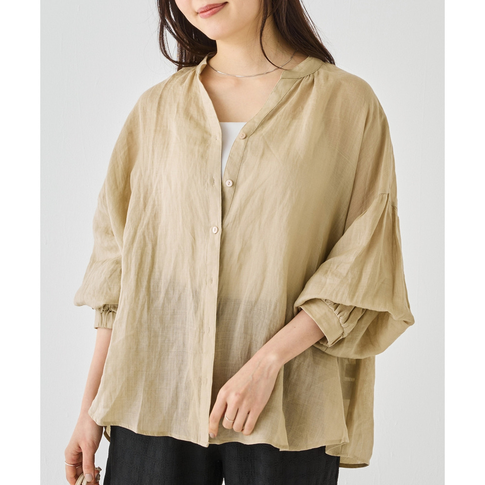 程よいシアー感が魅力の、ラミー100%素材の軽やかなブラウス。