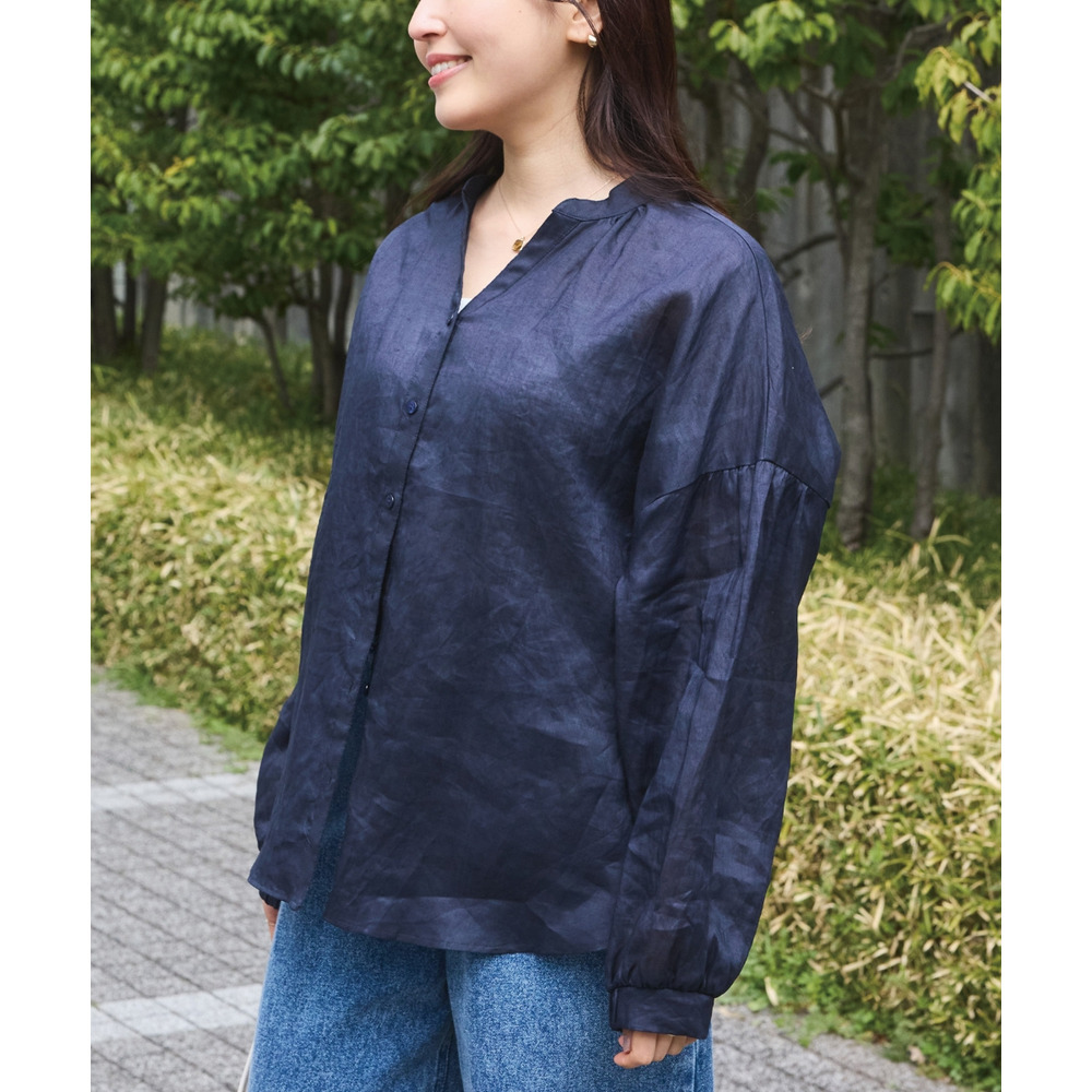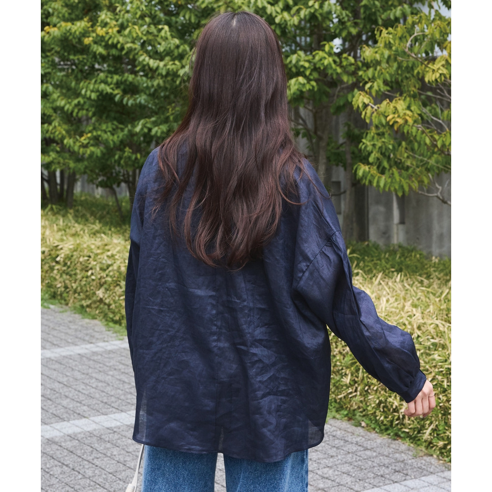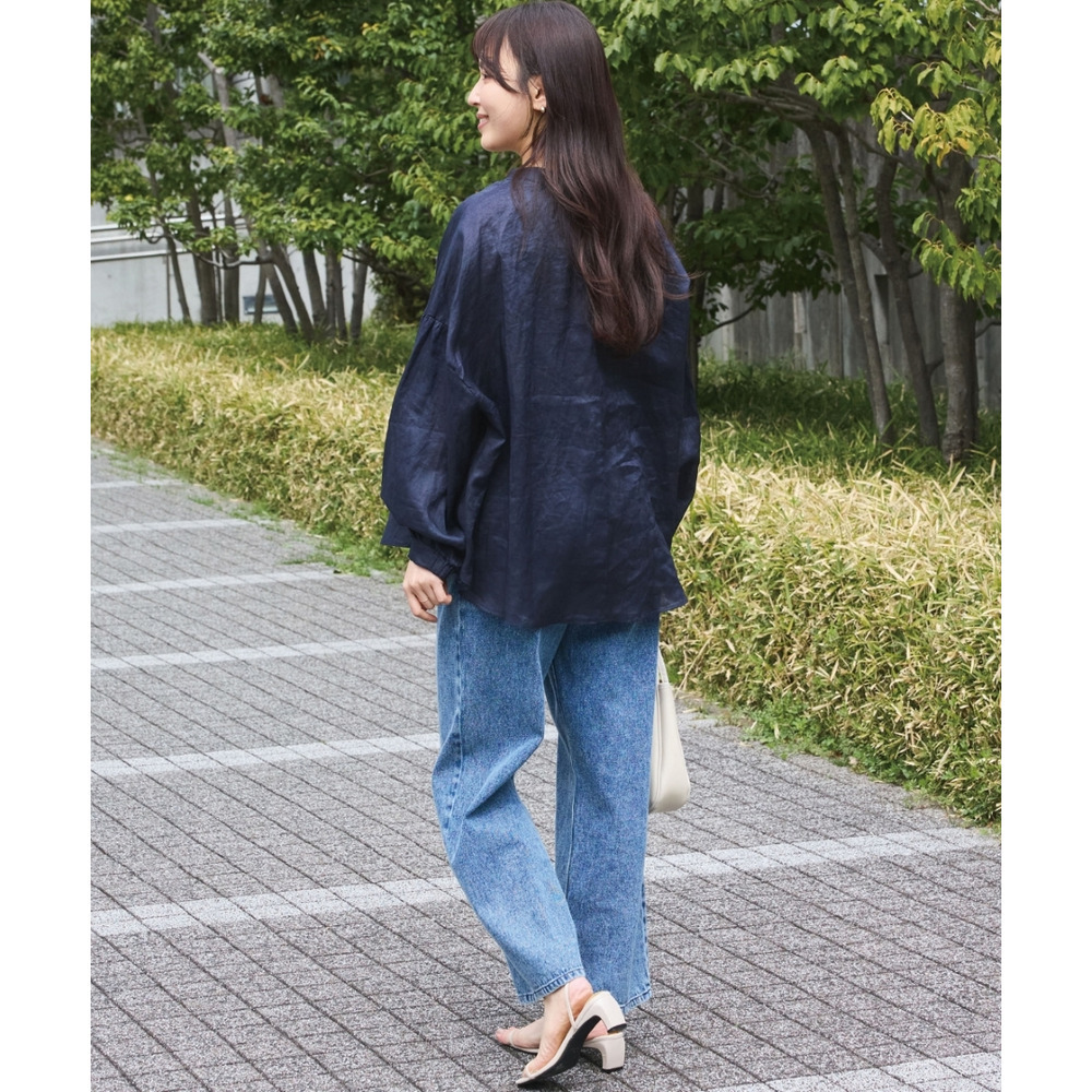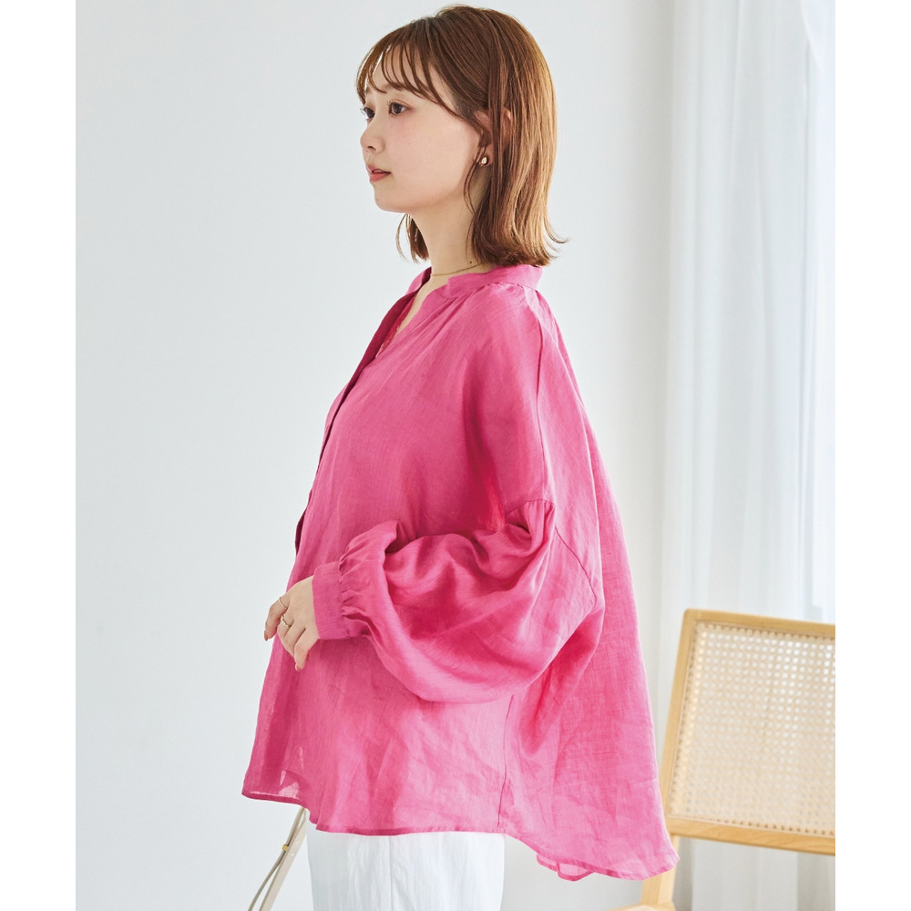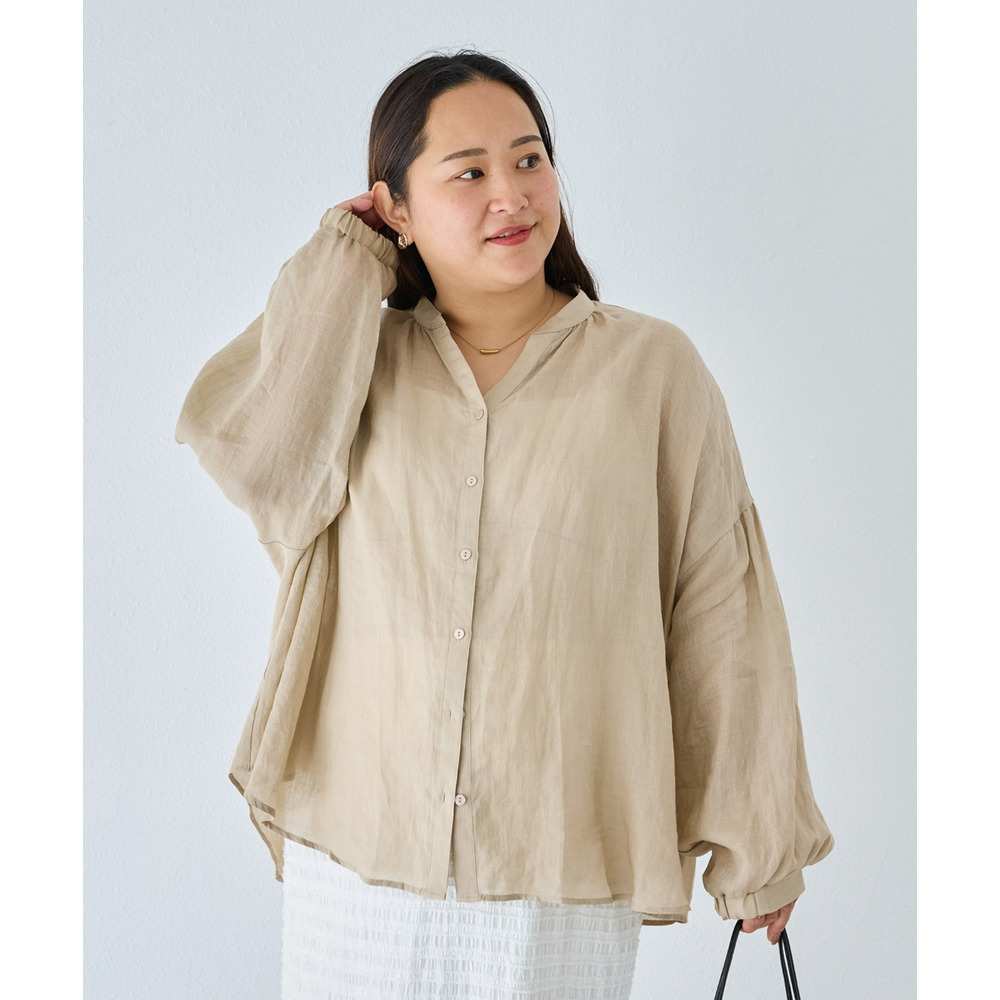 程よいシアー感が魅力の、ラミー100%素材の軽やかなブラウス。