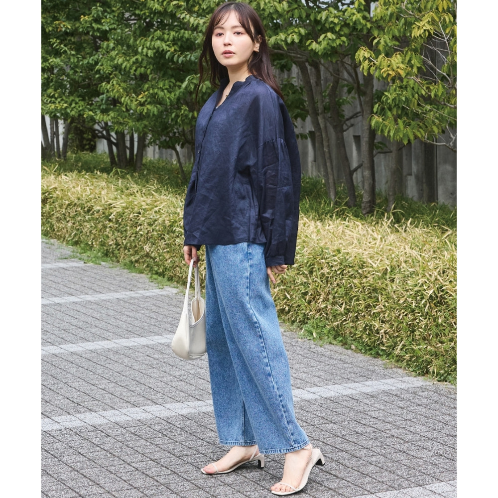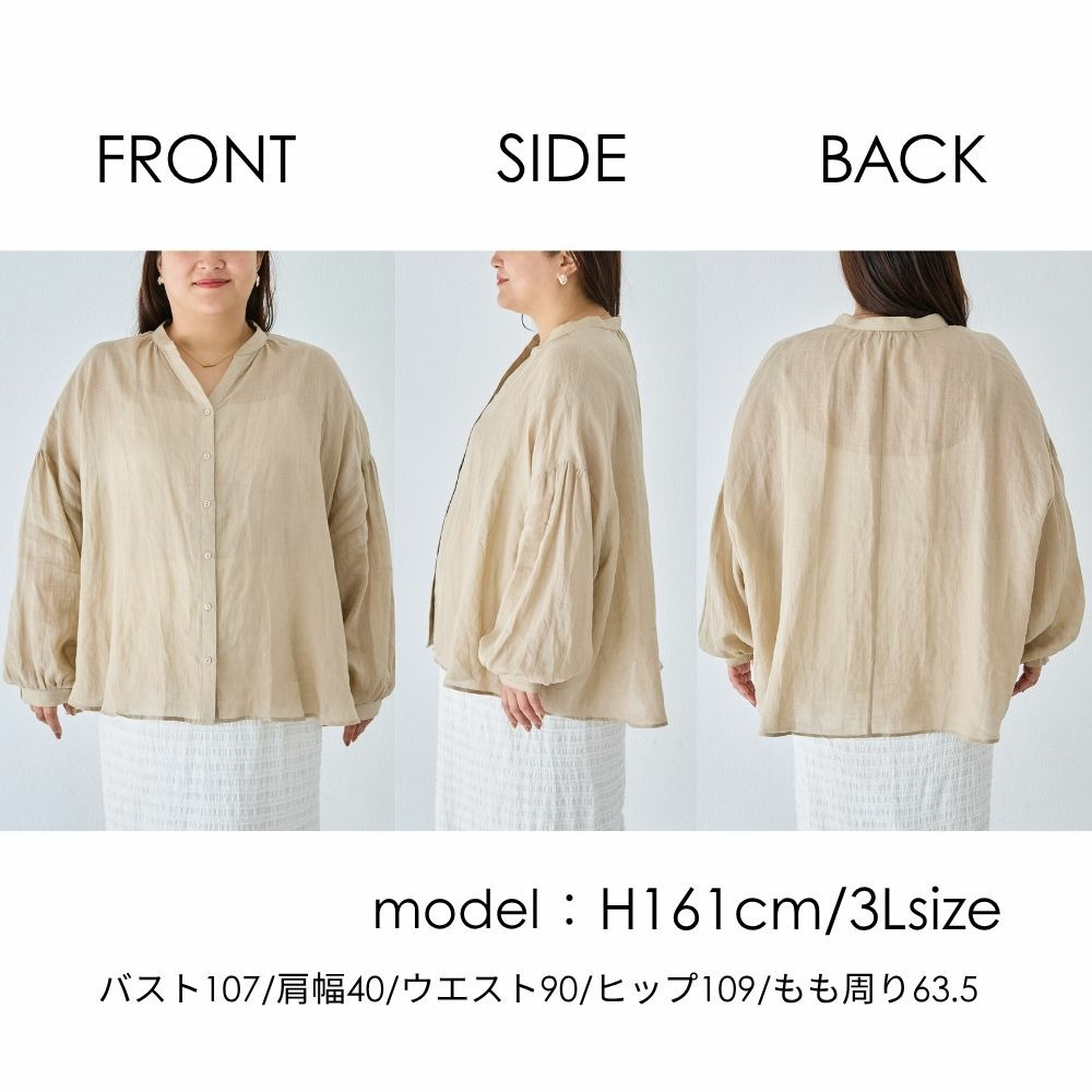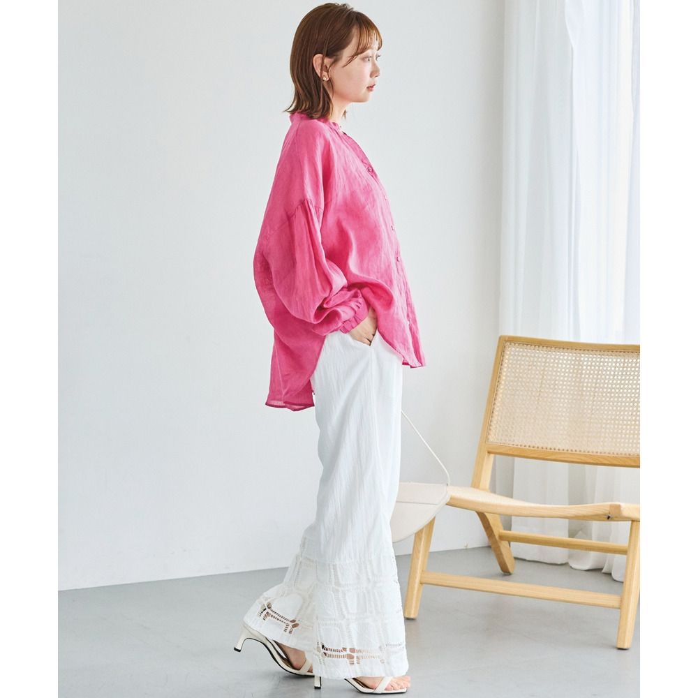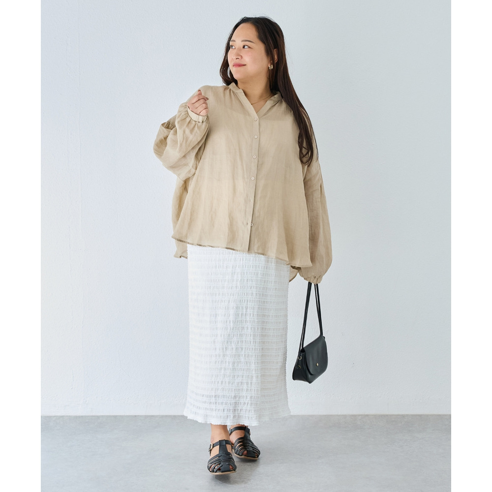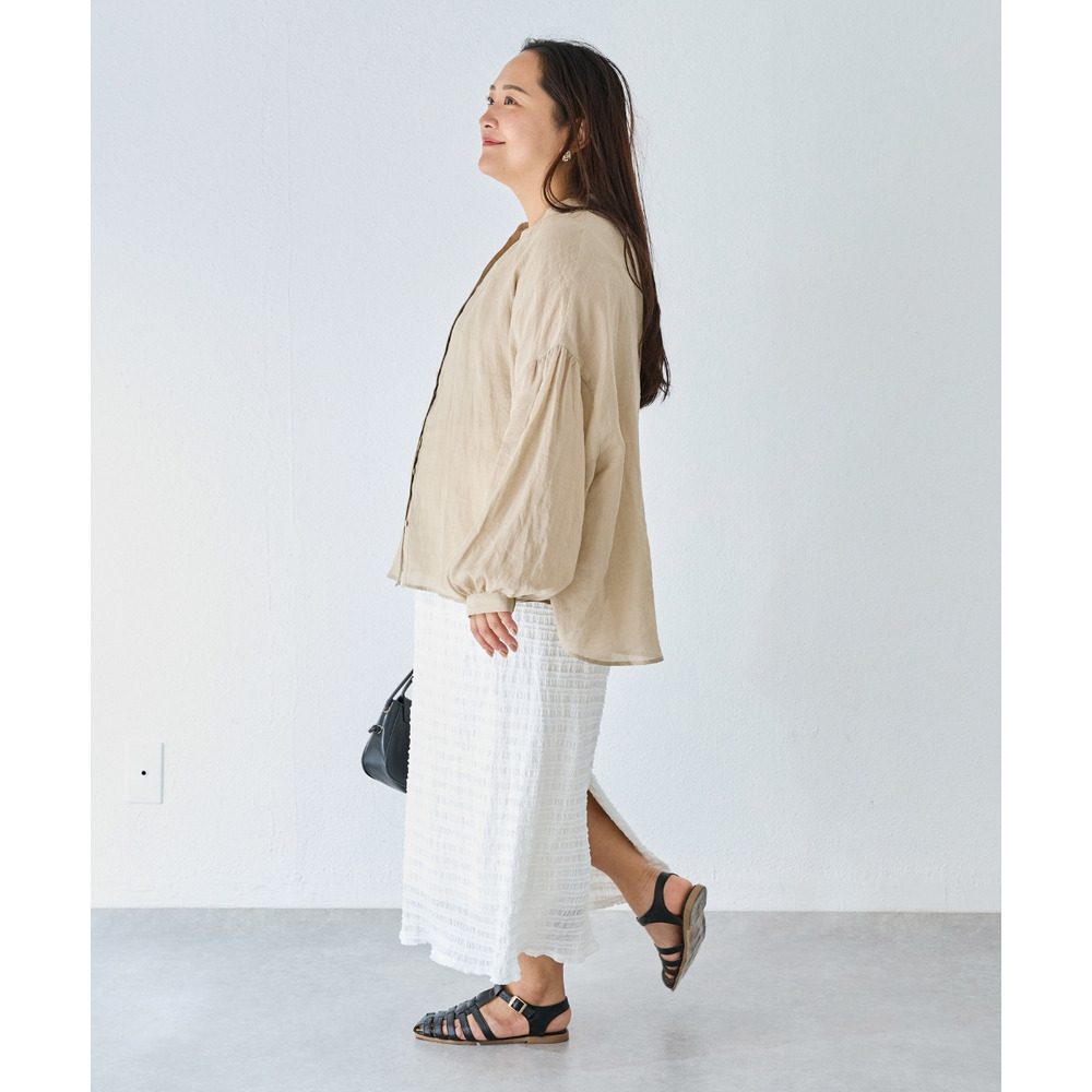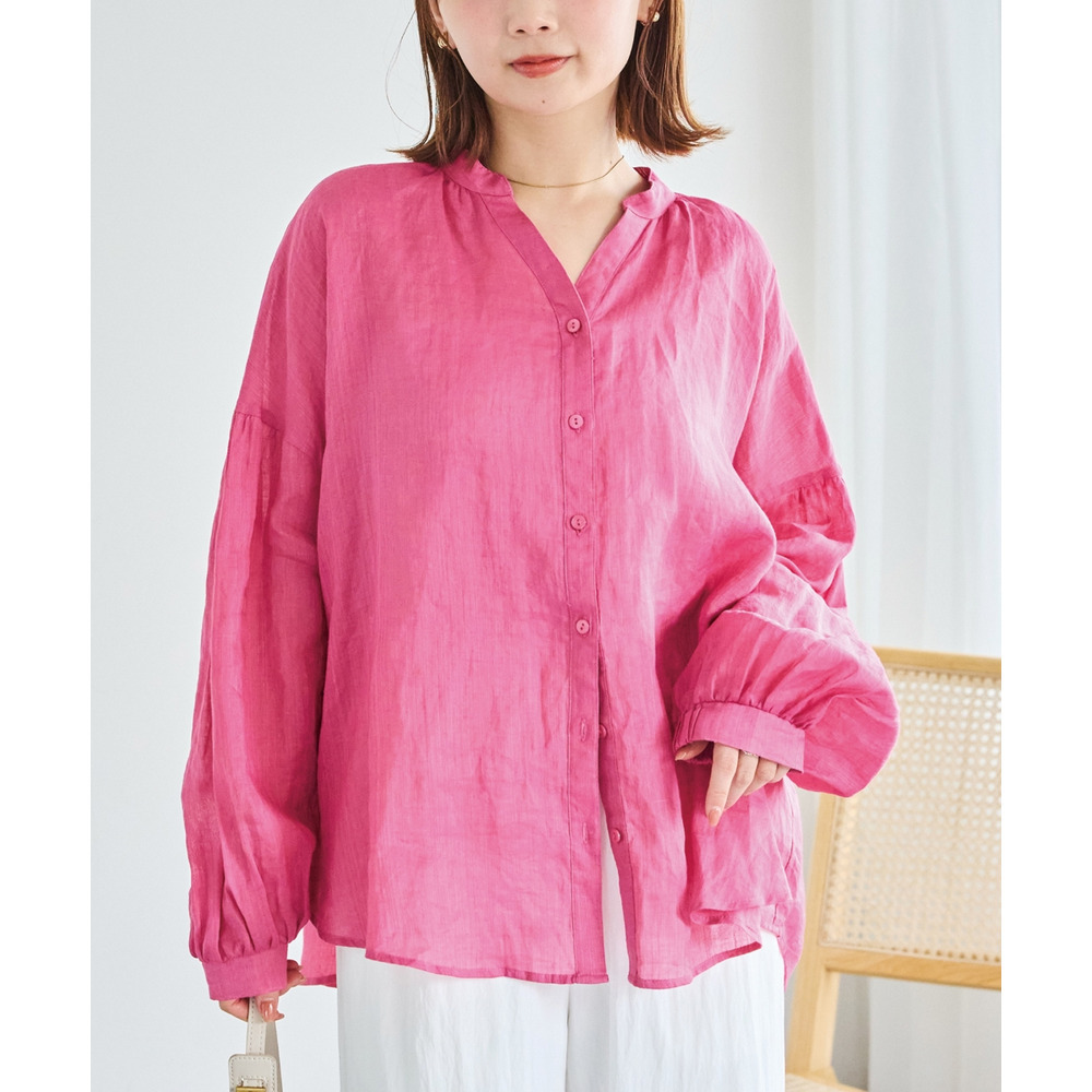 程よいシアー感が魅力の、ラミー100%素材の軽やかなブラウス。