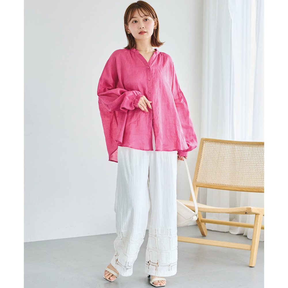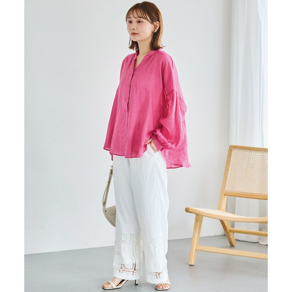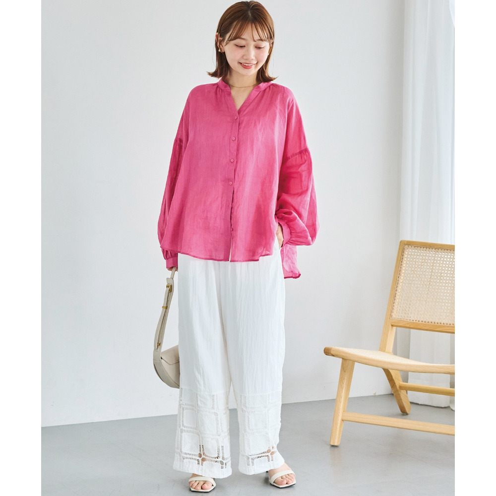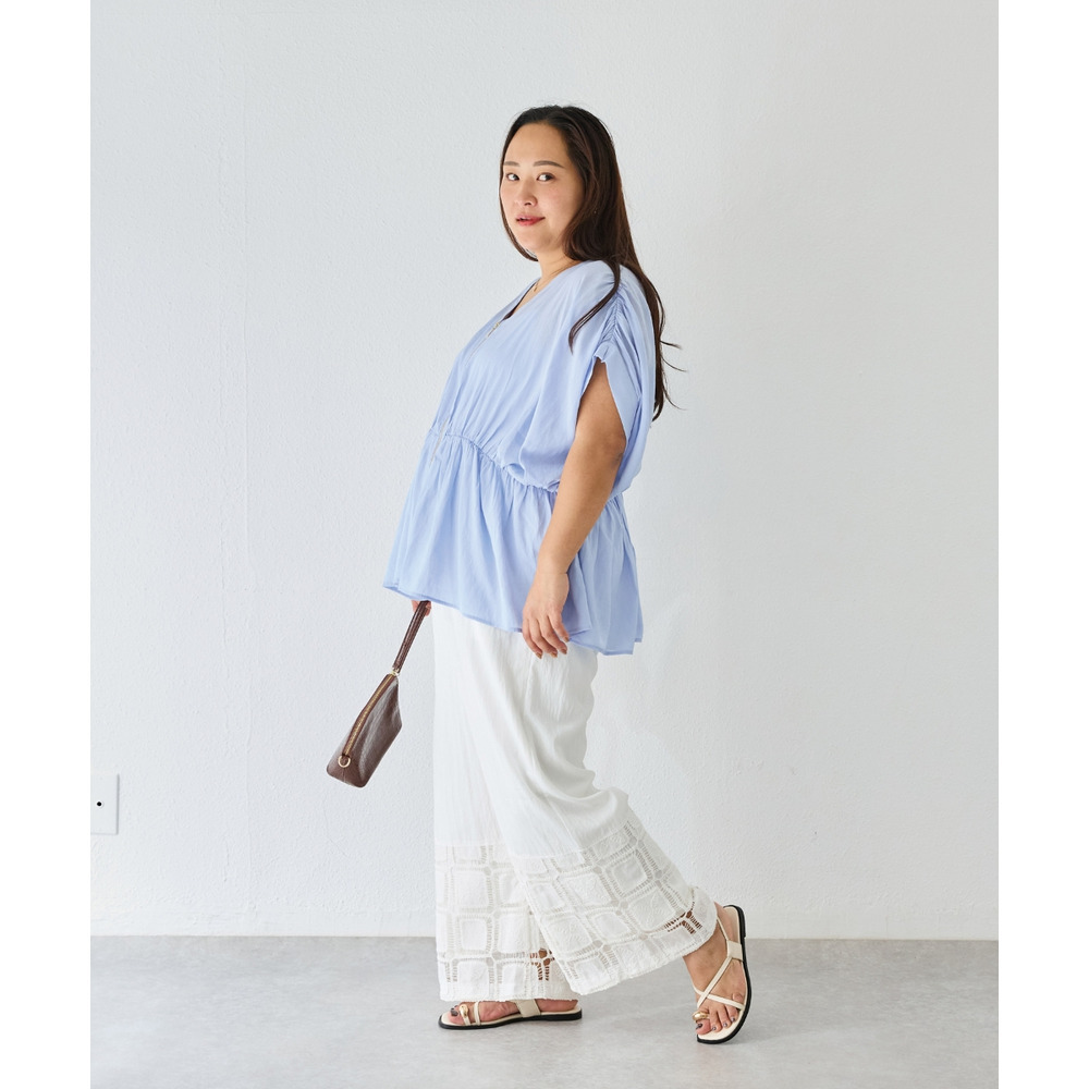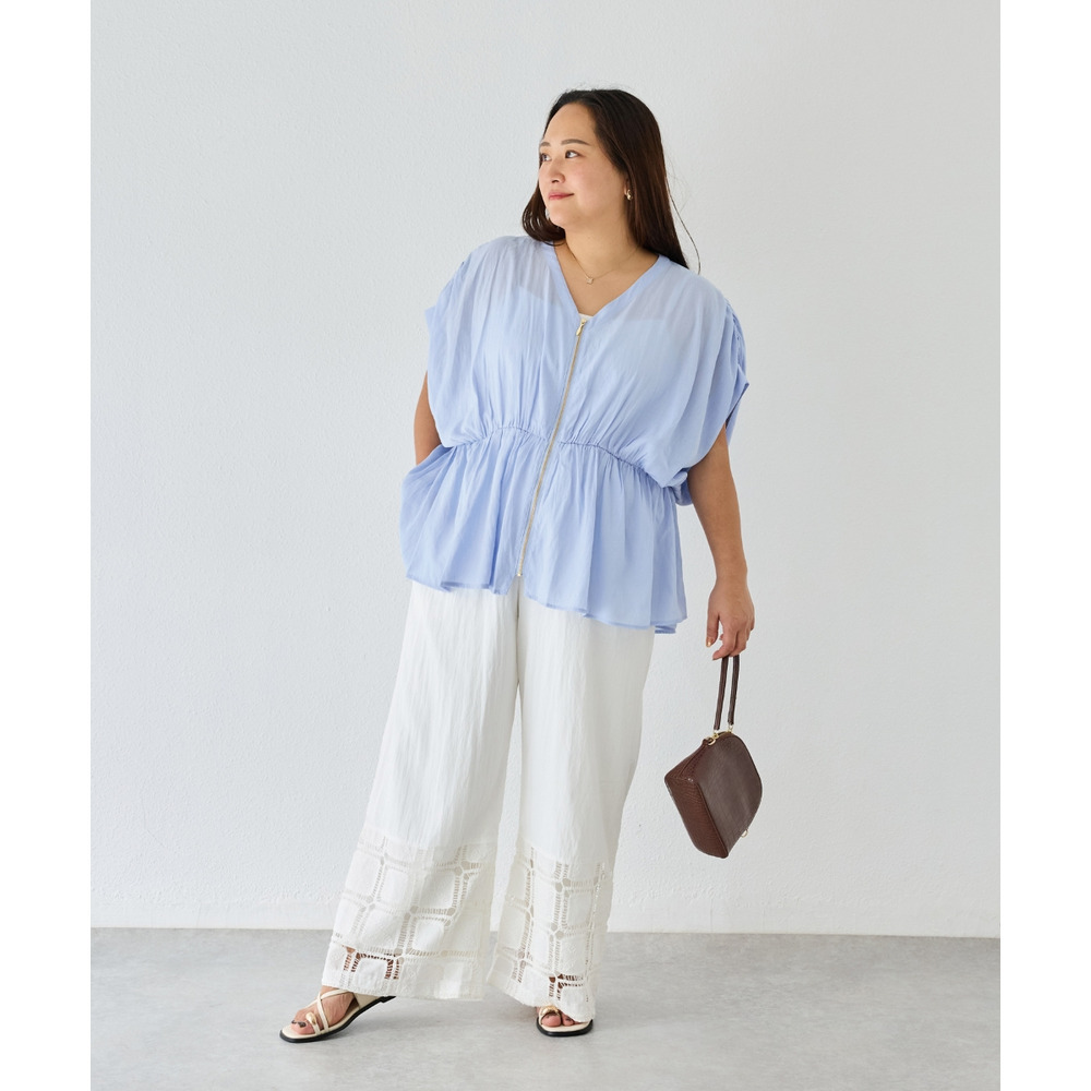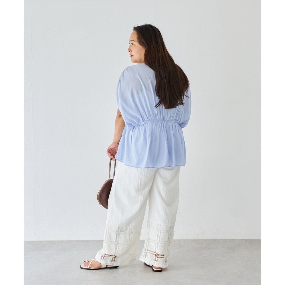 ひざ下には透かし編みのような立体感のあるレースをあしらい、軽やかで抜け感のある印象に仕上げました。