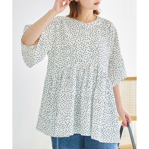 • 楊柳ドットチュニックブラウス LL/3L/4L/5L ラビアンジェ21