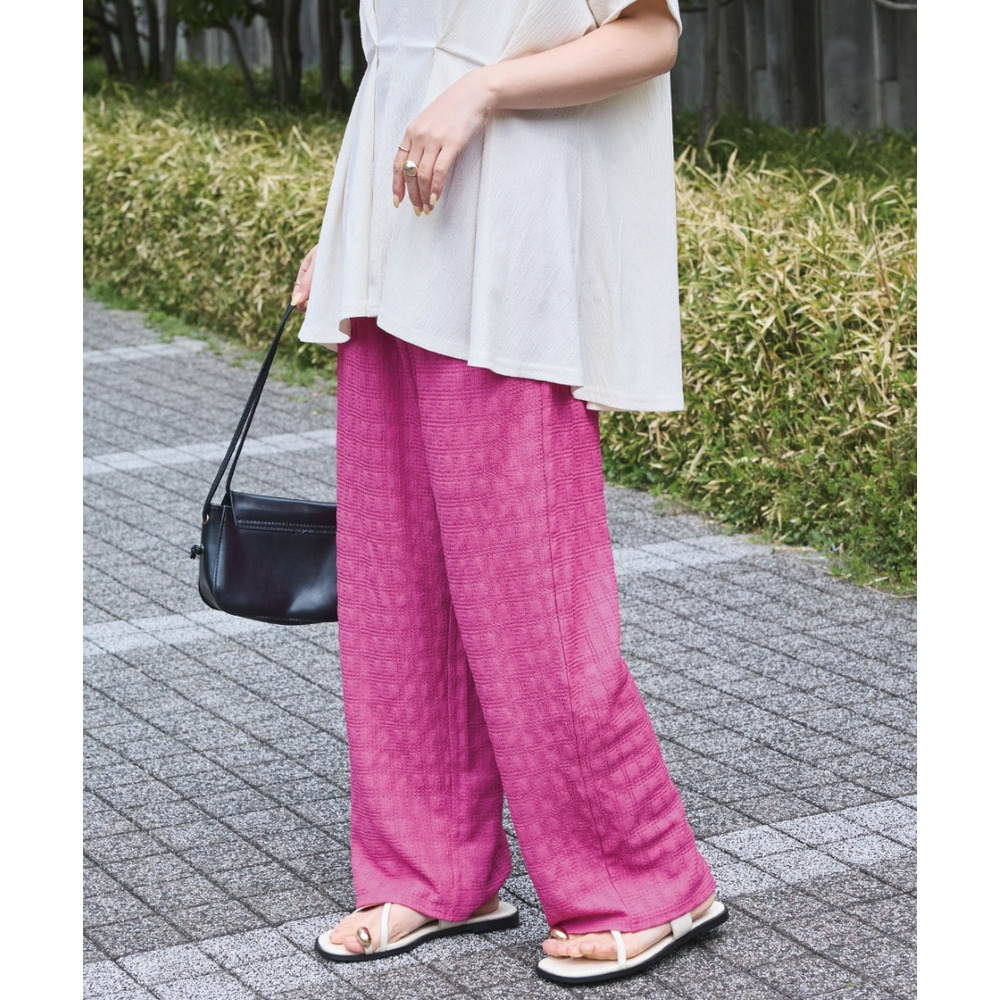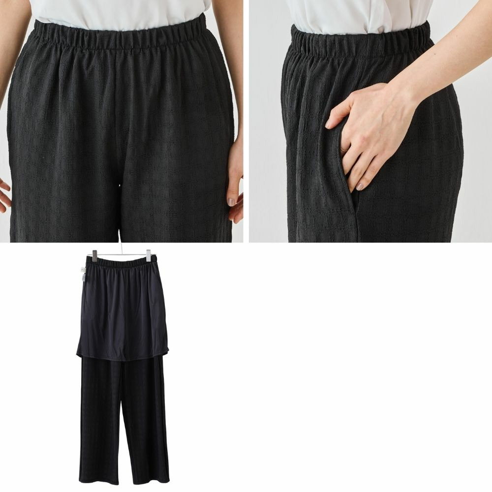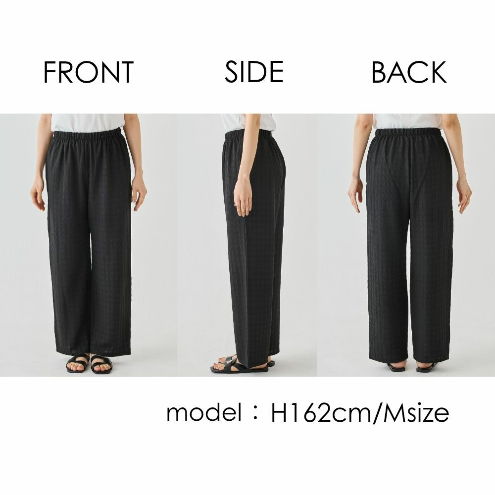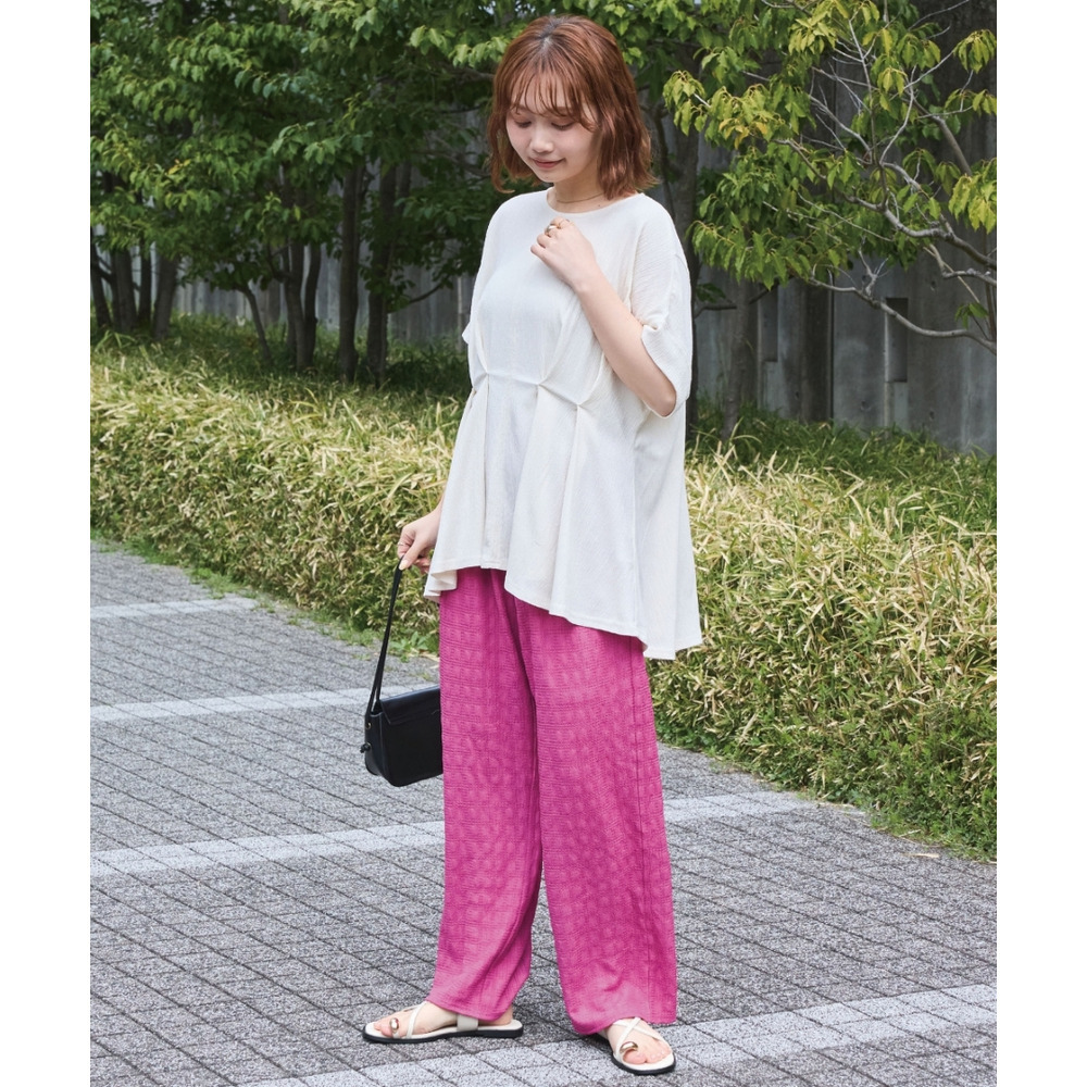 脚のラインを拾いにくく、リラックス感のある穿き心地が魅力です。