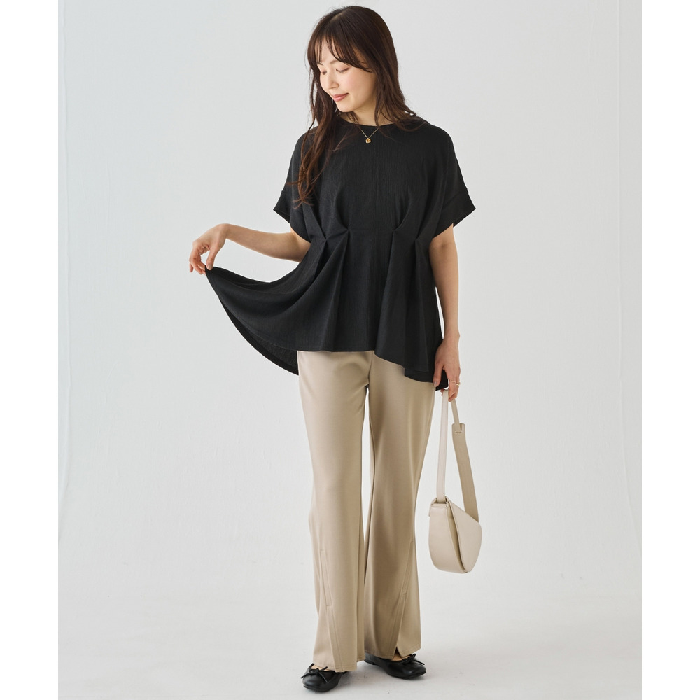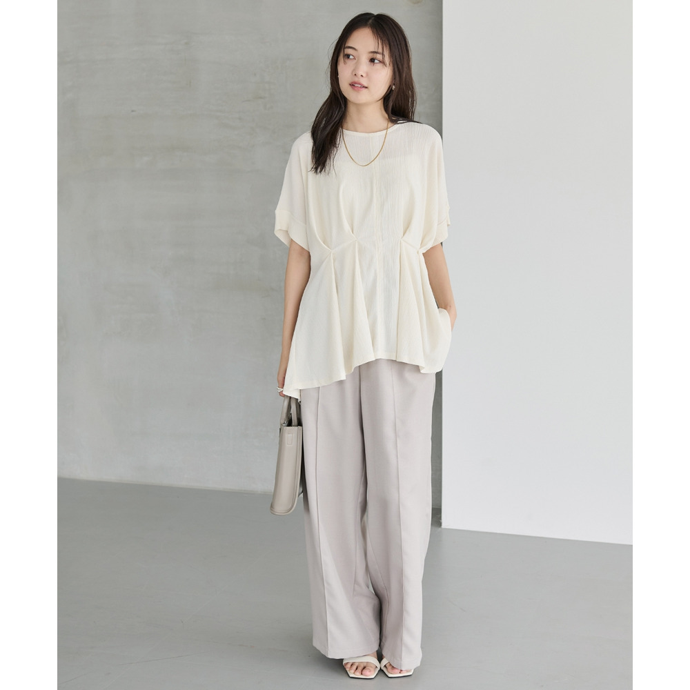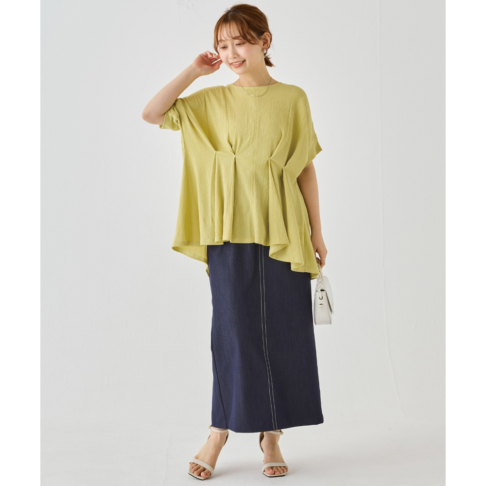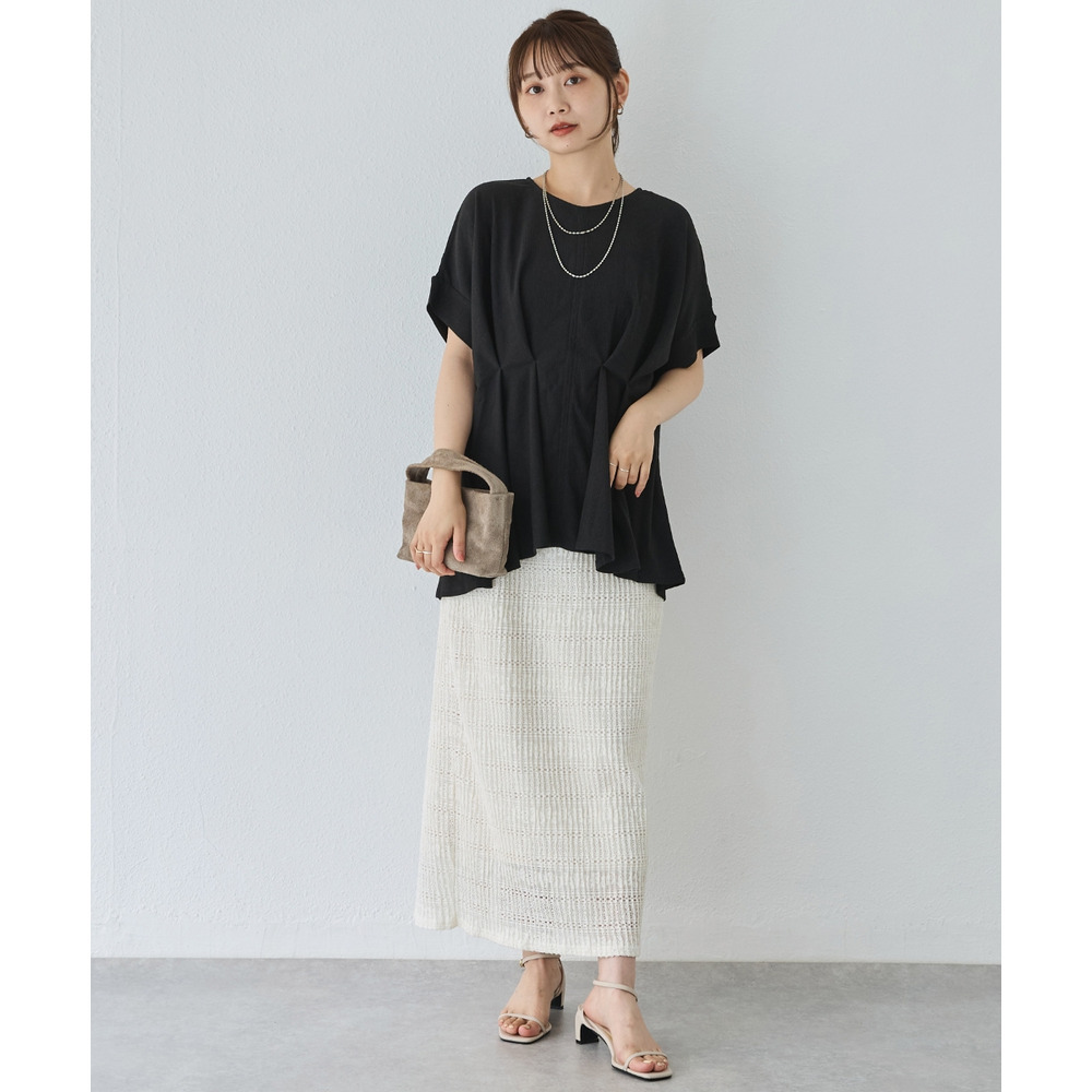 ウエストタックでスタイルアップ効果も期待できるシルエット。前後差のある着丈デザインでこなれ感を演出しました。