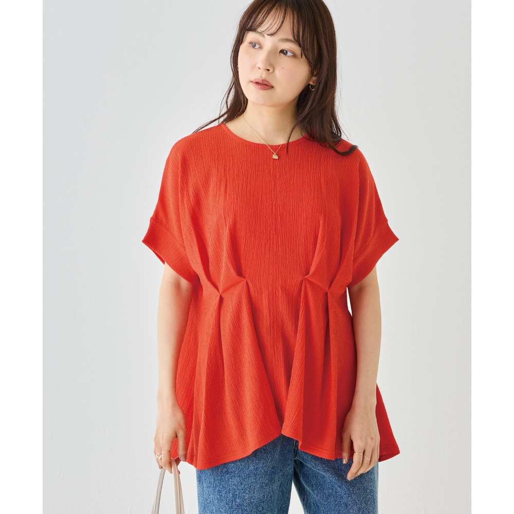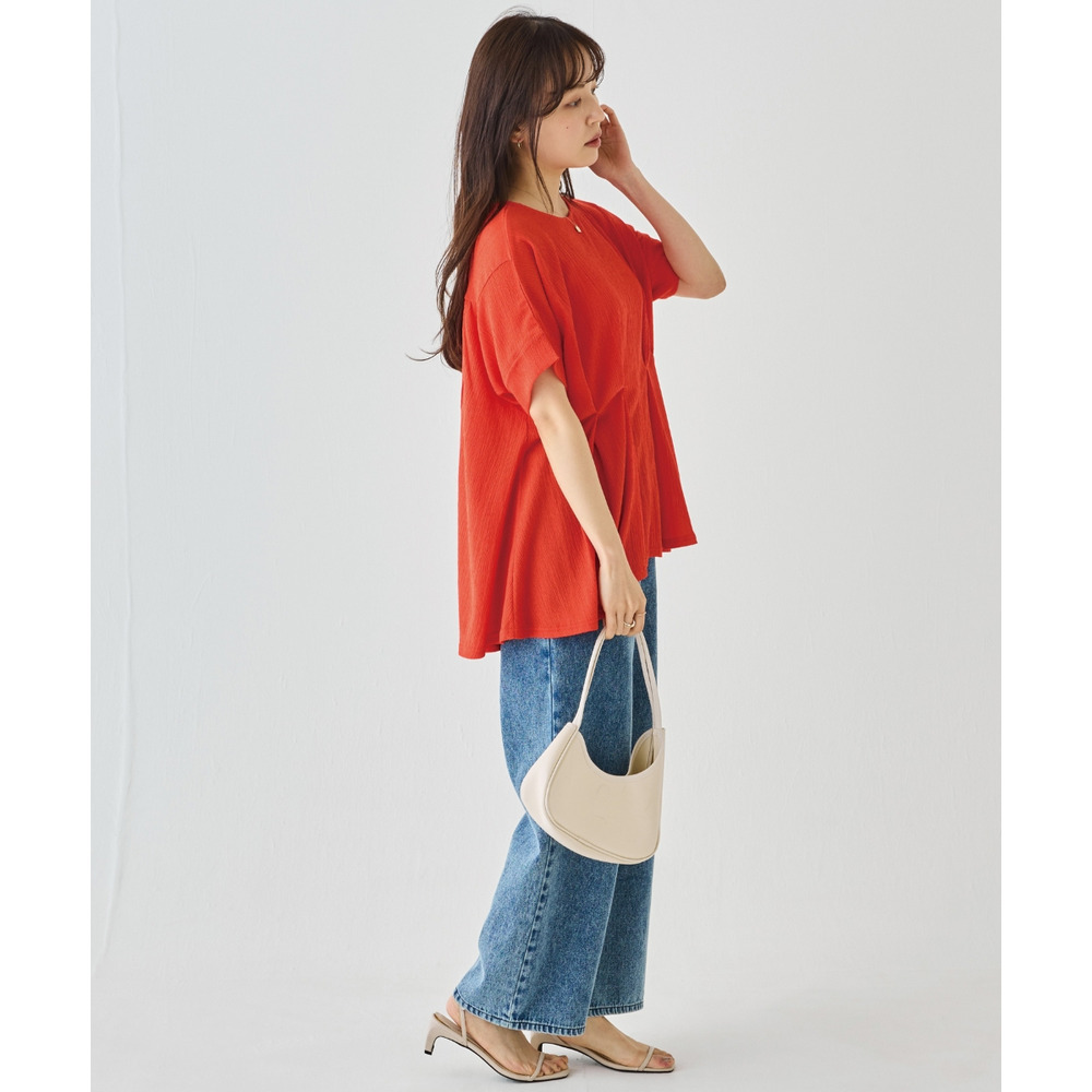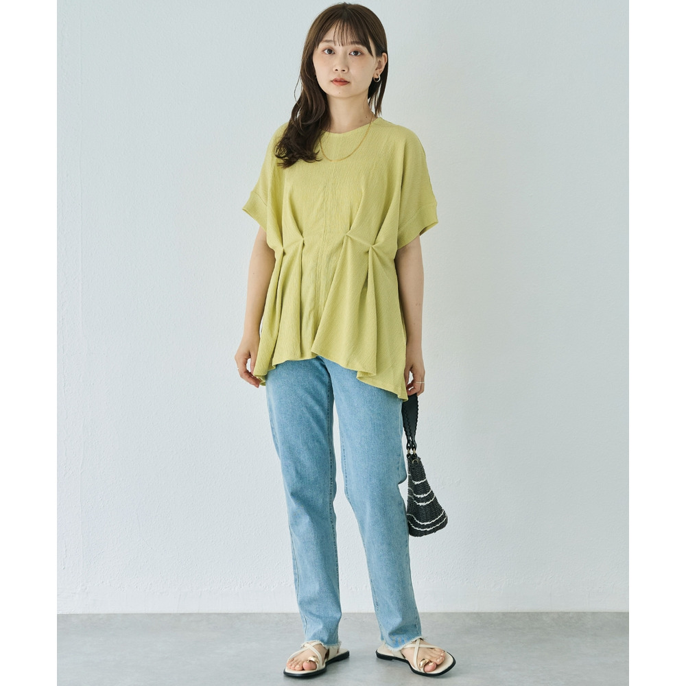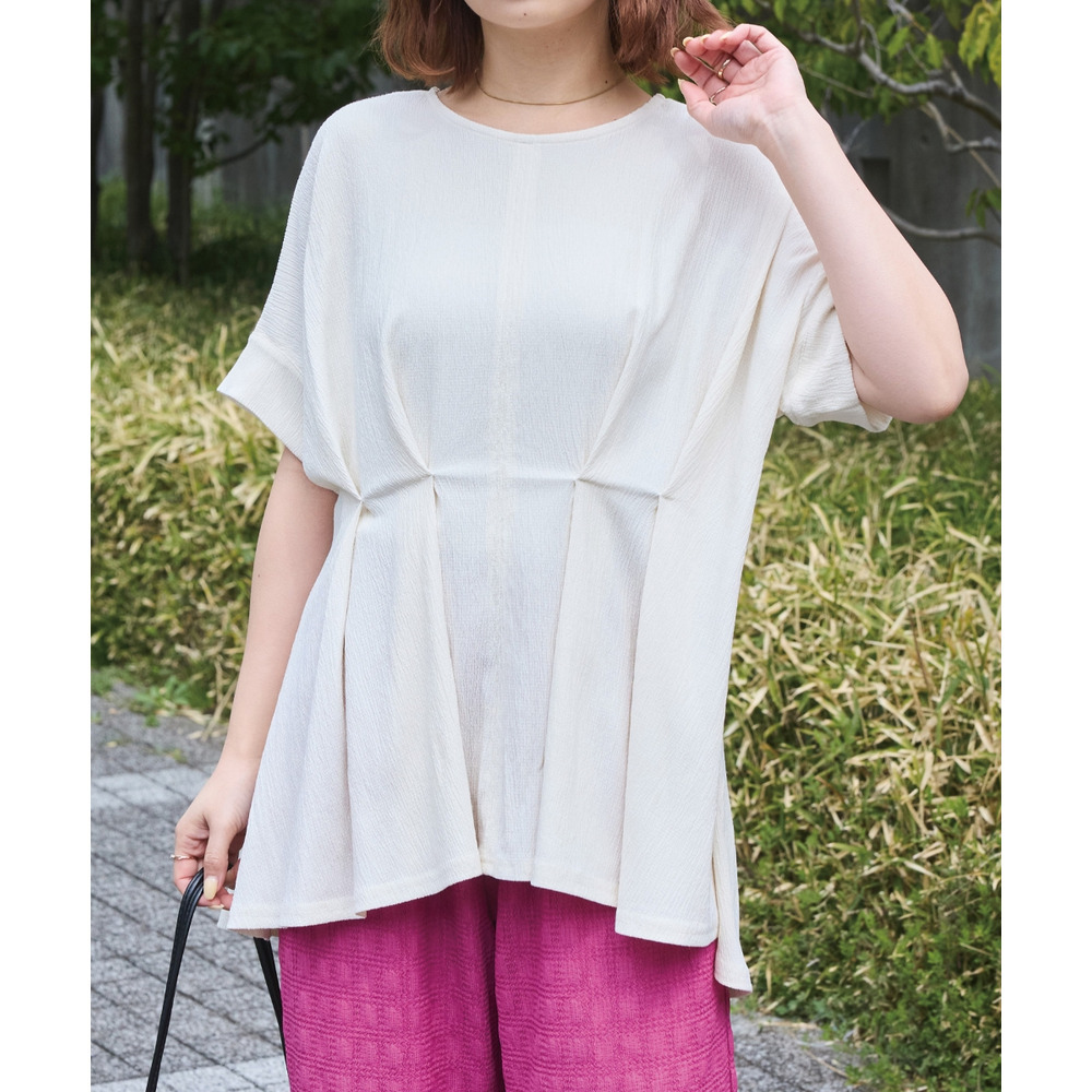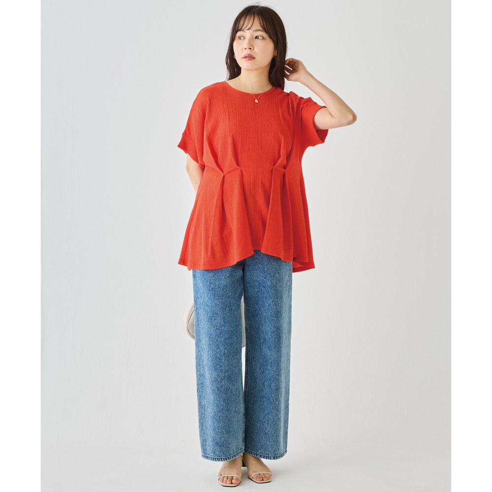 ウエストタックでスタイルアップ効果も期待できるシルエット。前後差のある着丈デザインでこなれ感を演出しました。