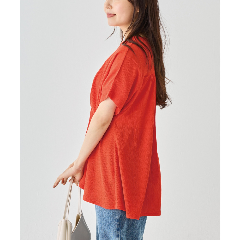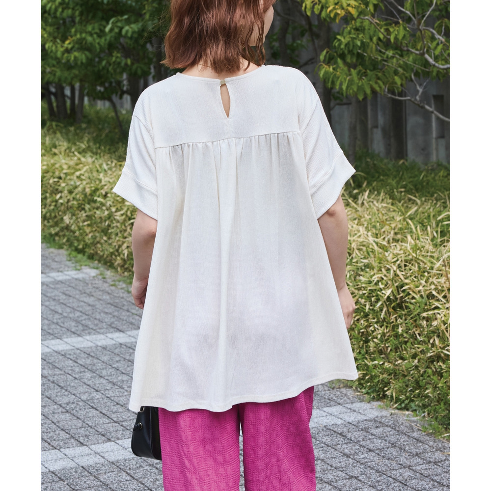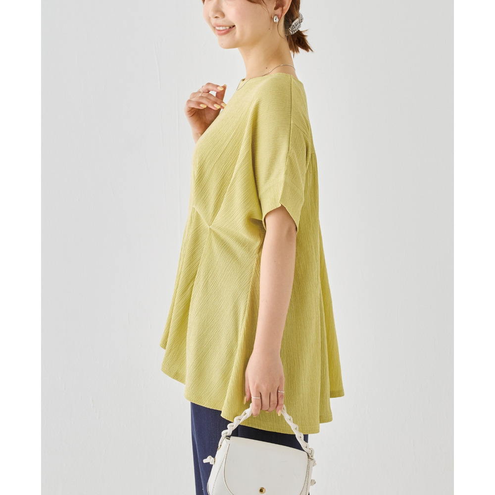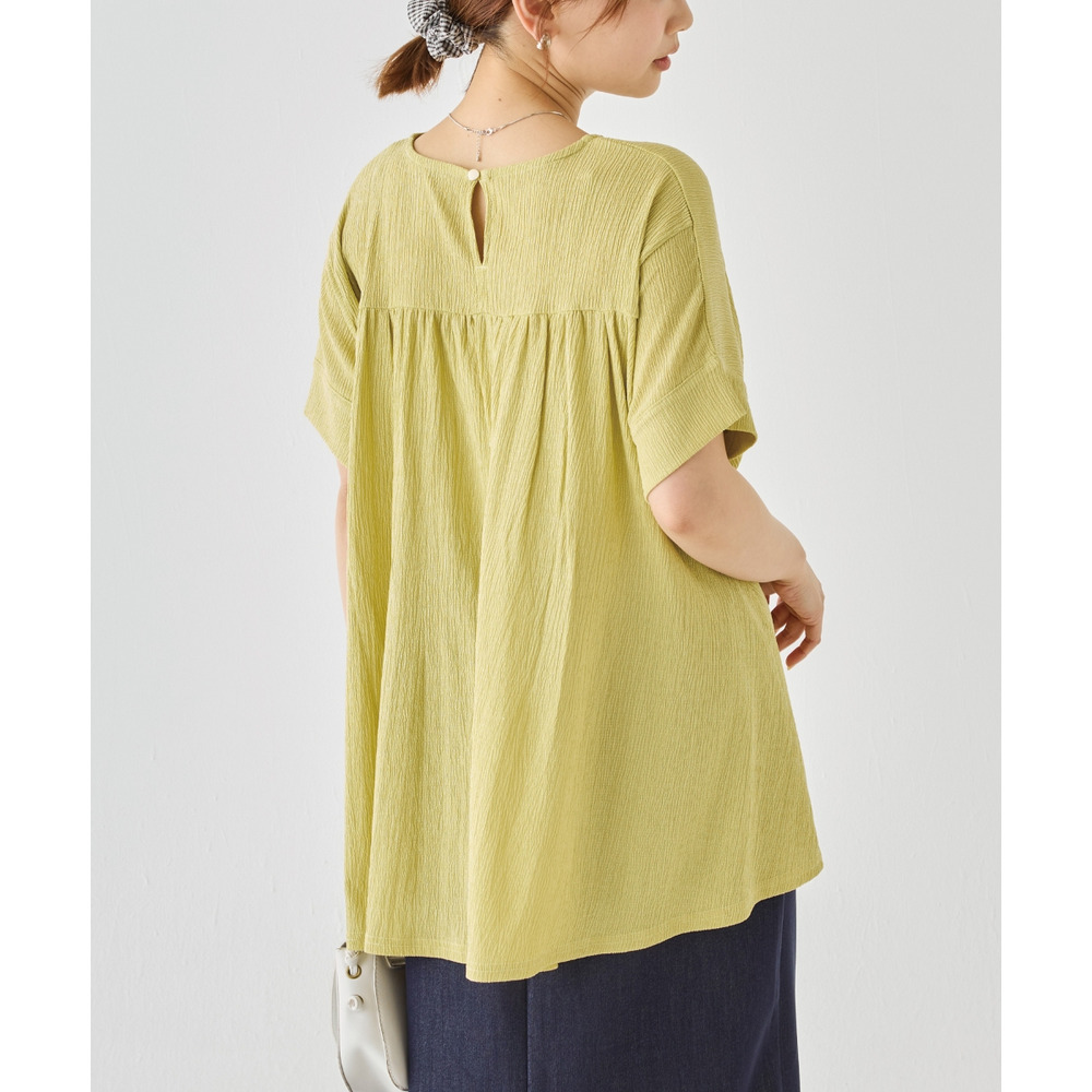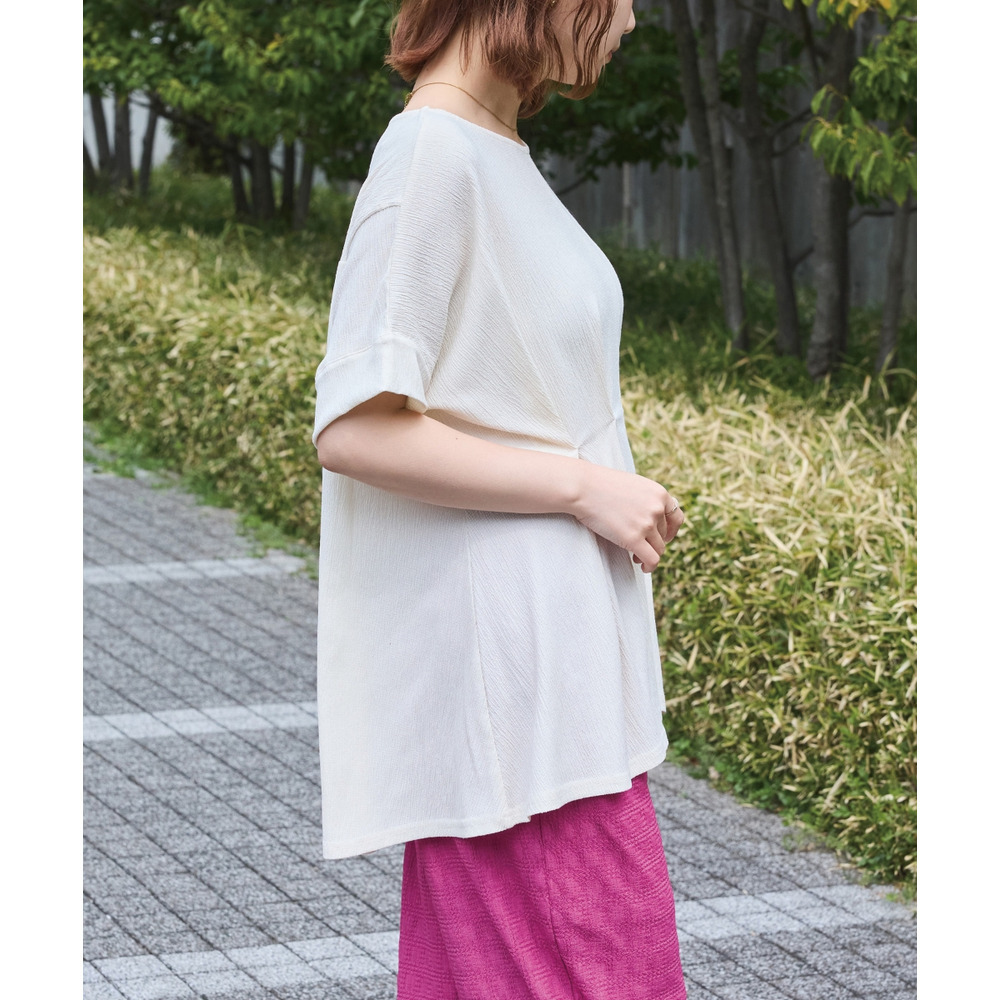 シーズンムードを高める涼し気な楊柳生地で仕上げたカットソーブラウス。