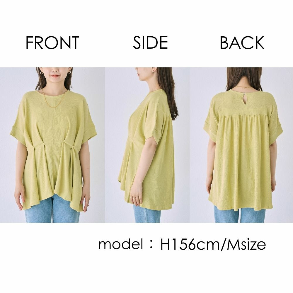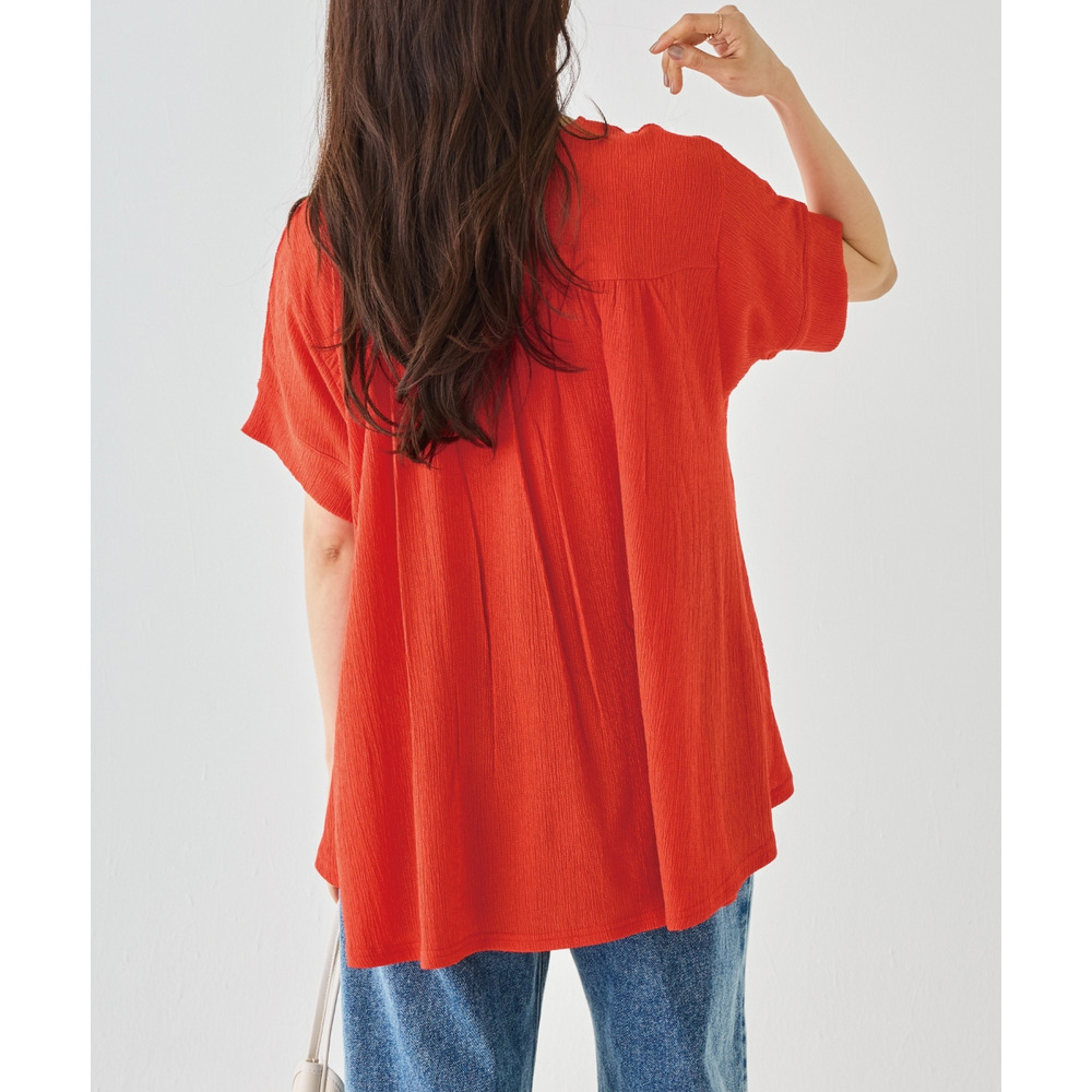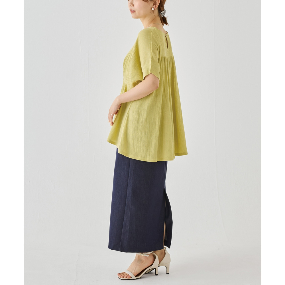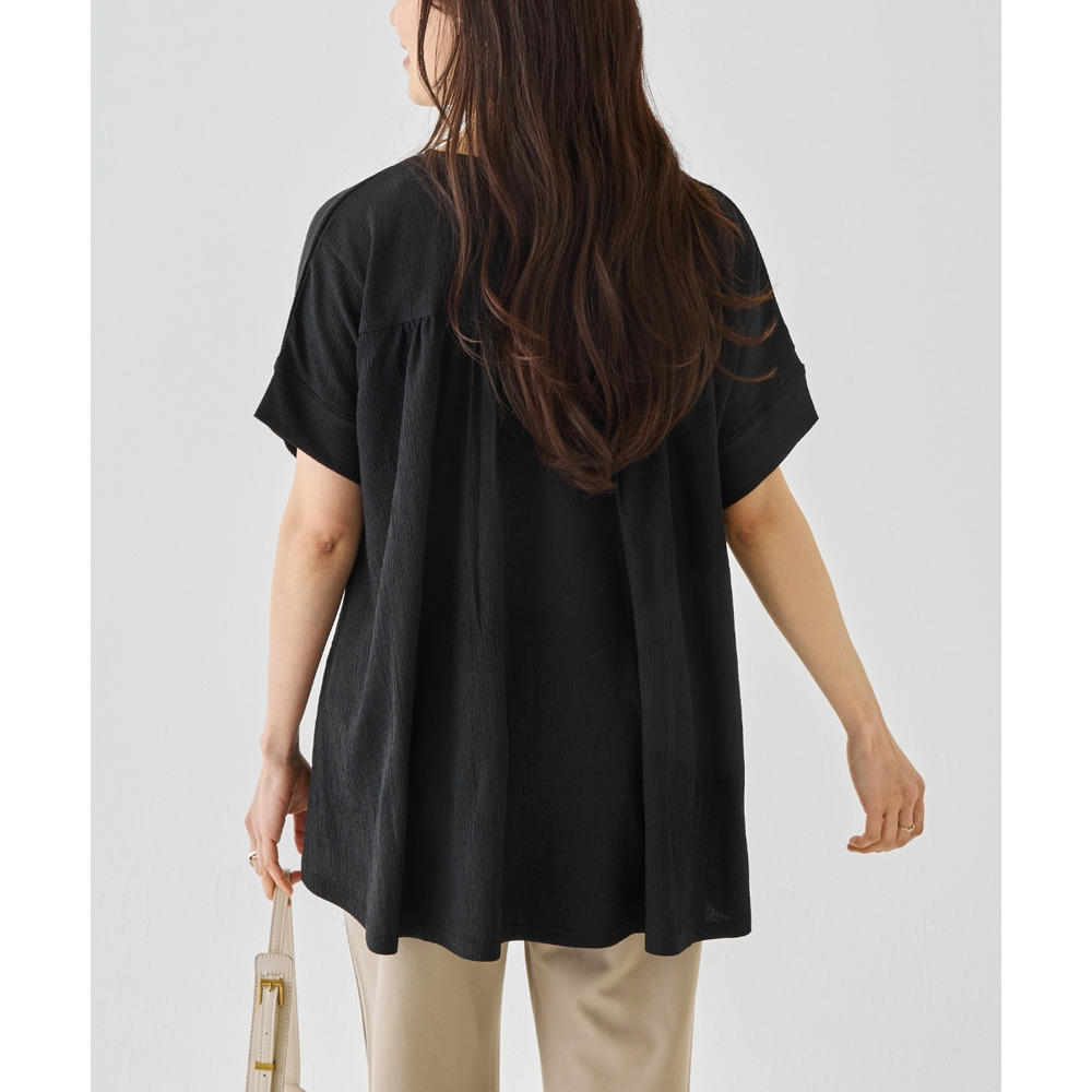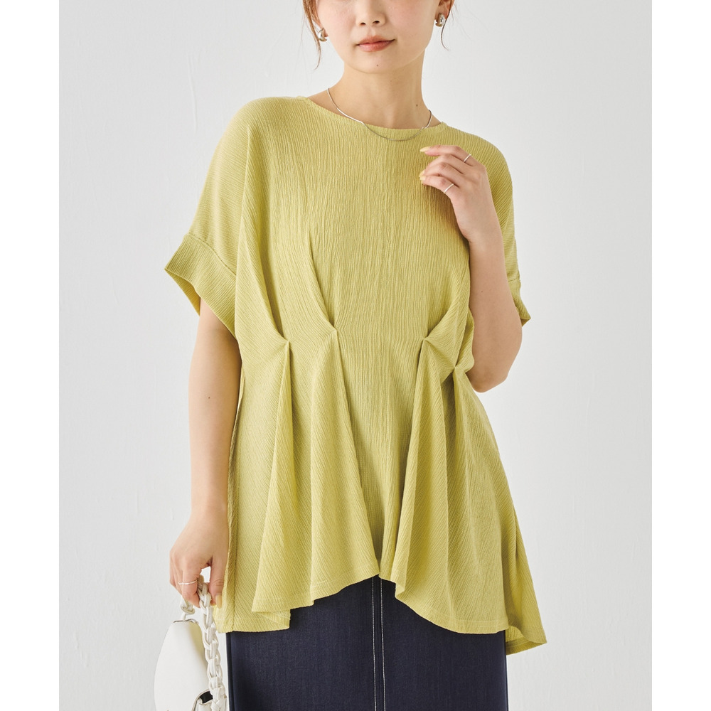 シーズンムードを高める涼し気な楊柳生地で仕上げたカットソーブラウス。