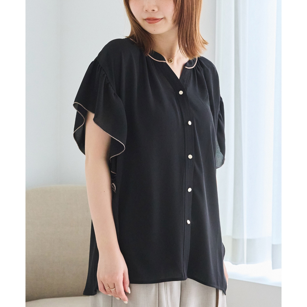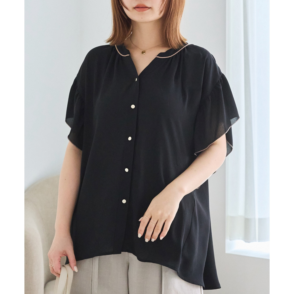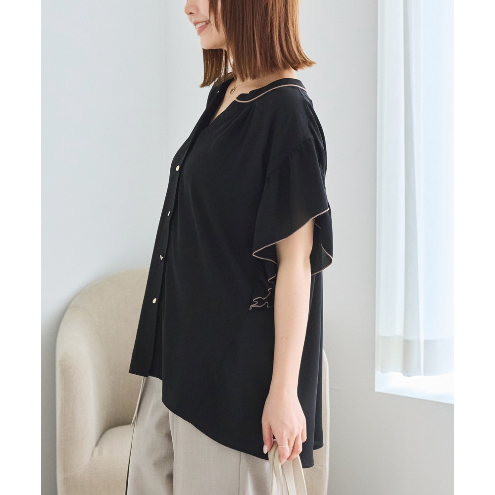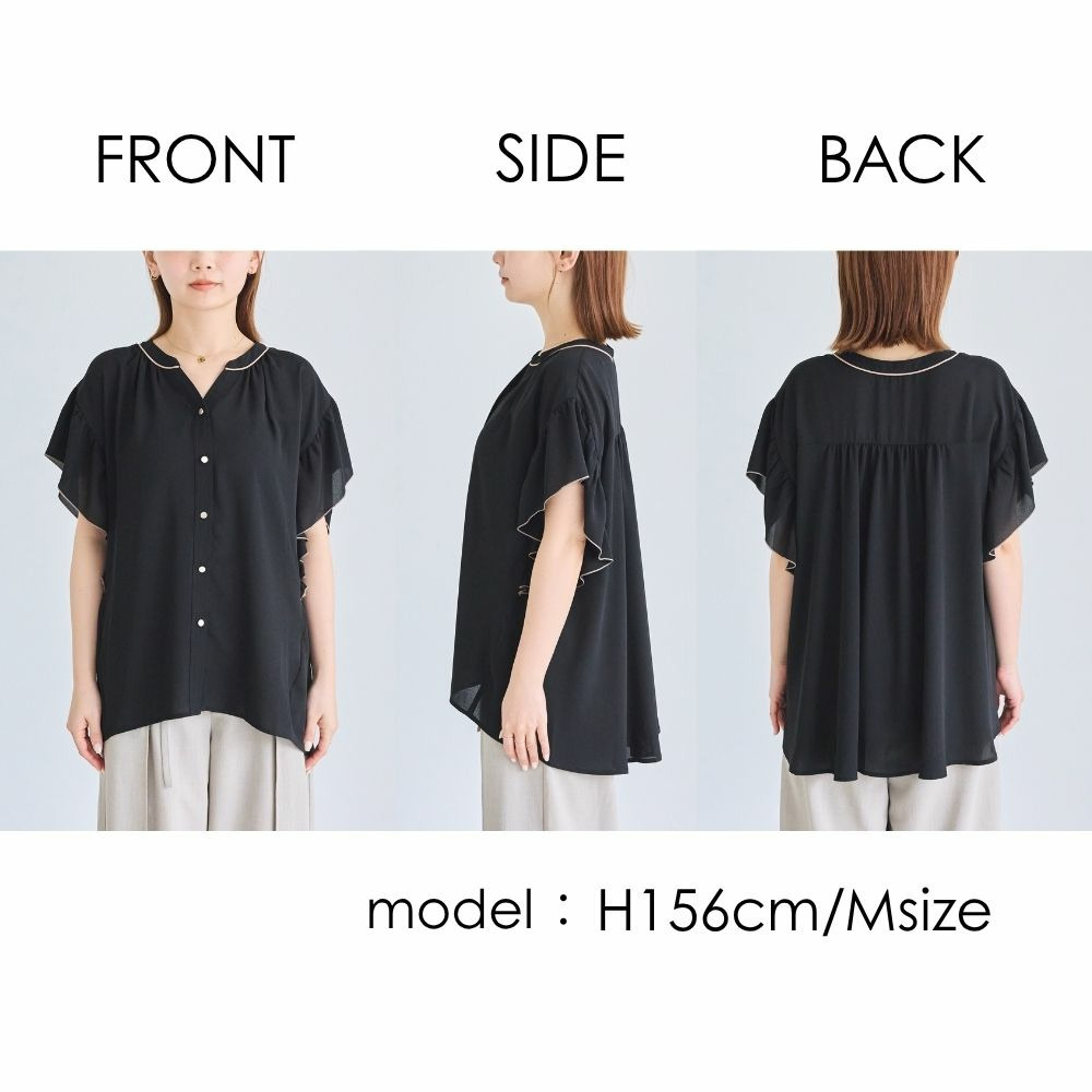 前後差のある着丈と、脇線を前に振った設計で、気になるラインをカバーしつつすっきり細見えを実現。袖は切り替え入りのフレアデザインで、動くたびに軽やかなニュアンスをプラスします。
