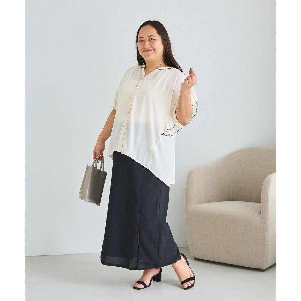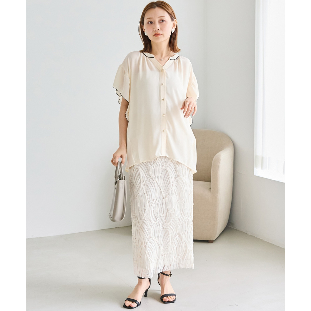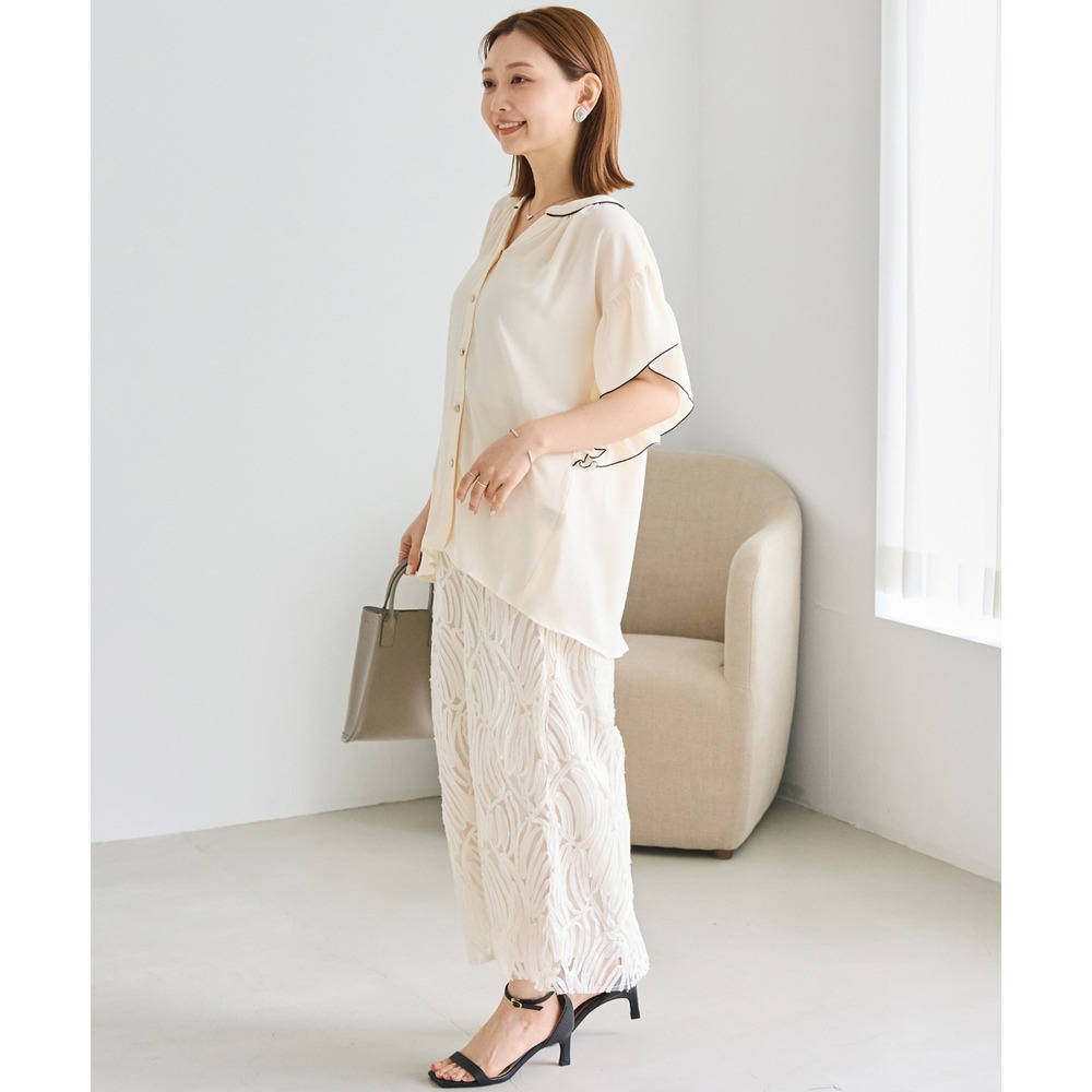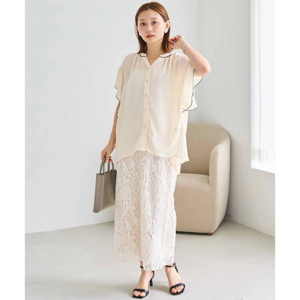 きれいめパンツやワイドパンツと合わせて、上品で抜け感のあるスタイリングに。タイトスカートやレーススカートと合わせれば、女性らしい着こなしも楽しめます。オンオフ問わず活躍する一枚です。