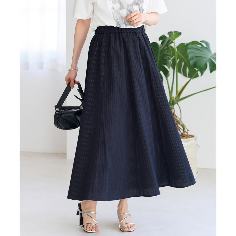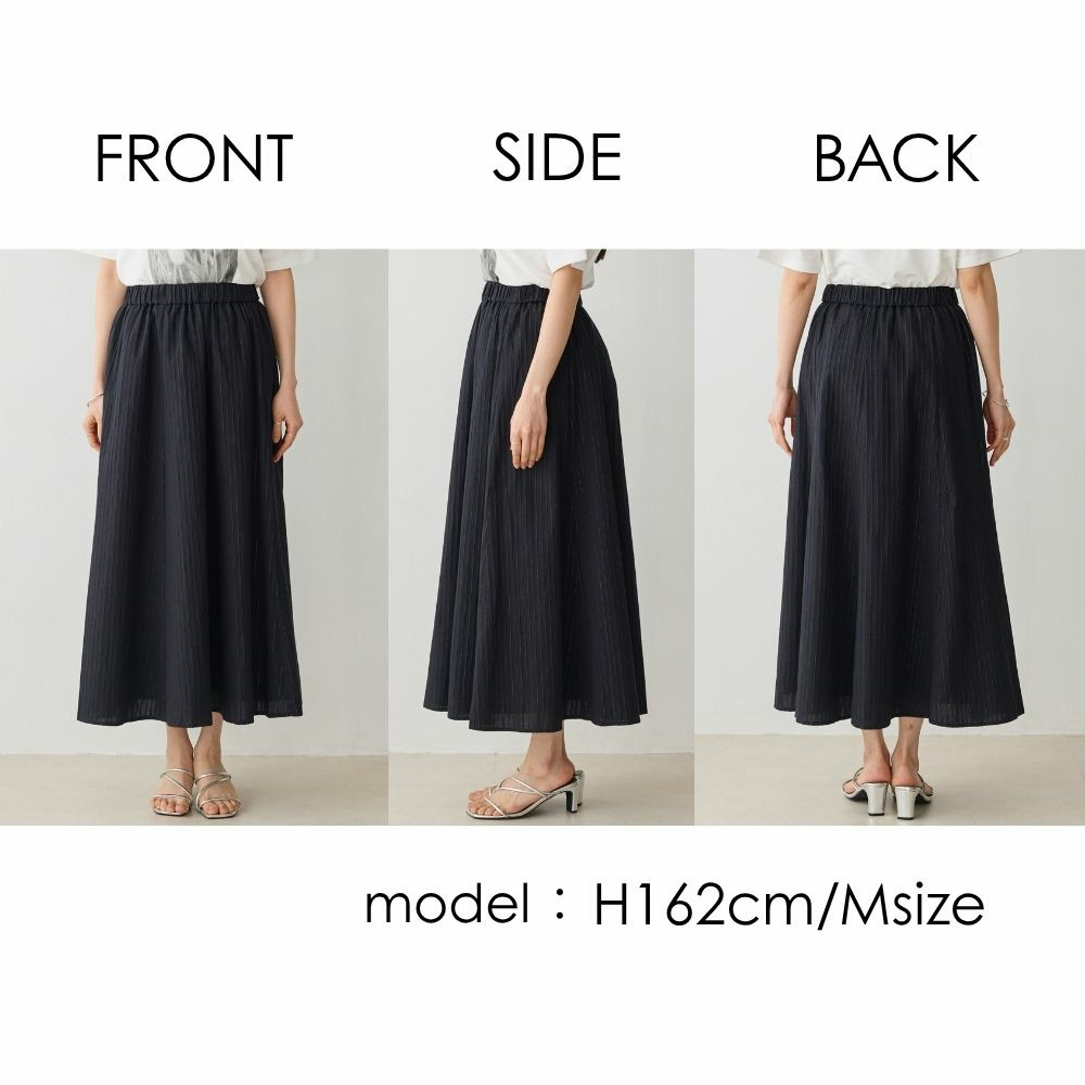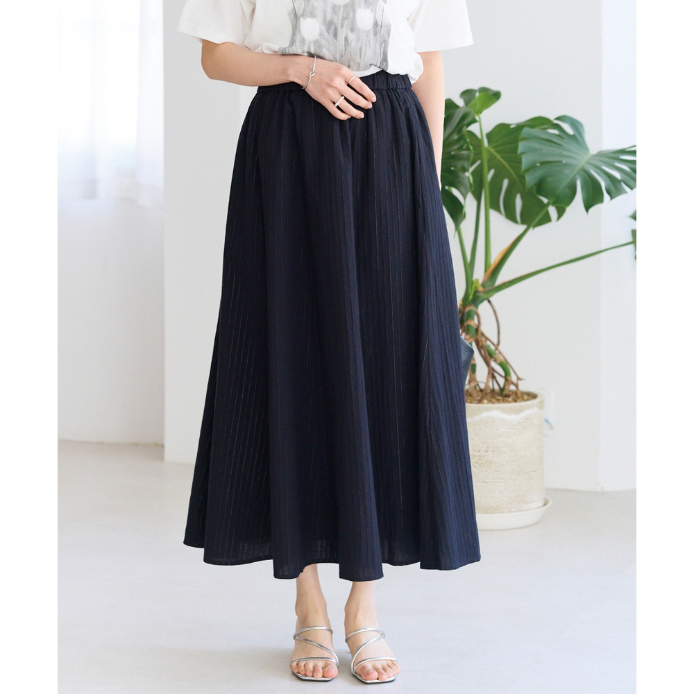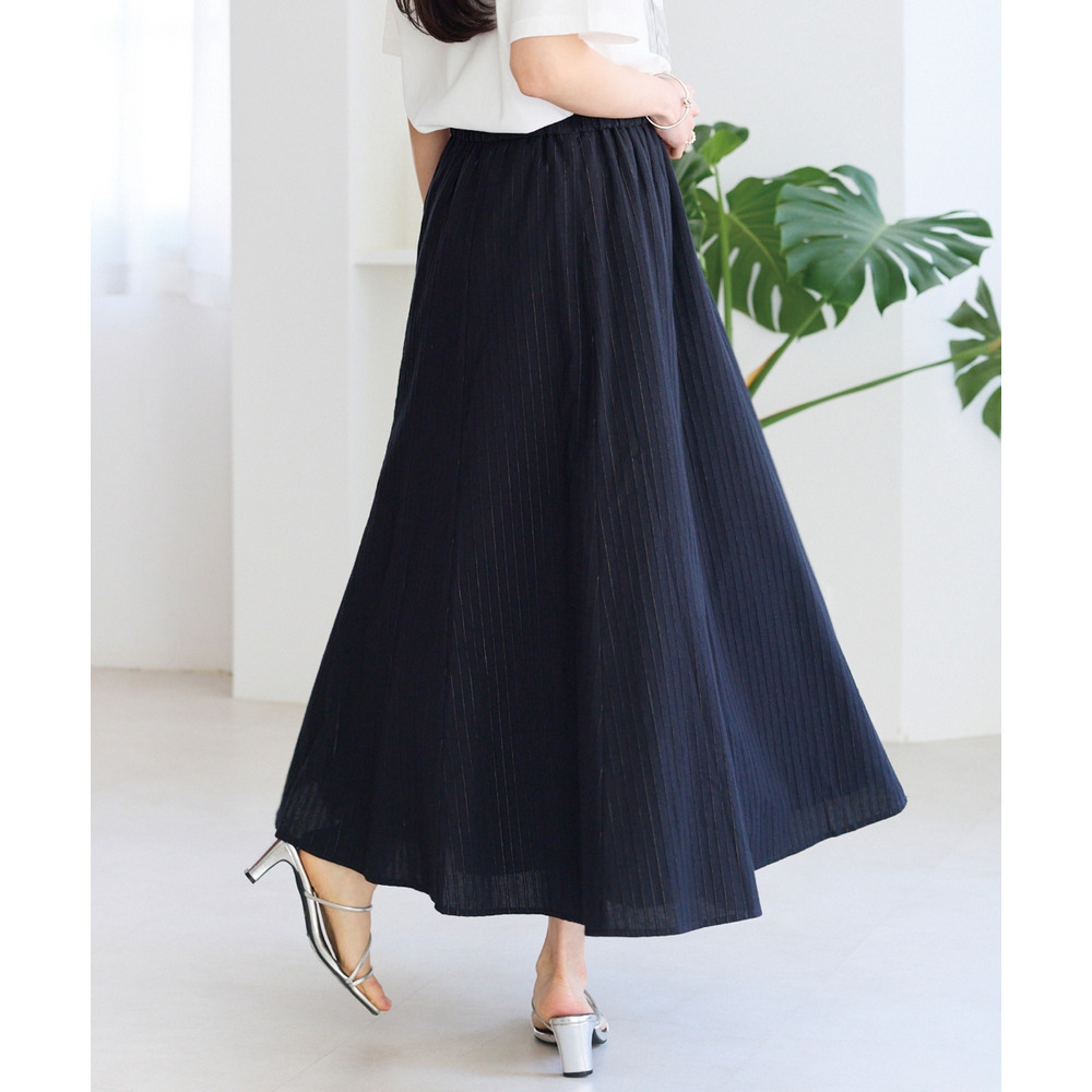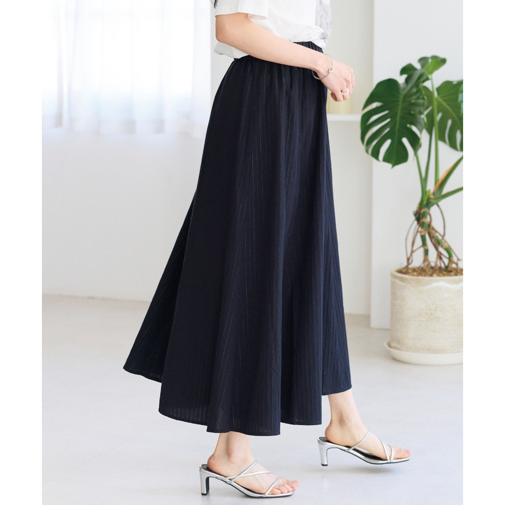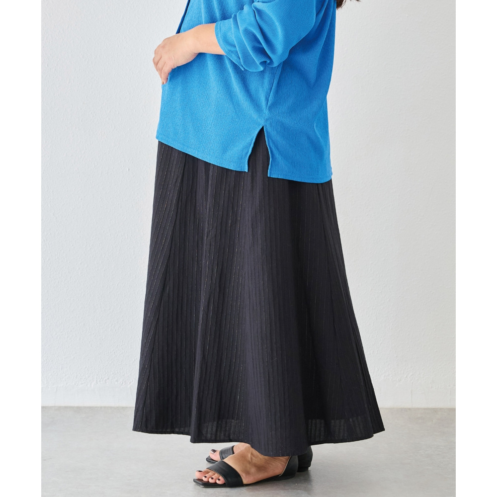 繊細なラメ糸を織り込んだストライプが上品に映えるフレアスカート。