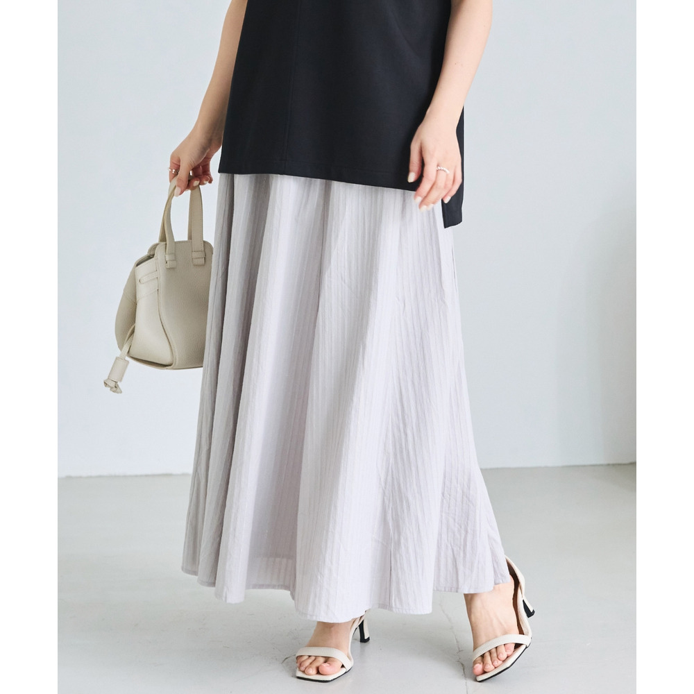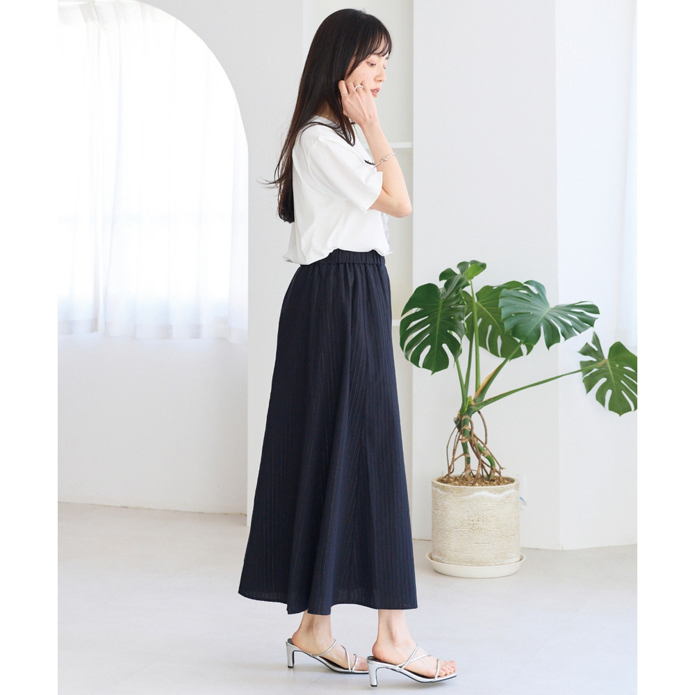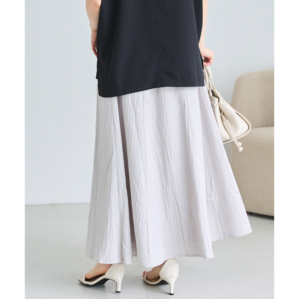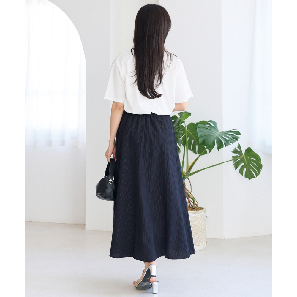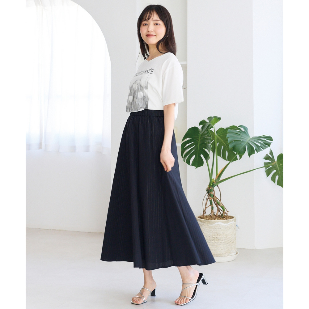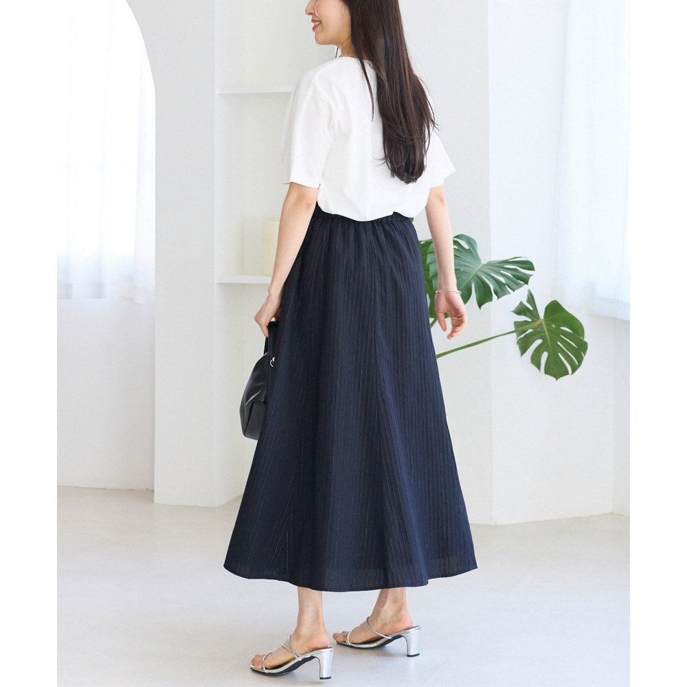 繊細なラメ糸を織り込んだストライプが上品に映えるフレアスカート。