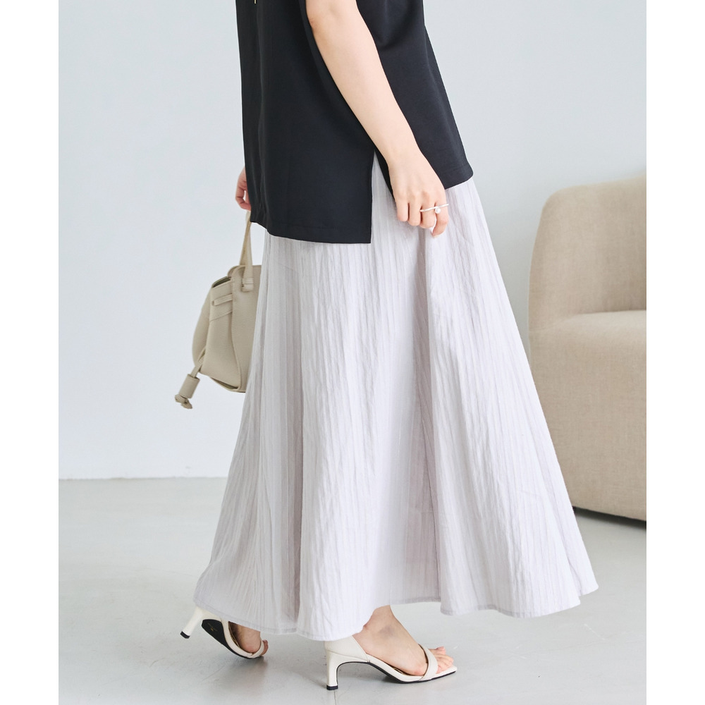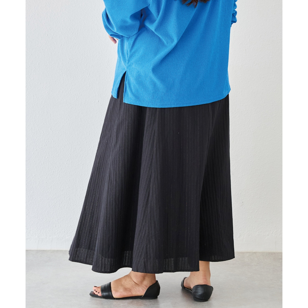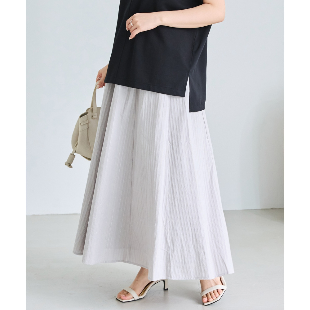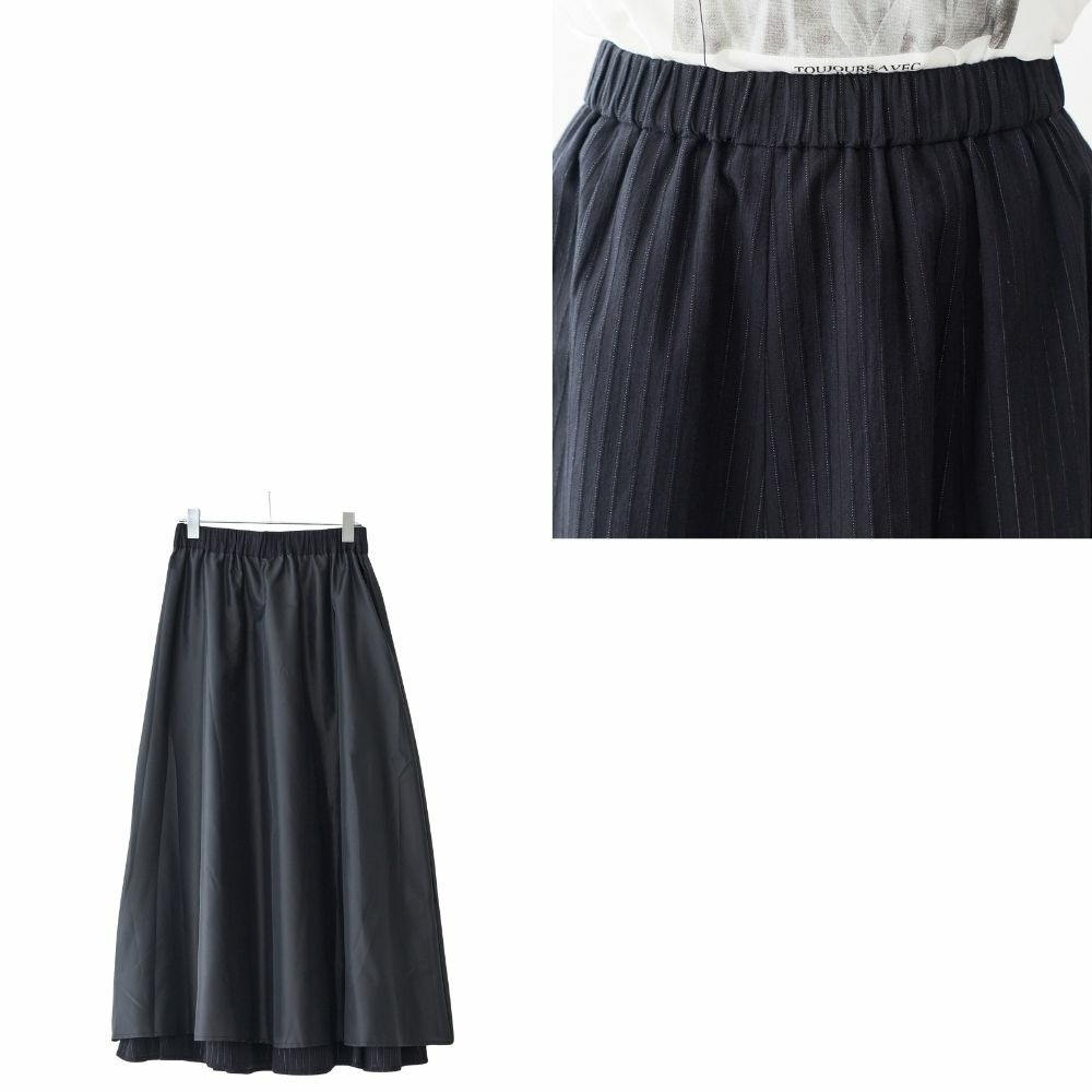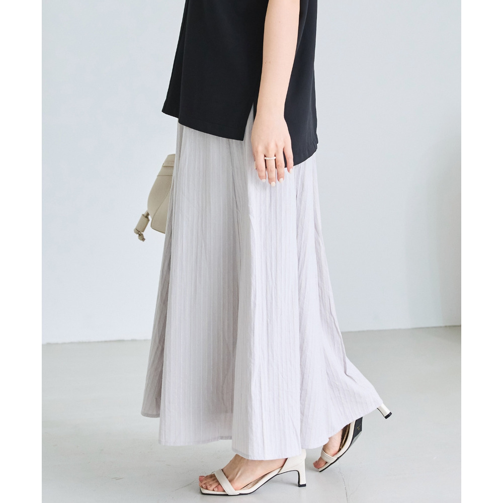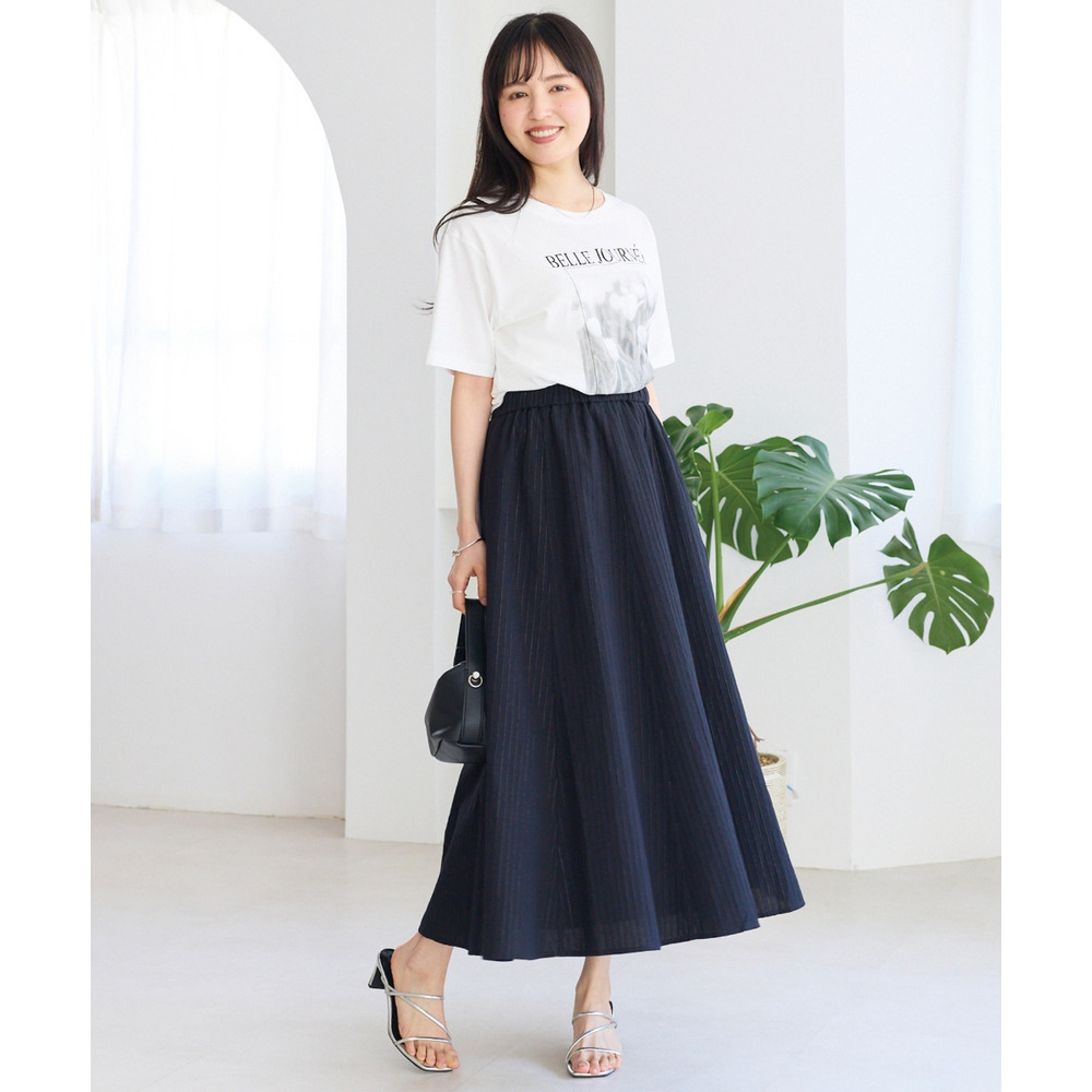 繊細なラメ糸を織り込んだストライプが上品に映えるフレアスカート。