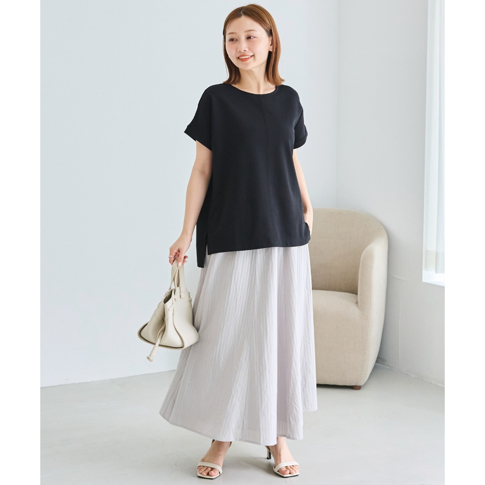 ウエストは総ゴム仕様で、ストレスフリーな着心地とすっきり見えを両立。