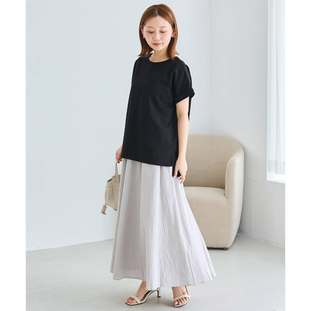 Tシャツやカットソーと合わせたカジュアルスタイルはもちろん、ブラウスやコンパクトトップスと合わせればきれいめな着こなしにも◎