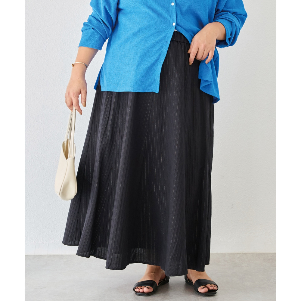 ラメストライプフレアスカート LL/3L/4L ラビアンジェ