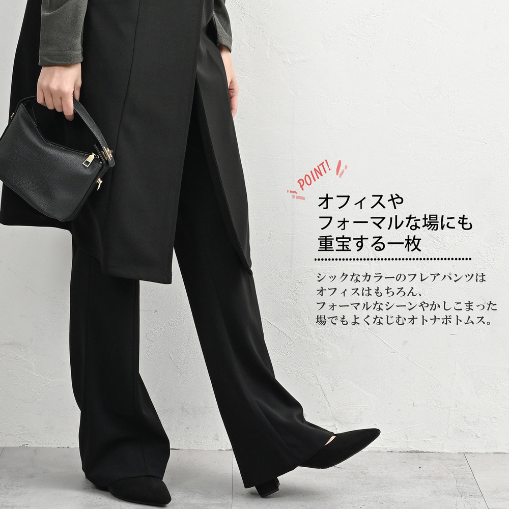 フォーマルの場でも活躍する美シルエットフレアパンツ