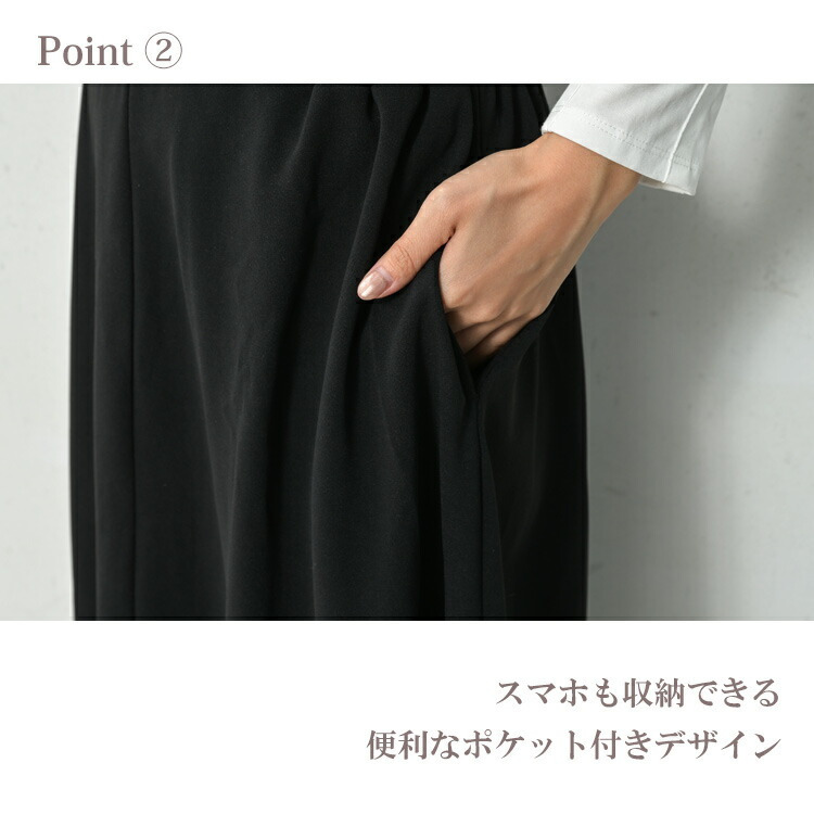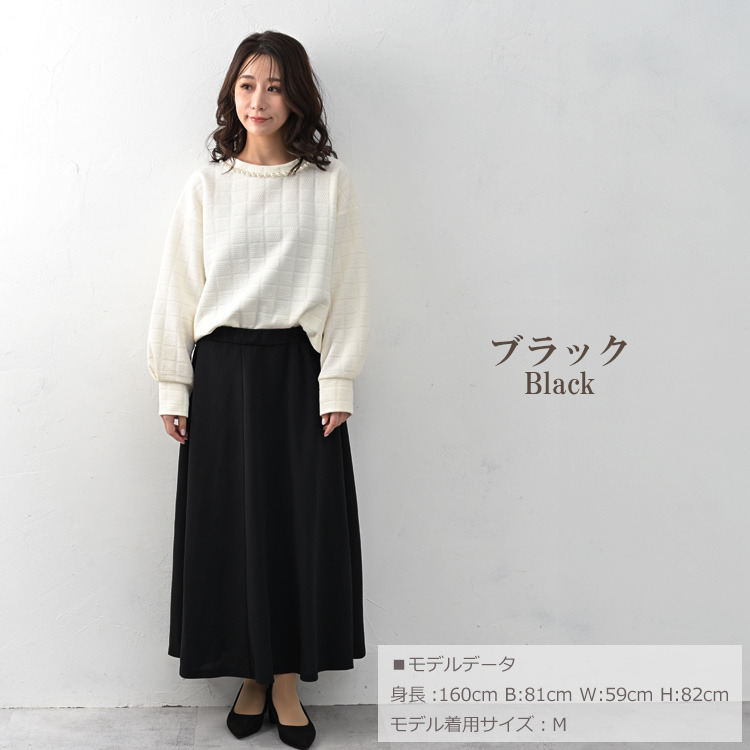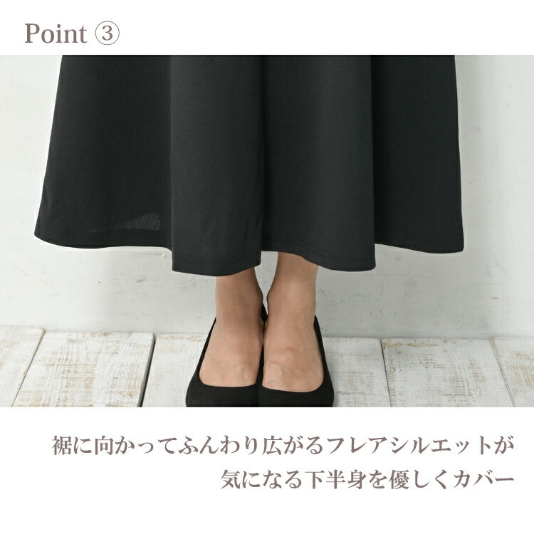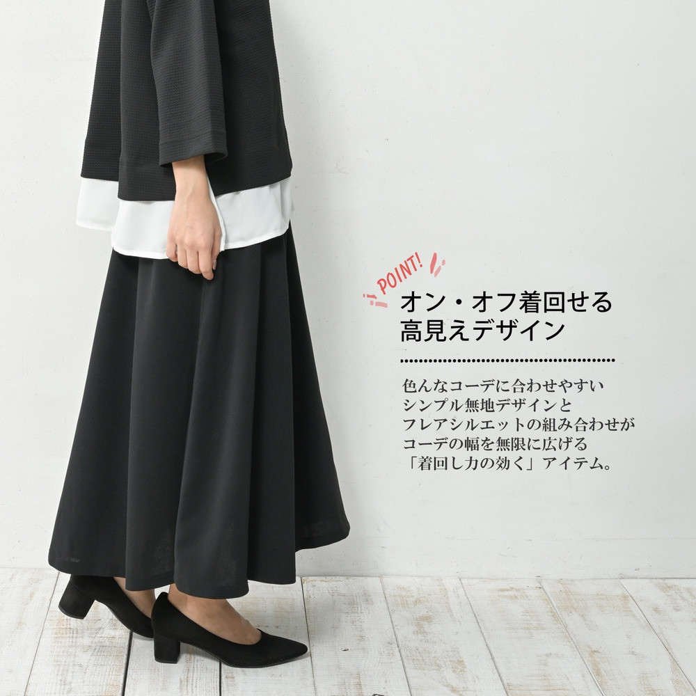 ラク穿きウエスト設計ロング丈フレアスカート