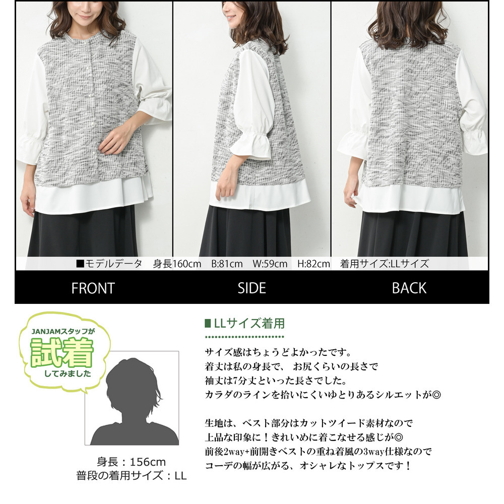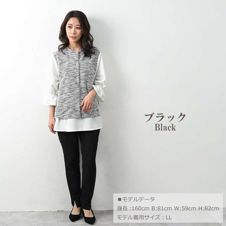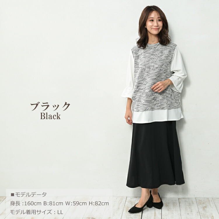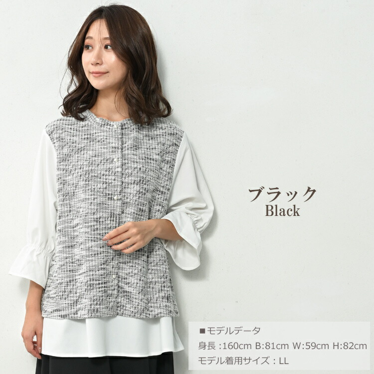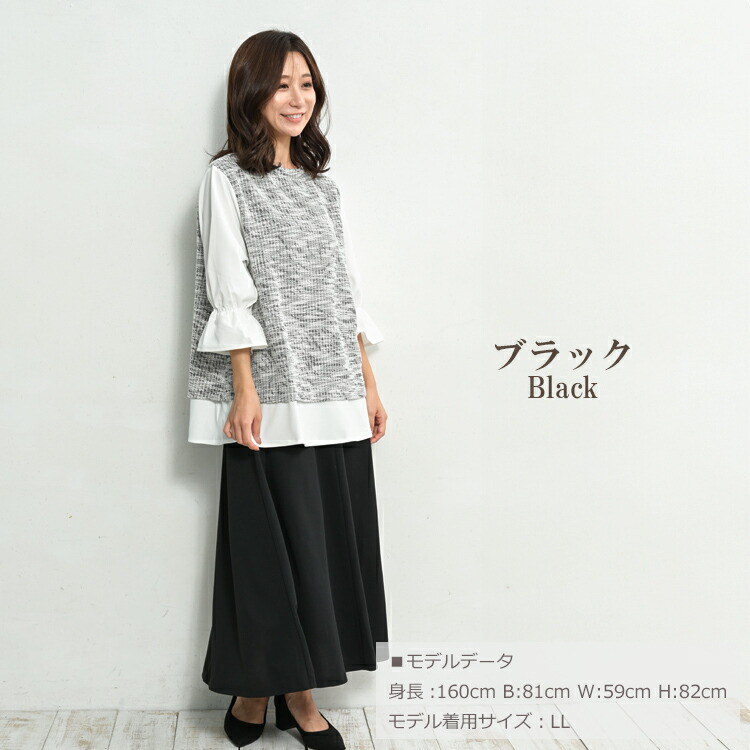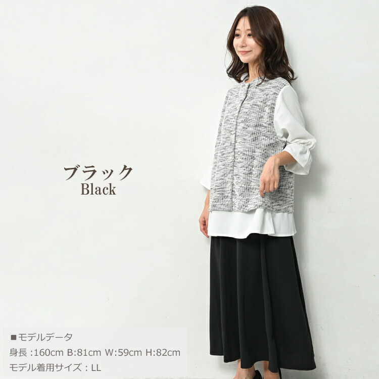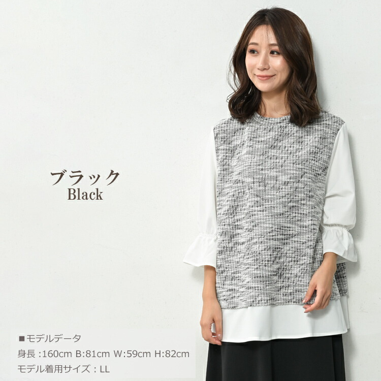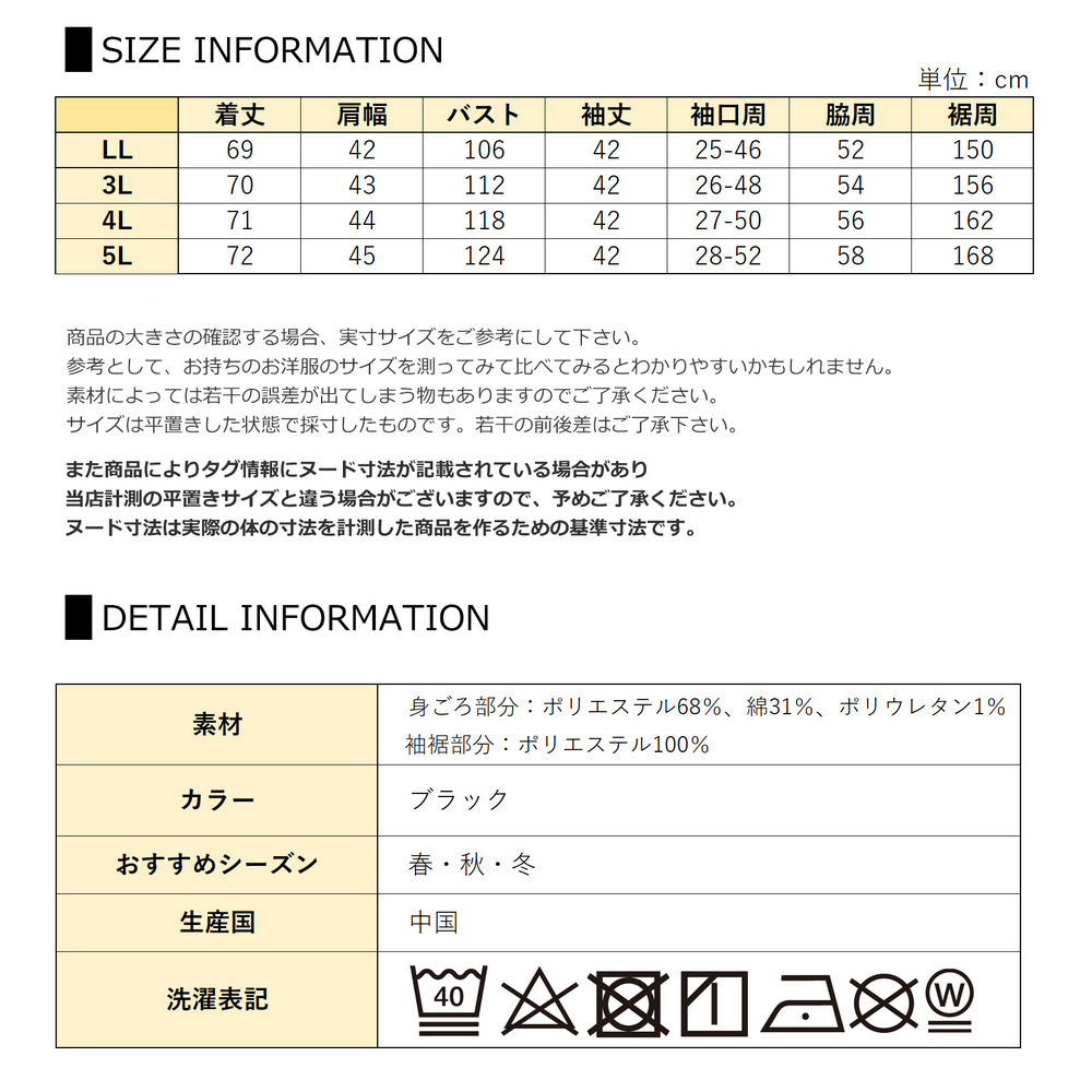 サイズ表記 LL 3L 4L 5L 着丈 69 70 71 72 肩幅 42 43 44 45 バスト 106 112 118 124 袖丈 42 42 42 42 袖口周 25-46 26-48 27-50 28-52 脇周 52 54 56 58 裾周 150 156 162 168