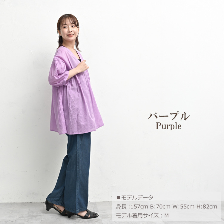 ナチュラルでふんわり軽やかなギャザーブラウス