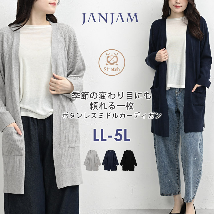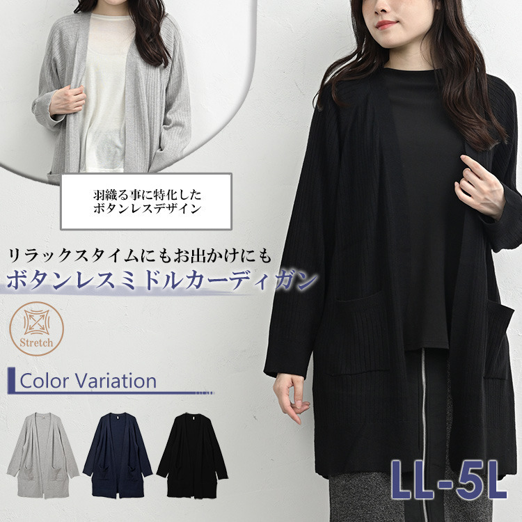 季節の変わり目にも頼れるボタンレスミドルカーディガン
