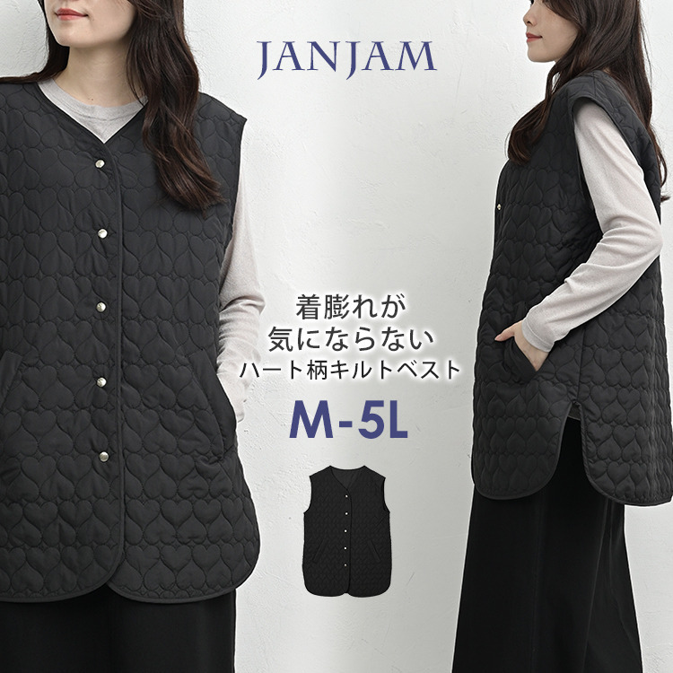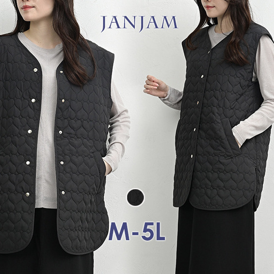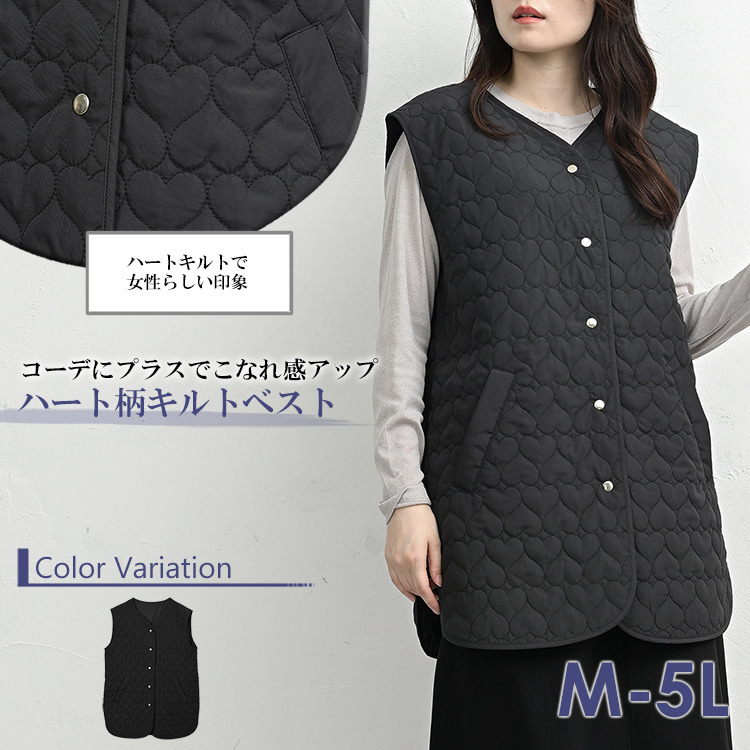• 着膨れしないライトデザインのハート柄キルトベスト23