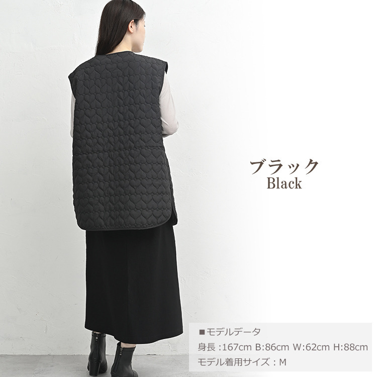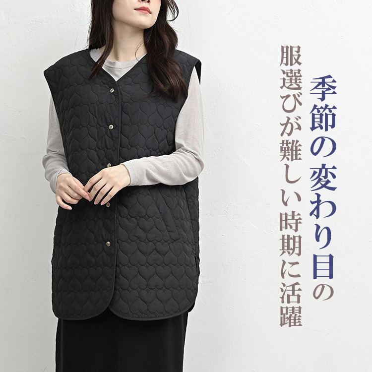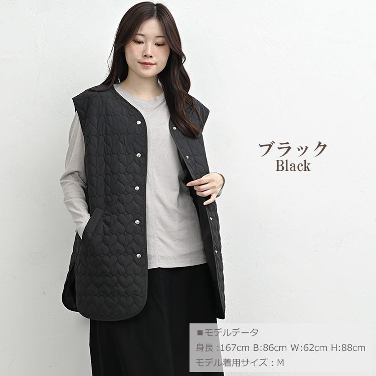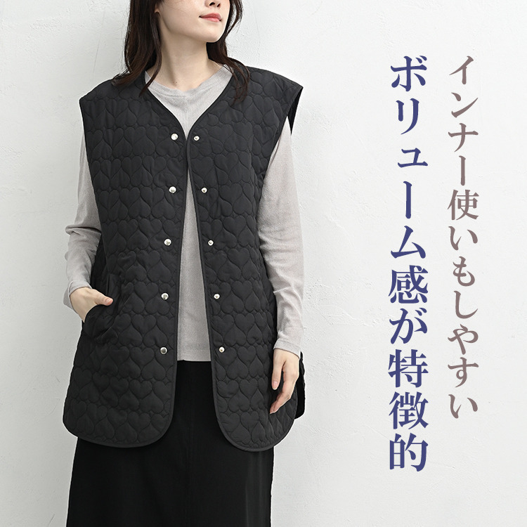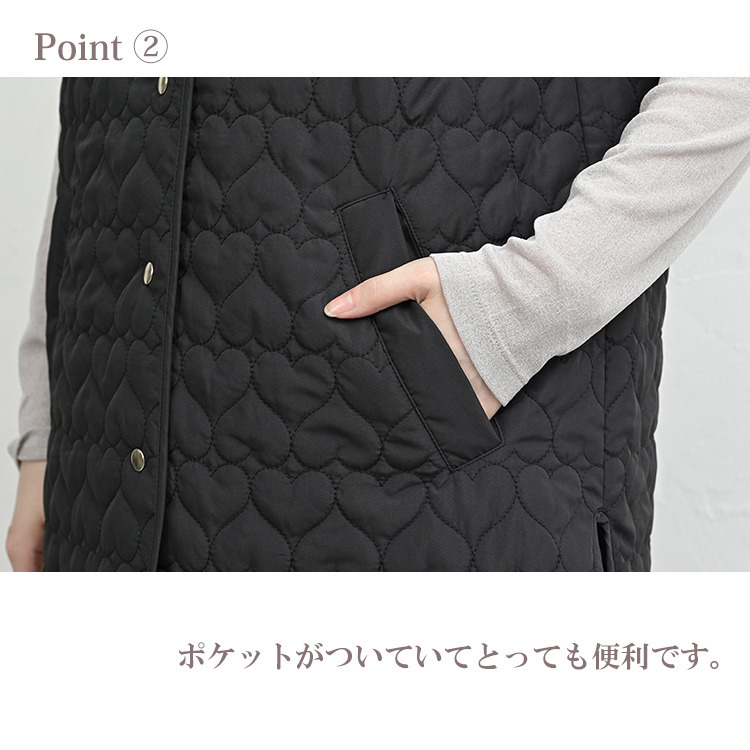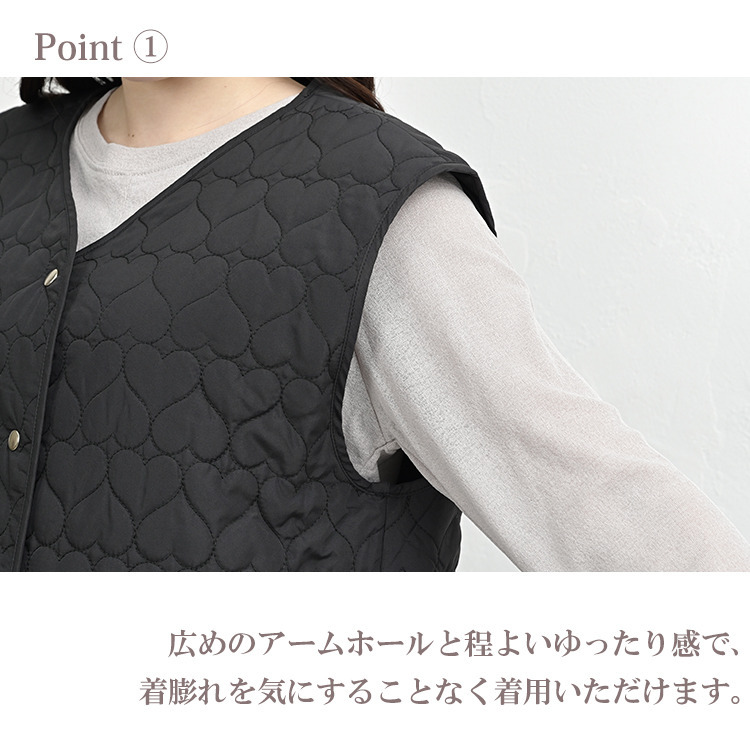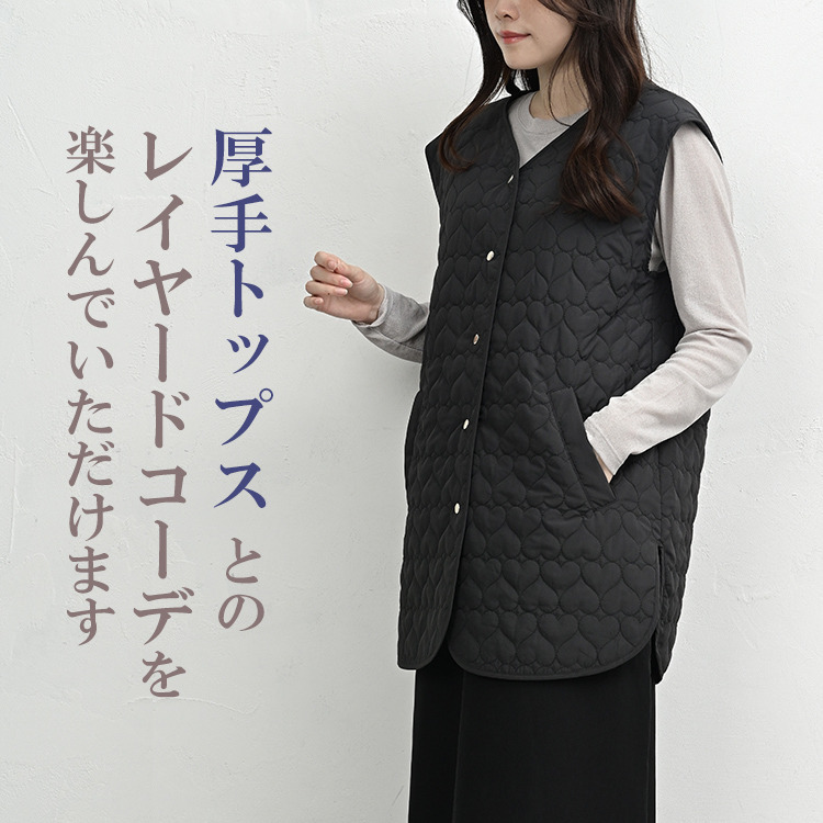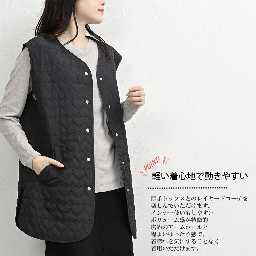 • 着膨れしないライトデザインのハート柄キルトベスト24
