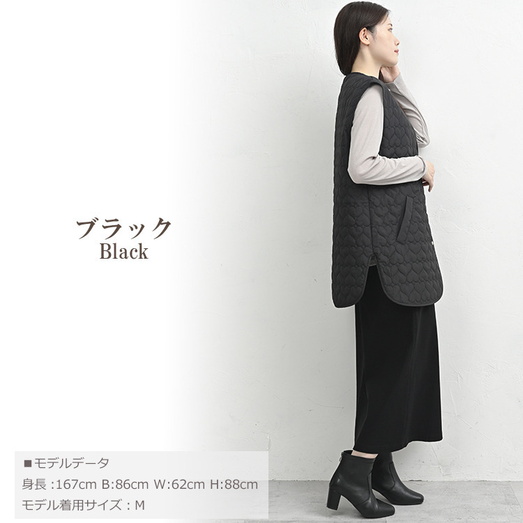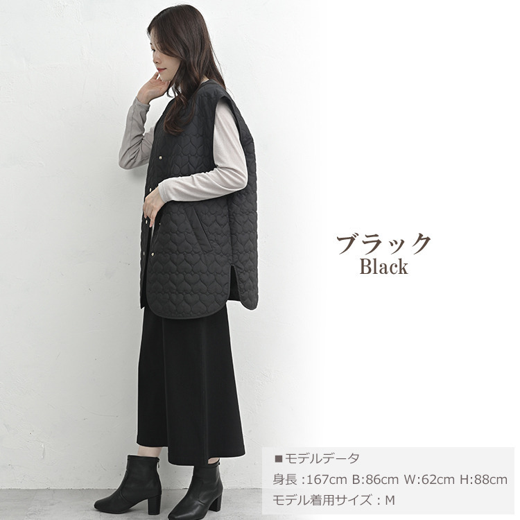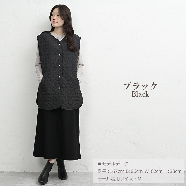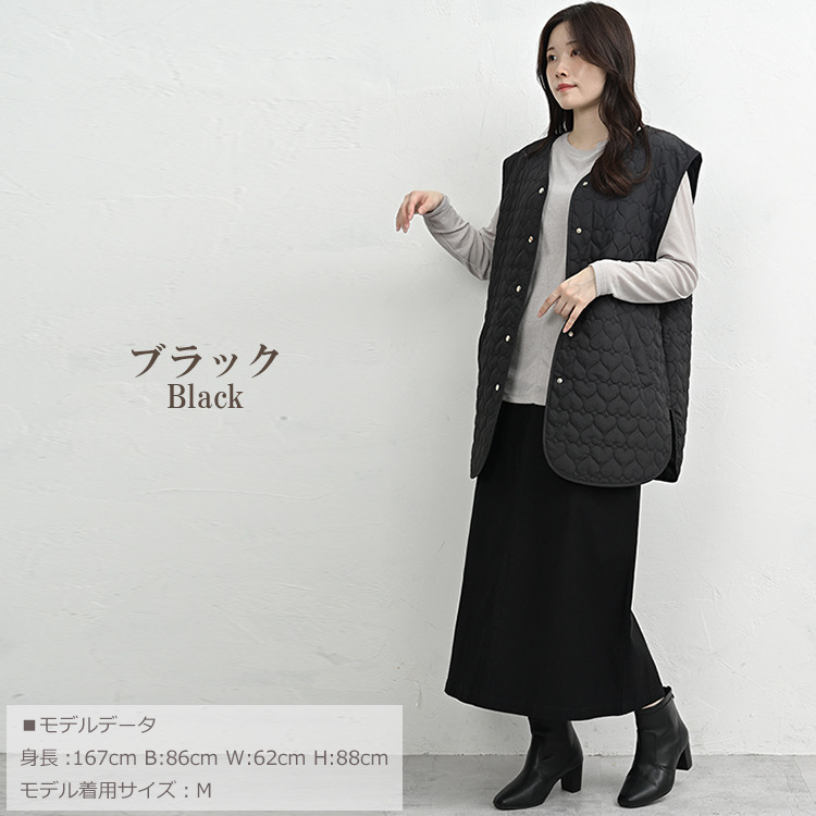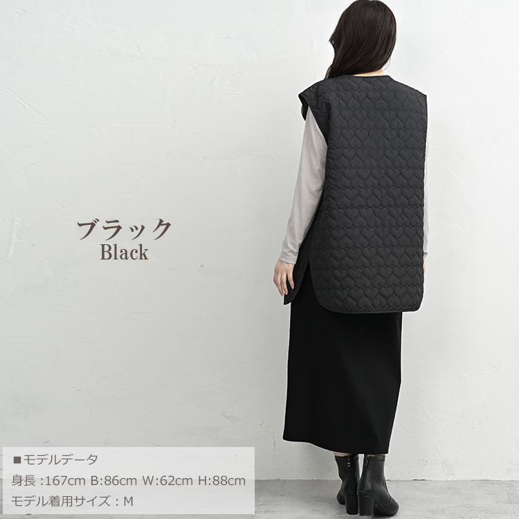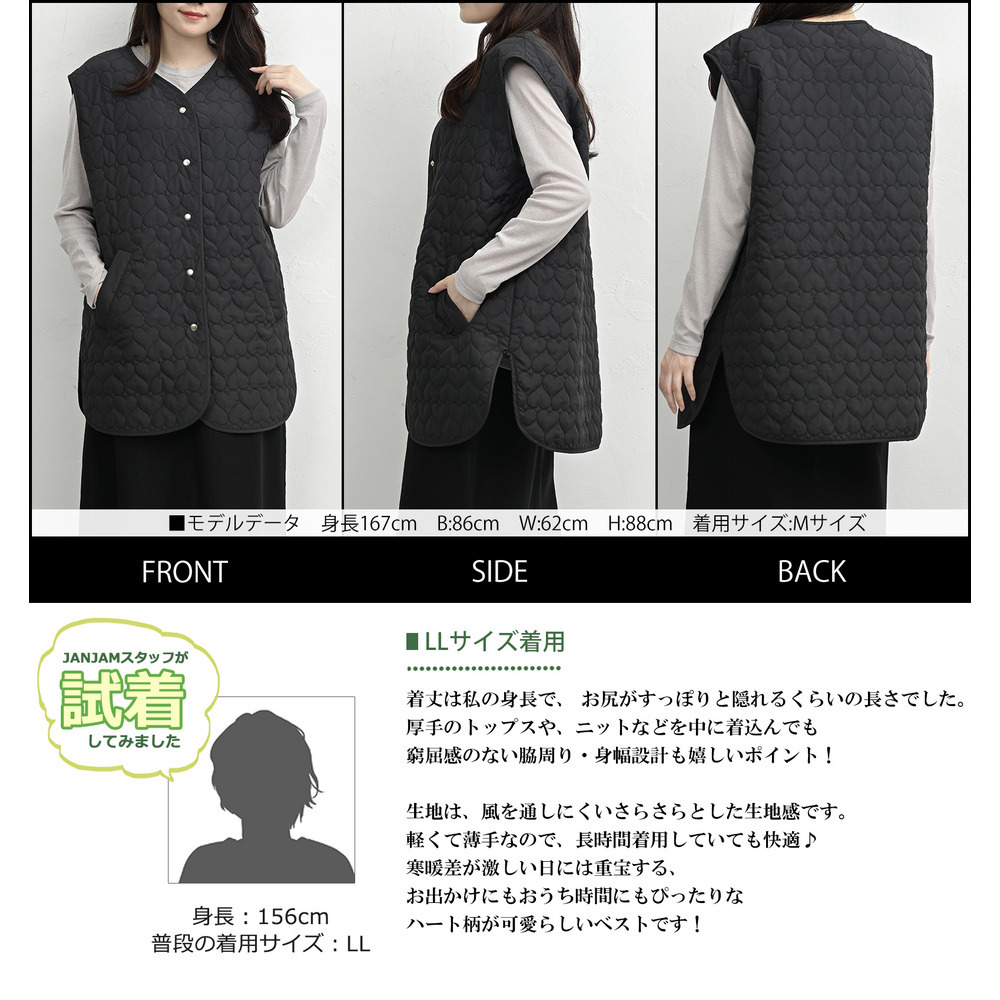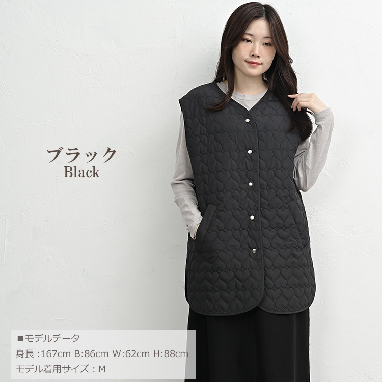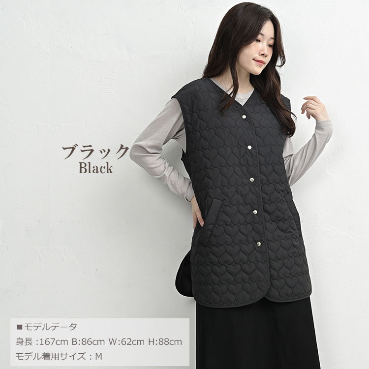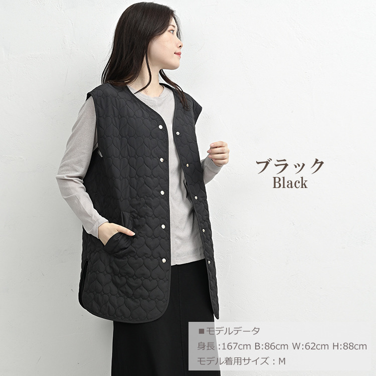 • 着膨れしないライトデザインのハート柄キルトベスト24